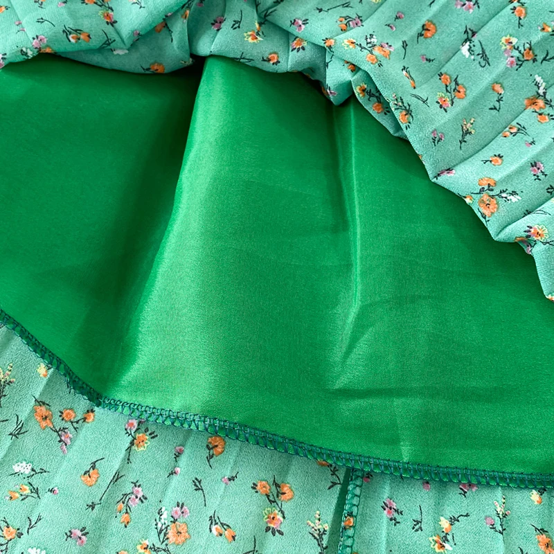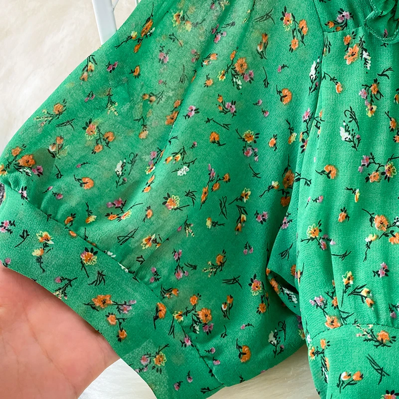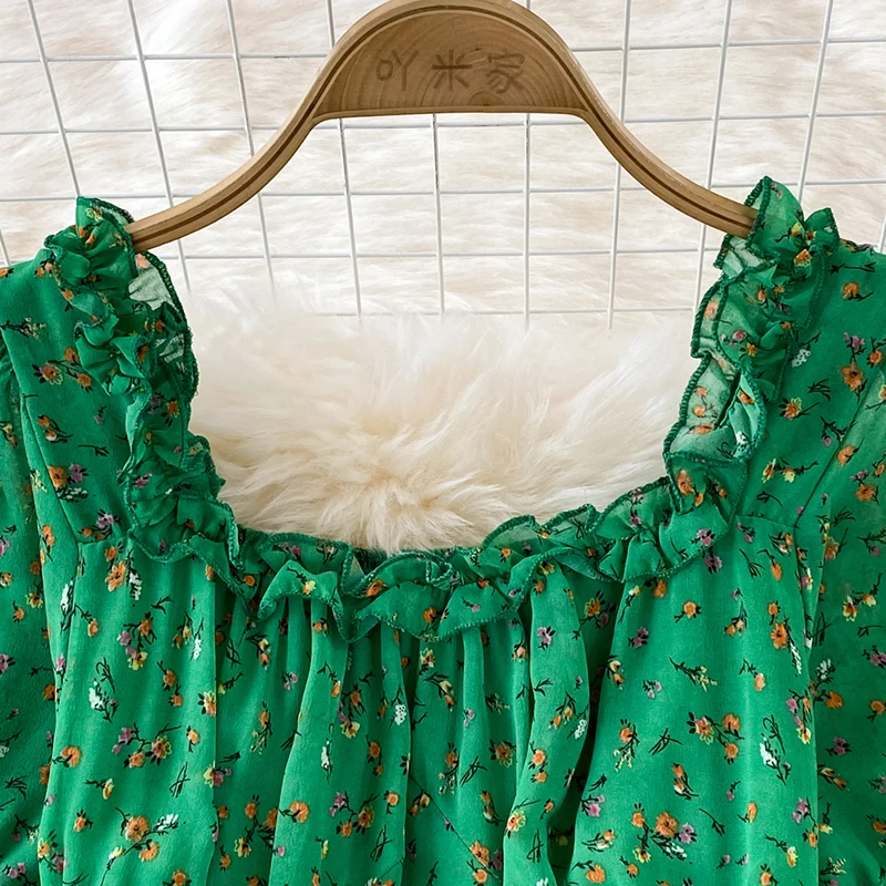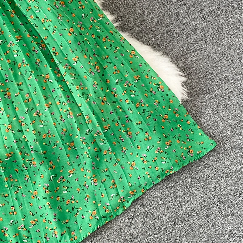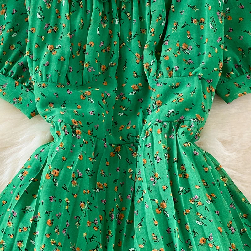 Dropshipping Products 2023 Casual Dresses for Woman Sexy Elegant Square Collar Short Sleeve Chiffon Pleated Dress Floral Printed