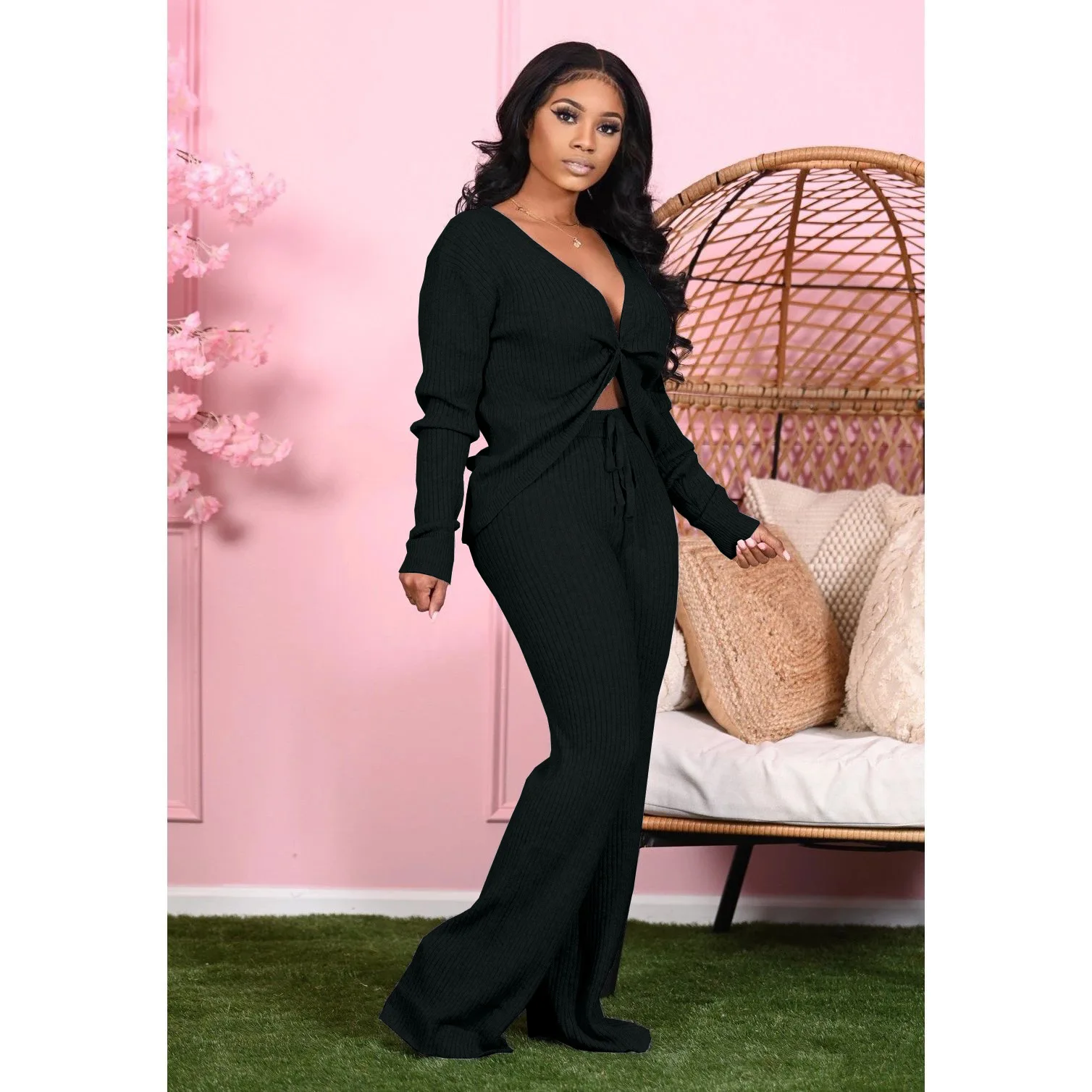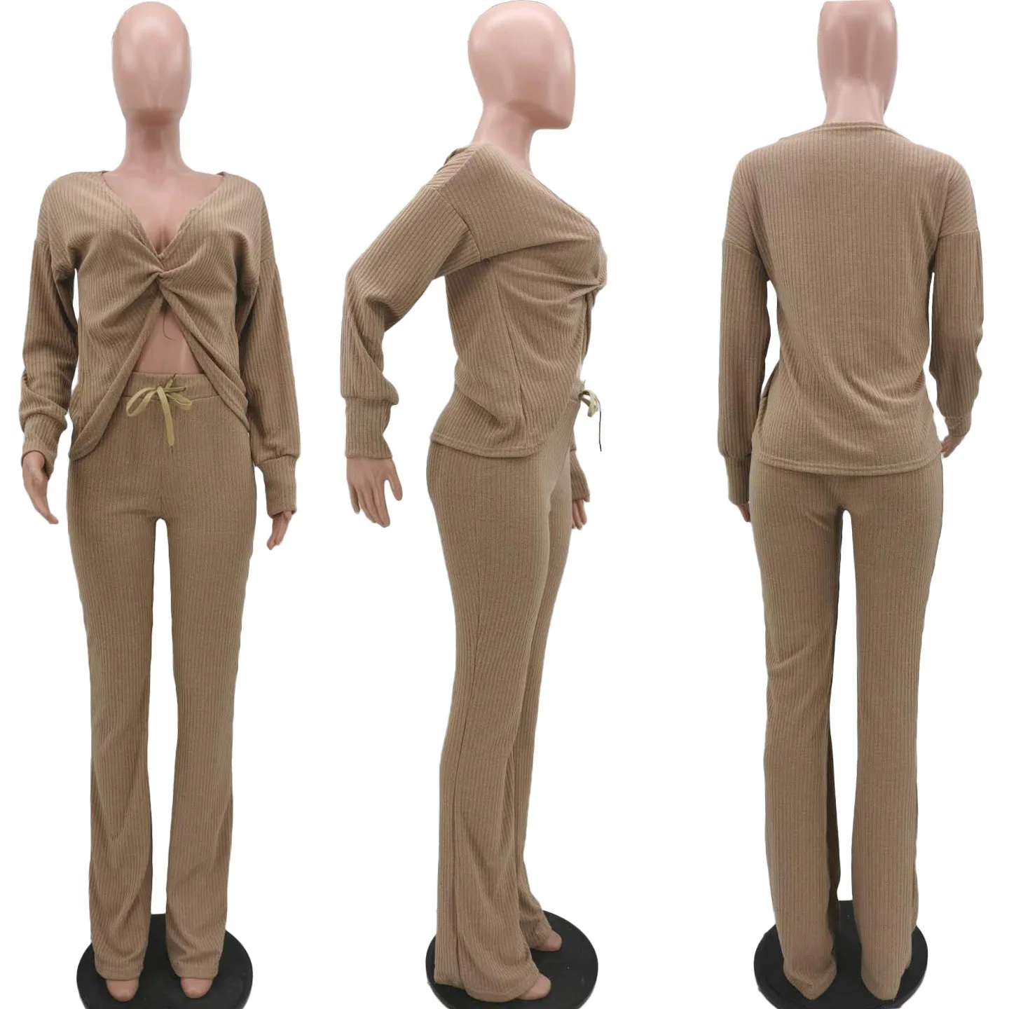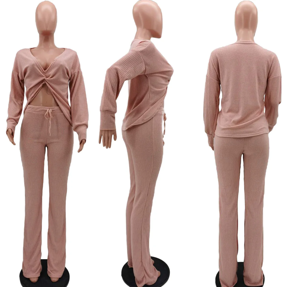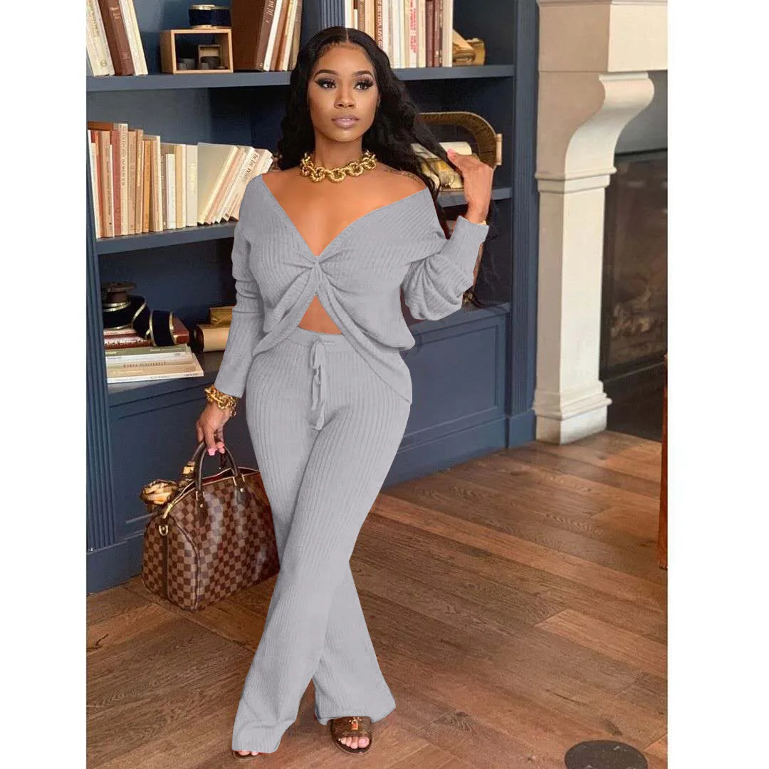 dropshipping spring summer ladies pit strip personality sexy 2 sided crop top pants casual two piece women's sets