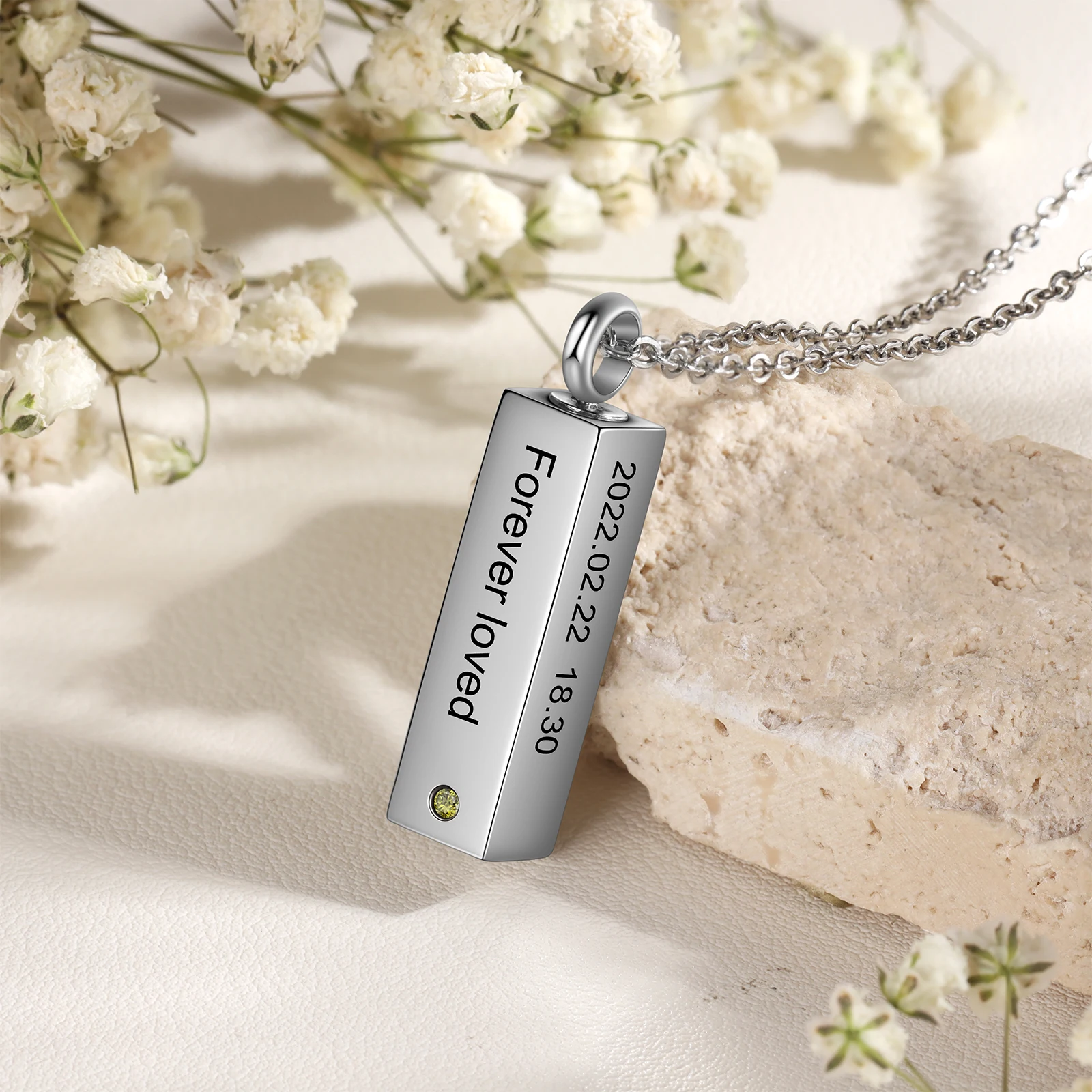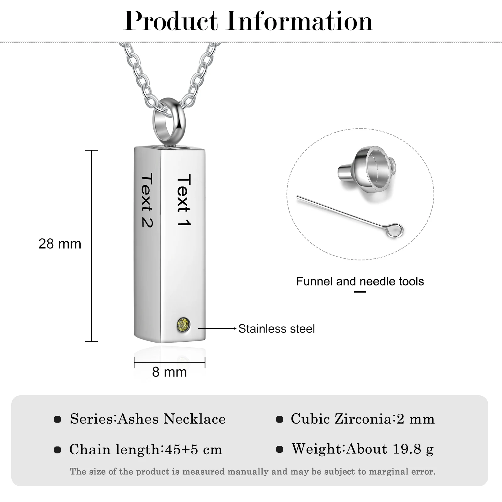 Dropshipping Stainless Steel Personalized Name Bar Necklace Men Jewelry Custom Stone Ashes Necklace