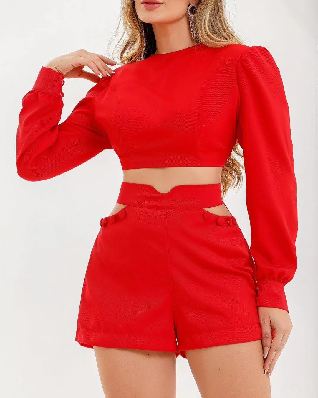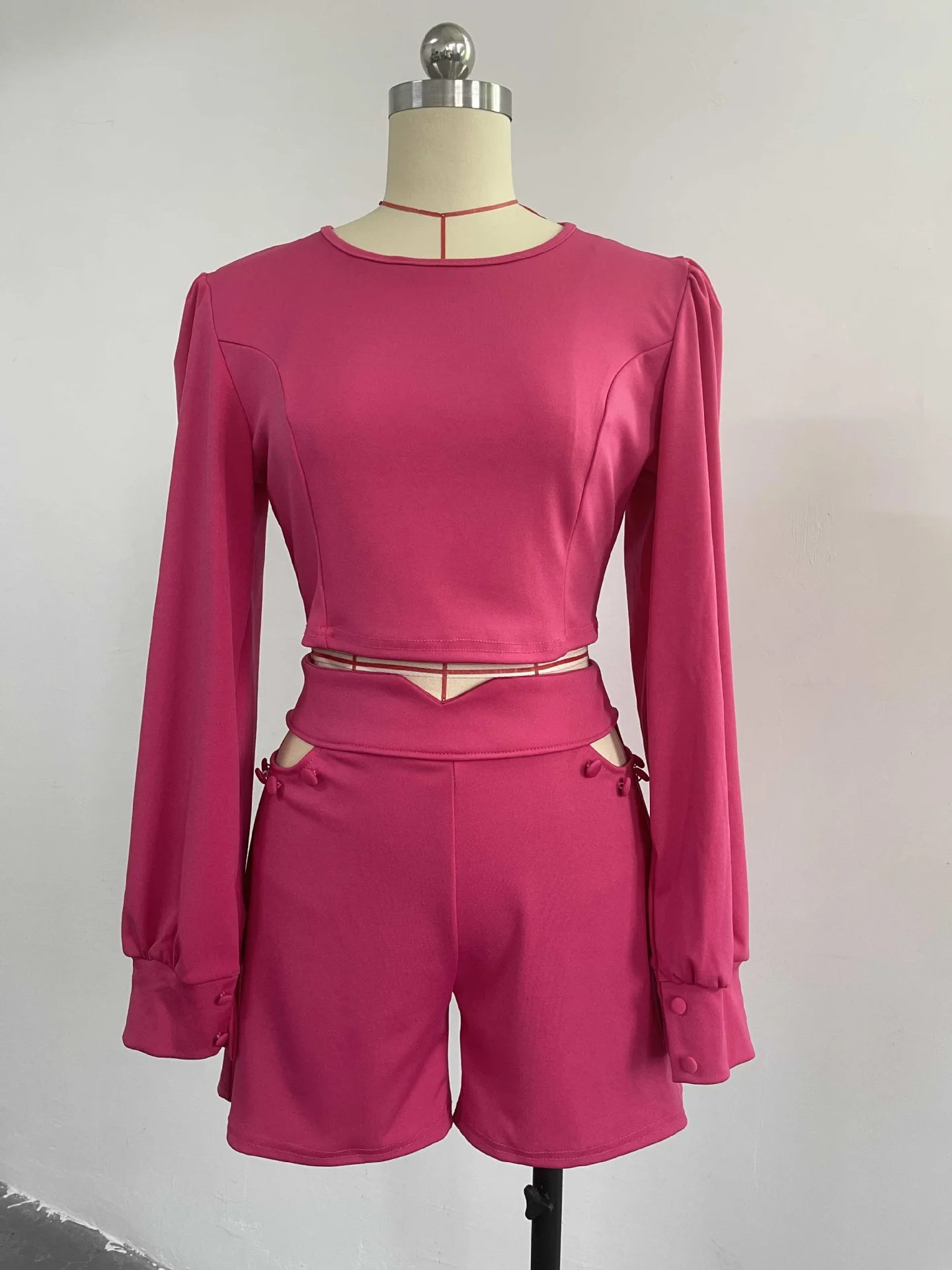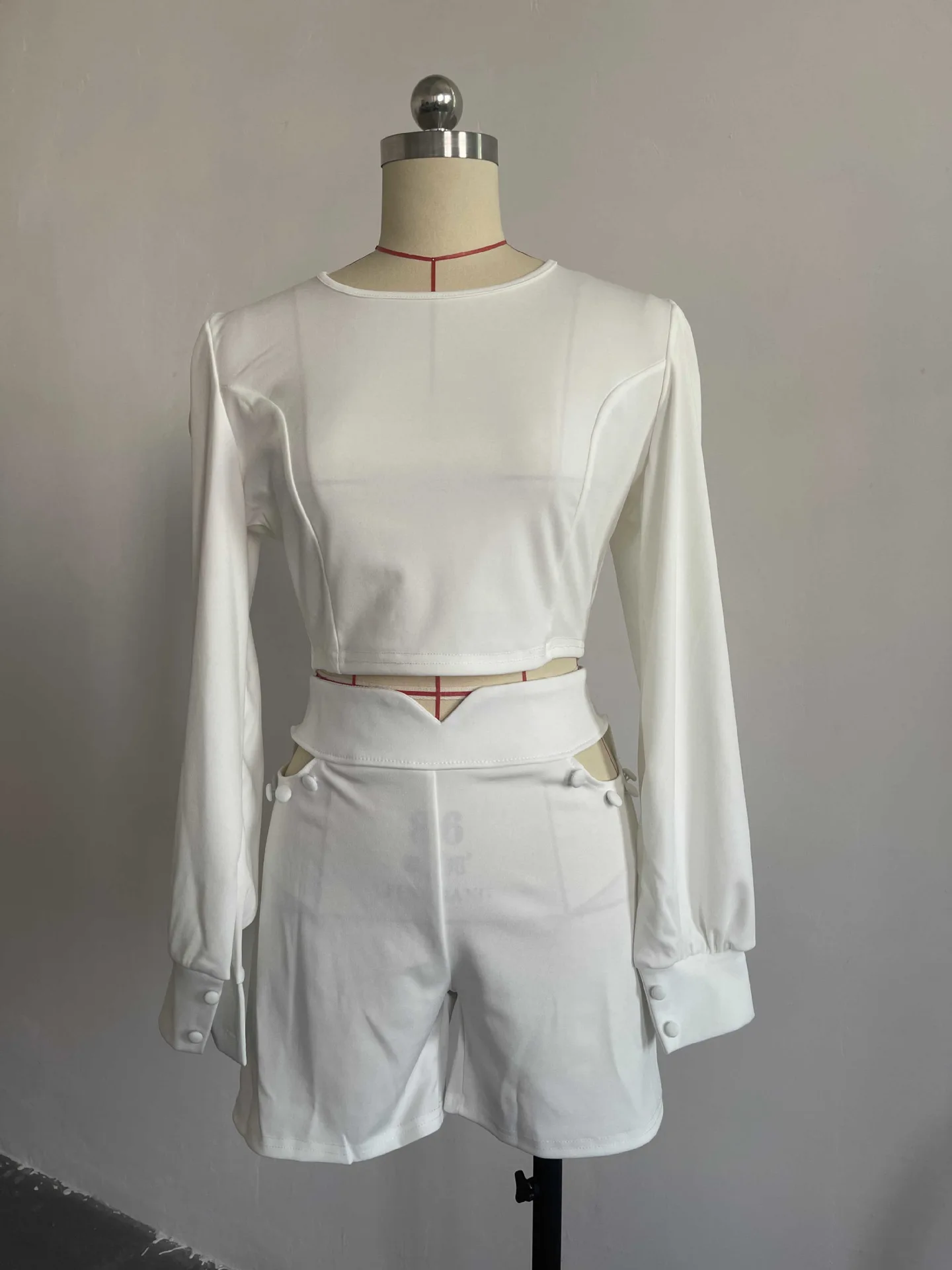 dropshipping summer clothes set women Short Long Sleeve T Shirt Cutout High Waist Shorts two piece women's Fashion Casual sets