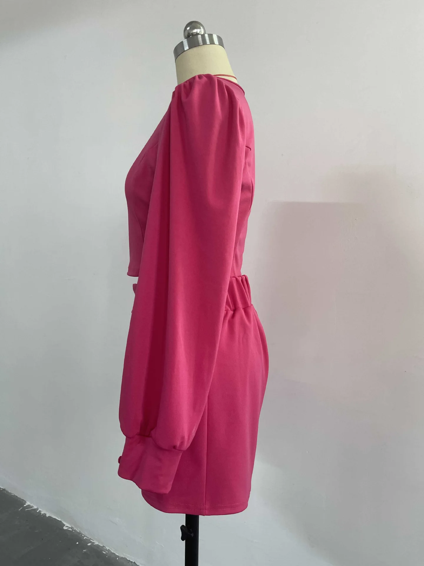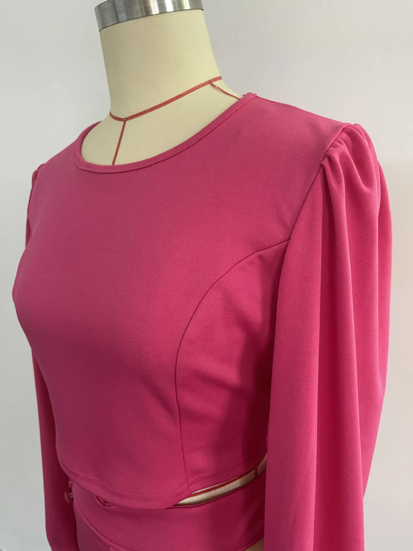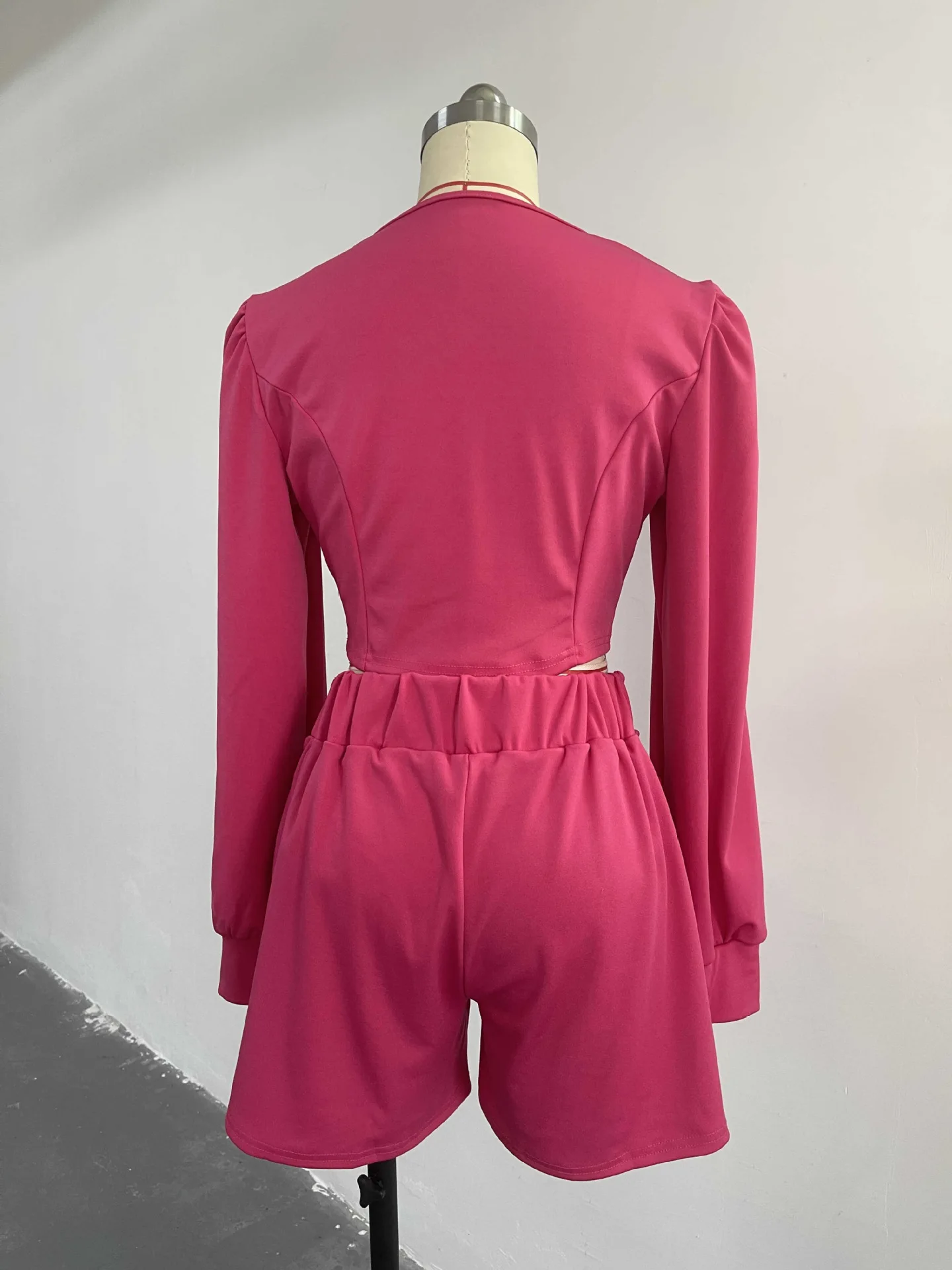 dropshipping summer clothes set women Short Long Sleeve T Shirt Cutout High Waist Shorts two piece women's Fashion Casual sets