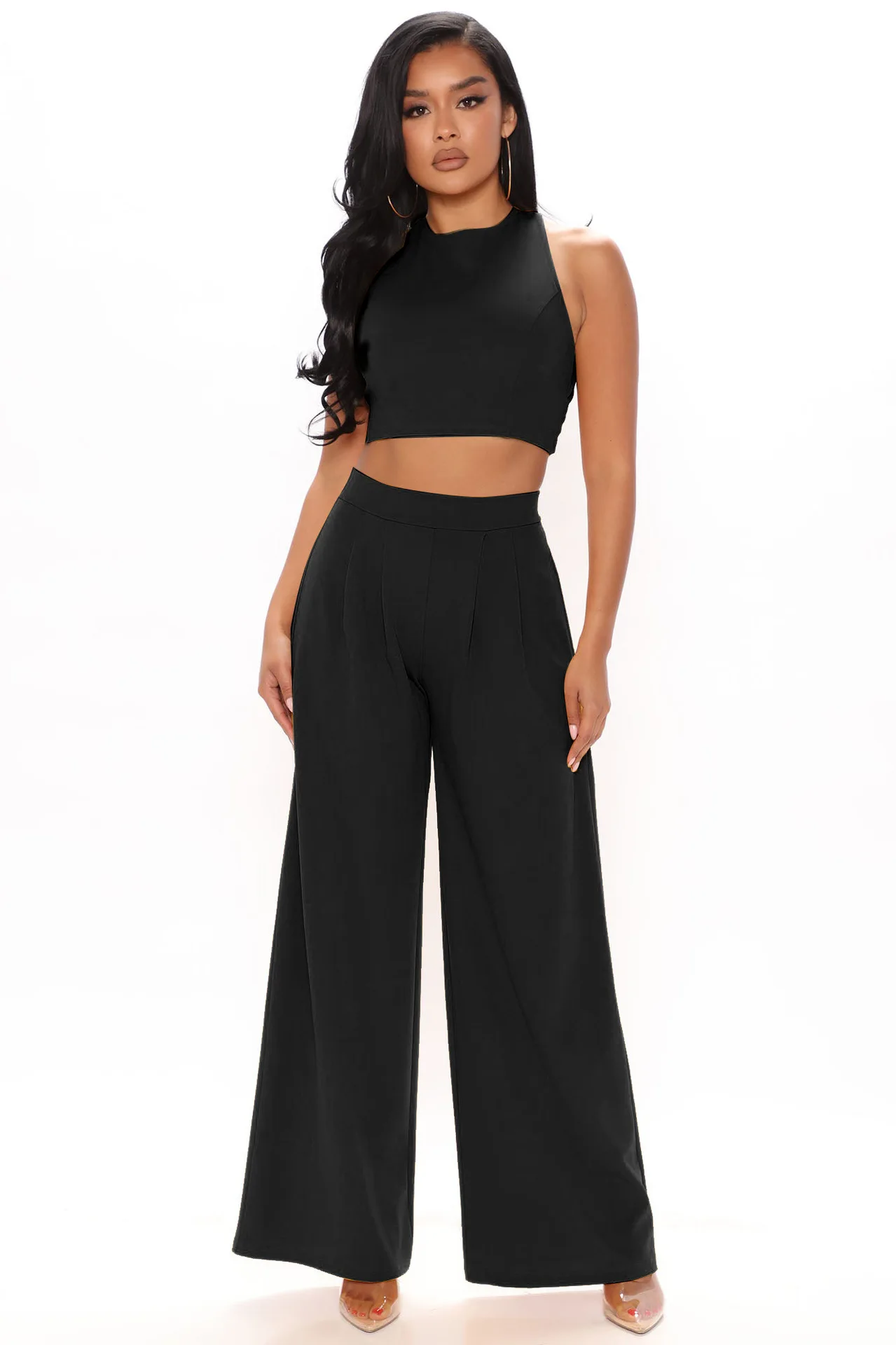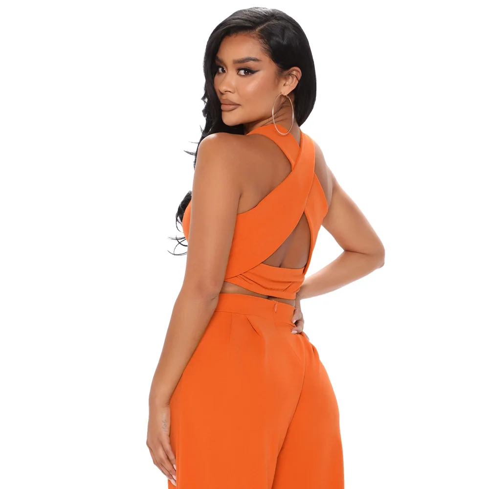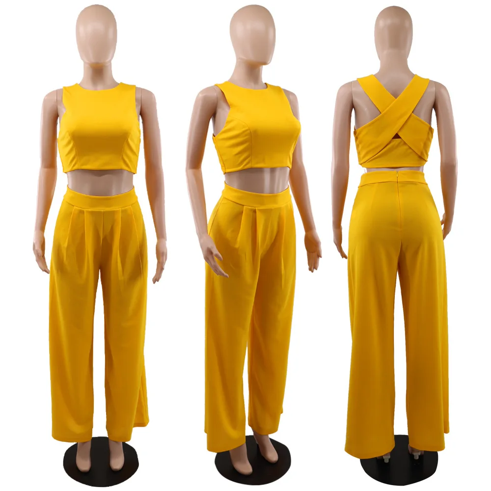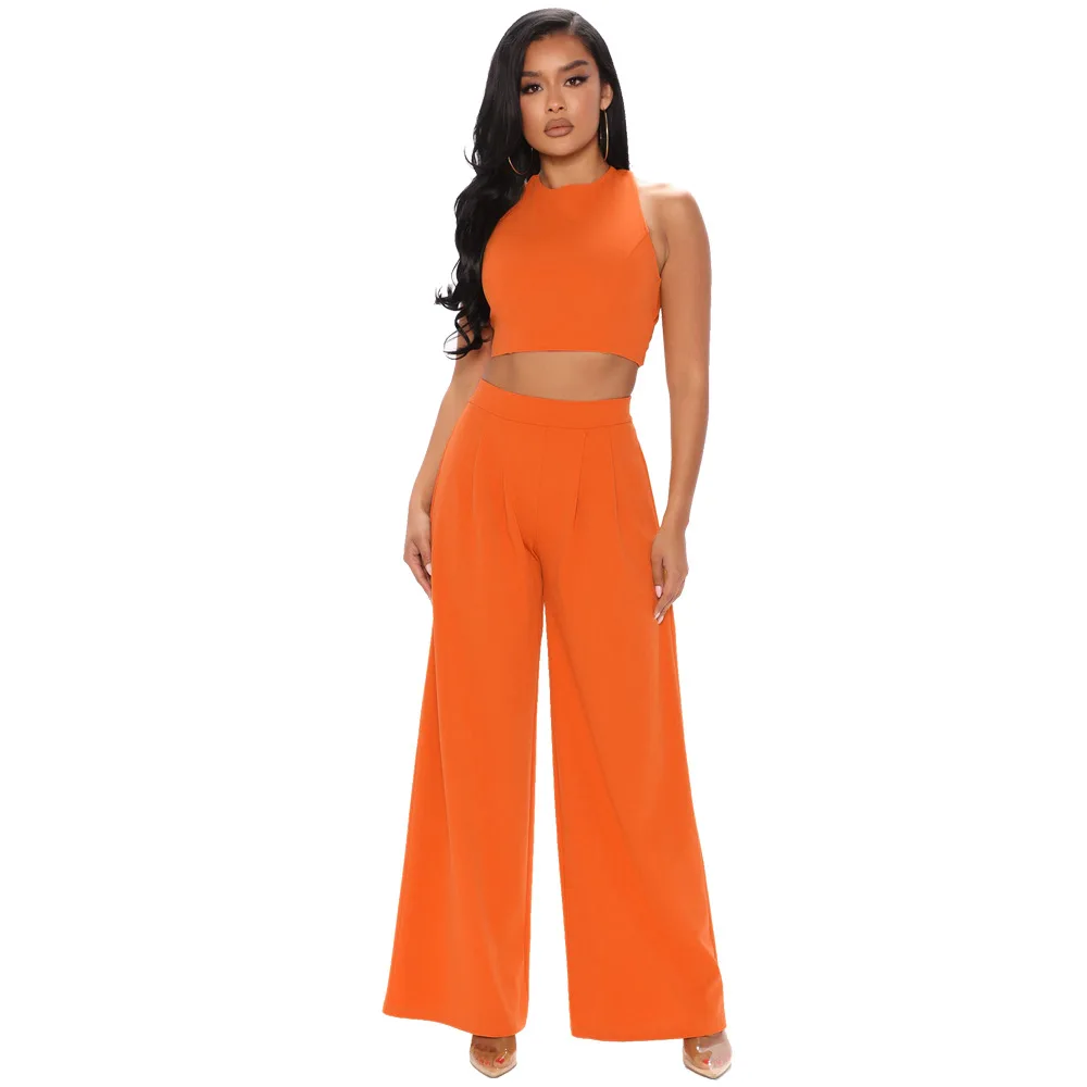 dropshipping summer women clothing ladies crop top straight flared loose pants casual two piece women's sets