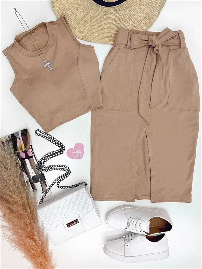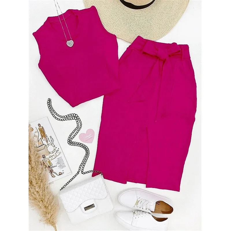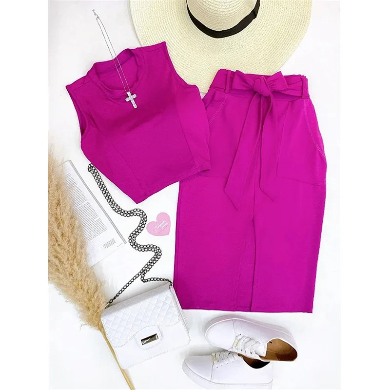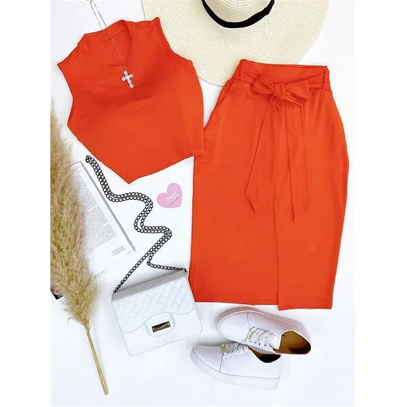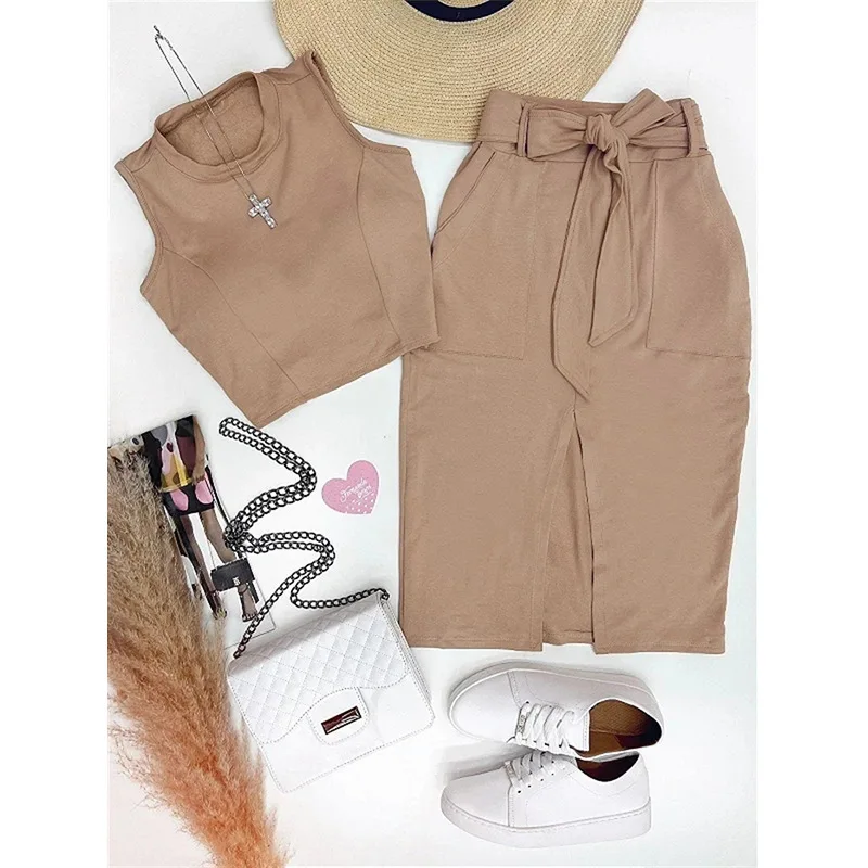 dropshipping summer womens dress women clothing sleeveless vest crop top high rise hip skirt two piece women's sets mini skirts