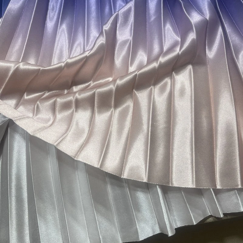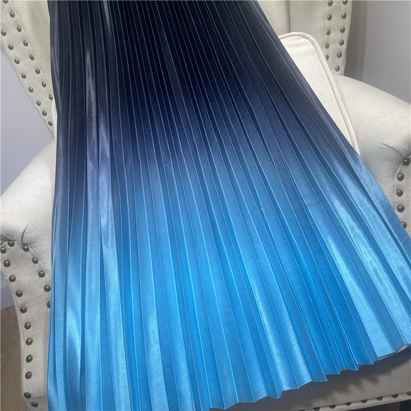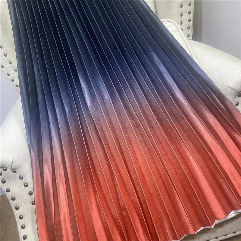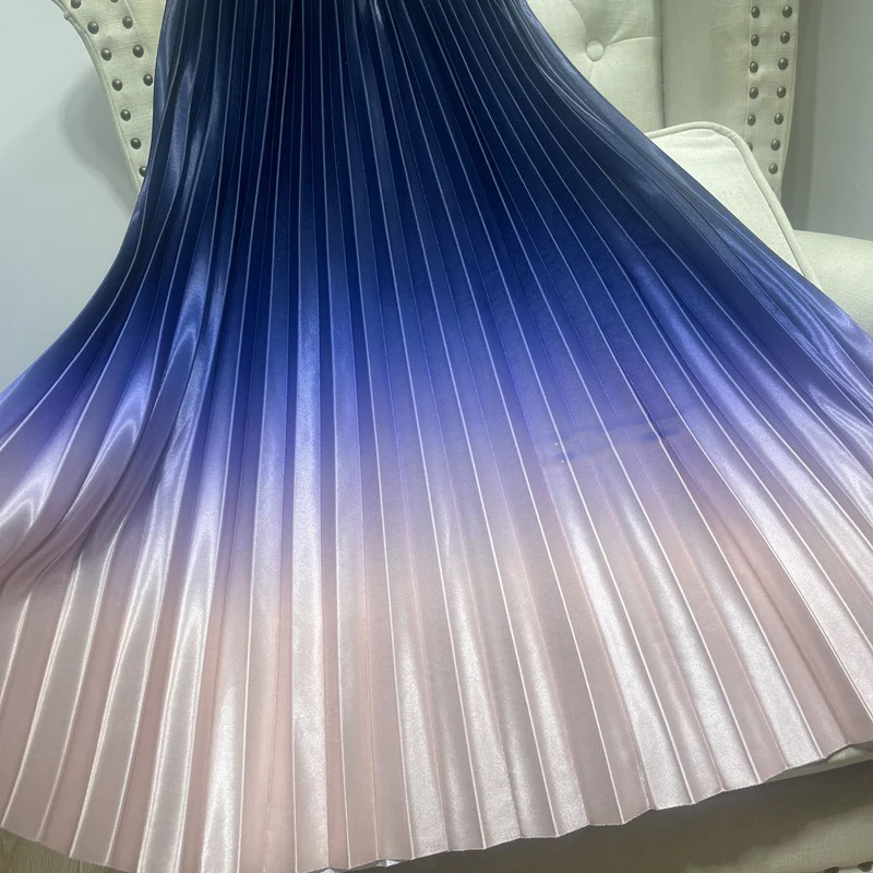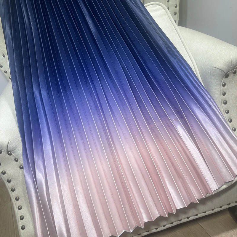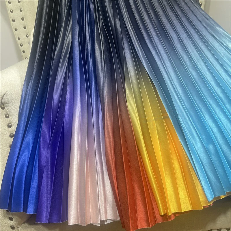 Dropshipping Wholesale Stylish Casual Elegant 2022 Pleated Midi Skirts Womens Satin Tie Dye Gradient Women High Waist Long Skirt