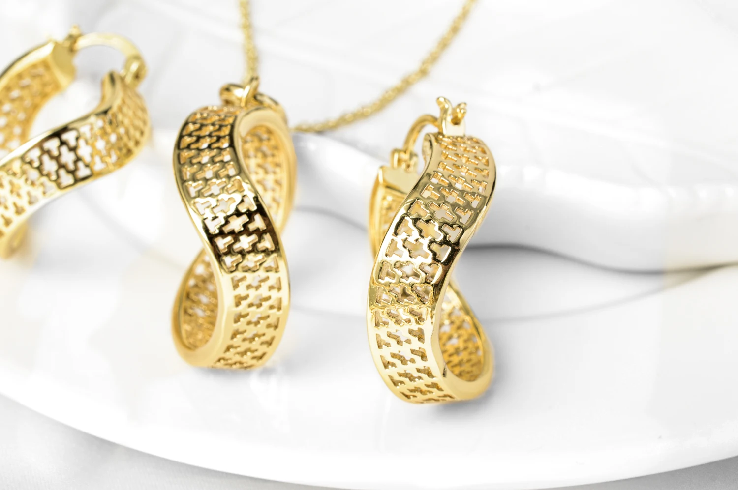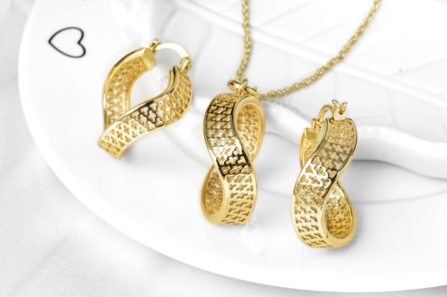 Dubai Popular jewelry high quality copper Women wedding party bride gold jewelry set
