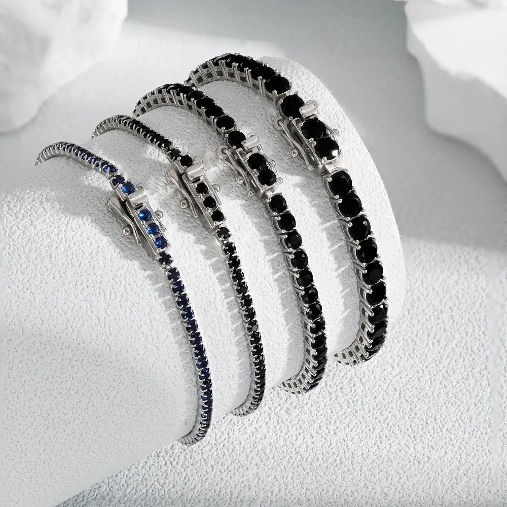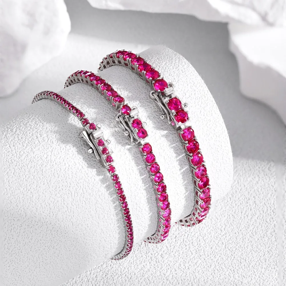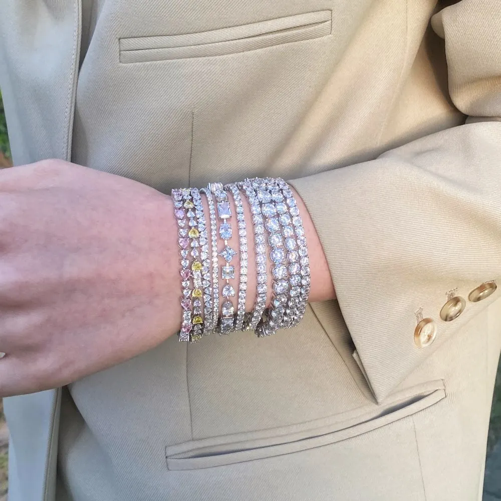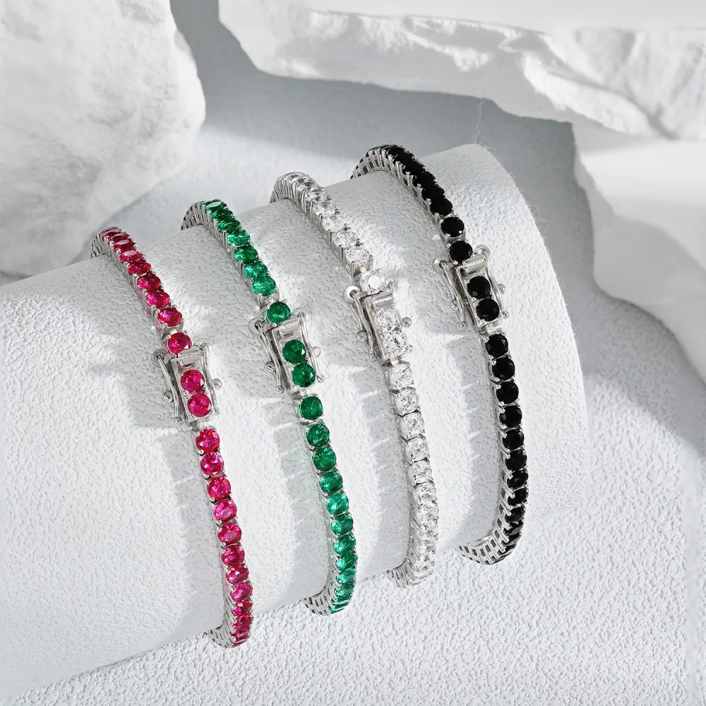 Dylam 2023 Fashion Fine Jewelry Women S925 Silver Rhodium Plated Black Pink Green Clear Round Cut 5A Zirconia Tennis Bracelet