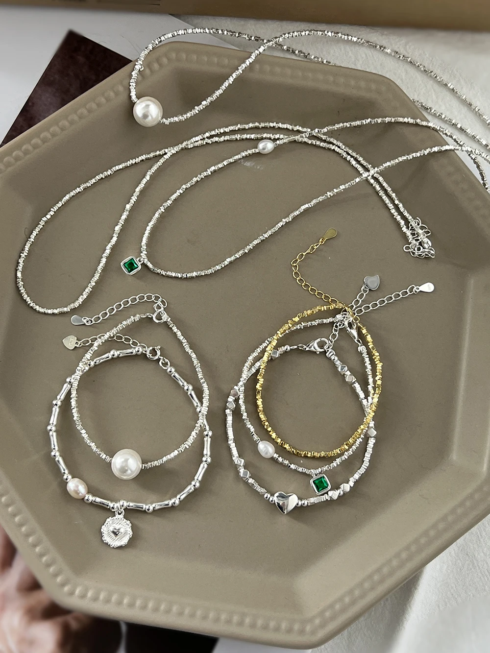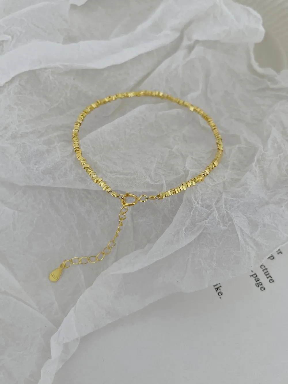 Dylam 2023 New Trendy Minimalist Design Women 925 Sterling Silver 18K Gold Plated Beaded Bracelets
