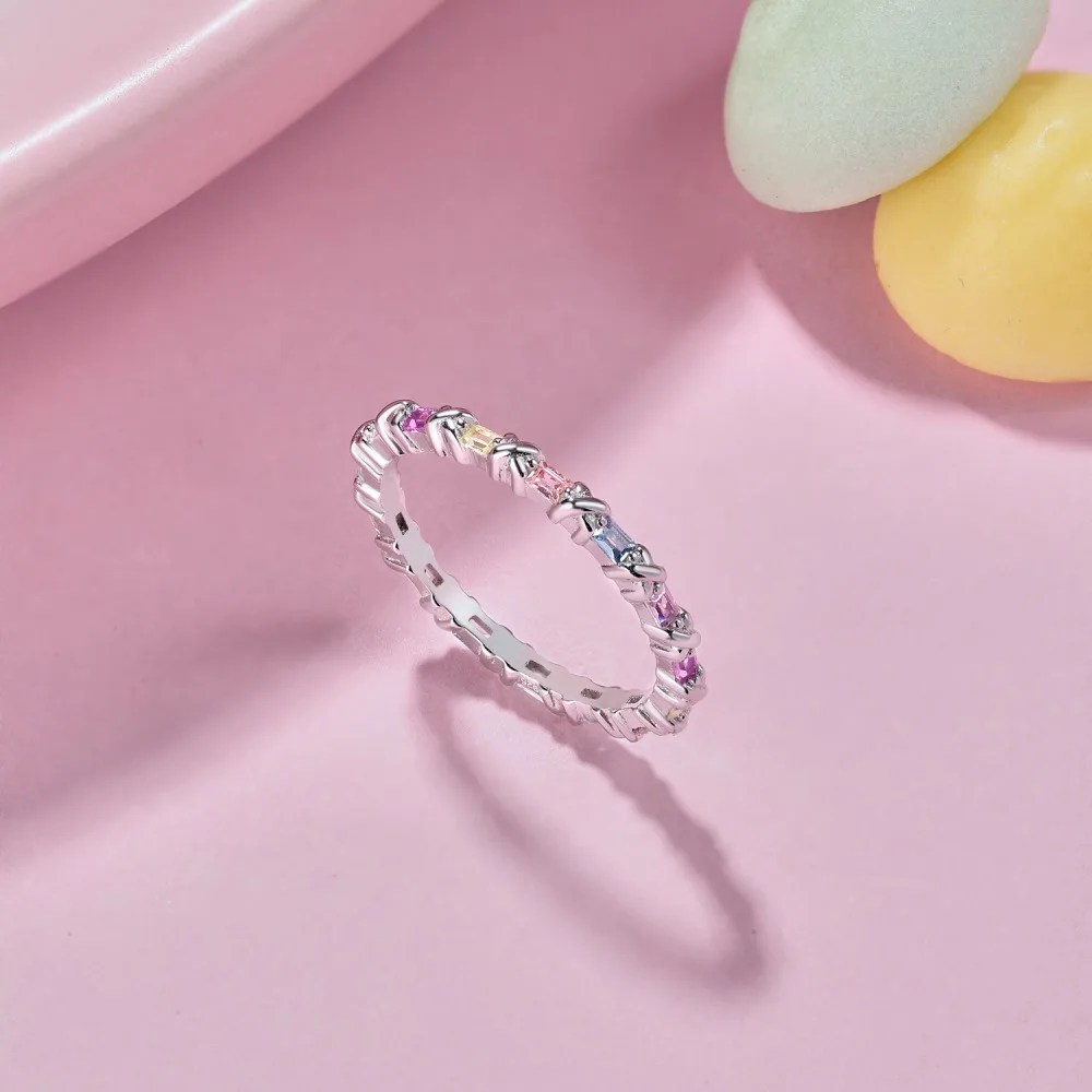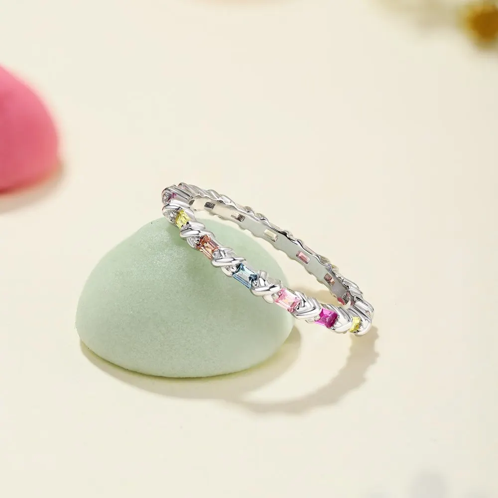 Dylam 2023 Stylish Design Fine Jewelry Ring Women S925g Silver Daily Wear Colorful Eternity Band Baguette 5A Cubic Zirconia Ring