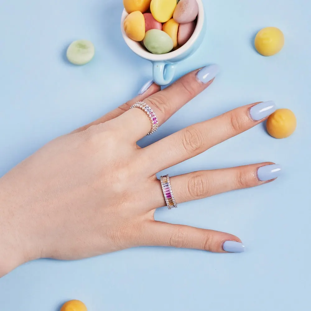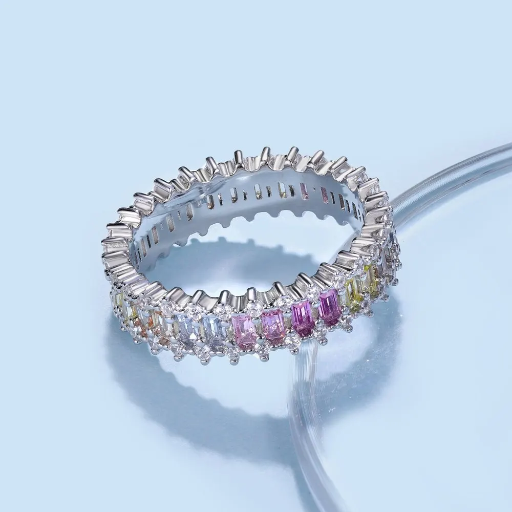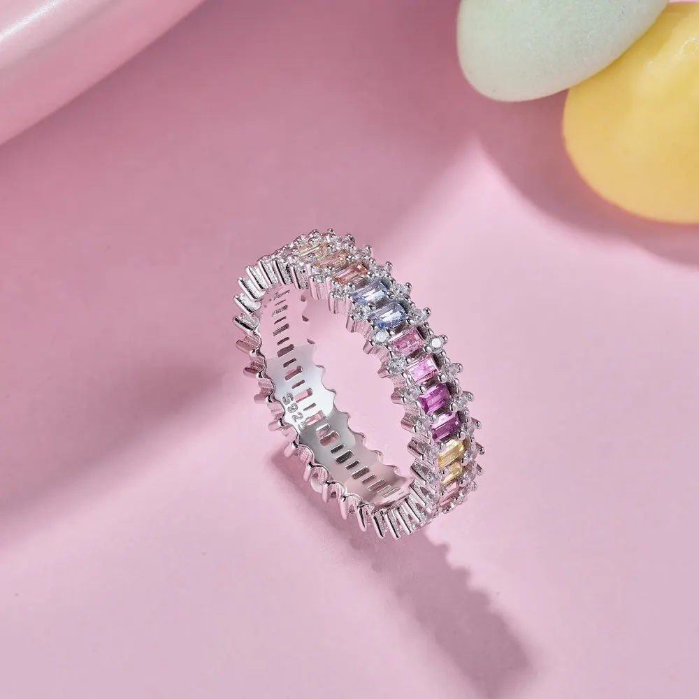 Dylam 2023 Trending Finest Jewelry S925 Silver Rhodium Plated 5A Cubic Zirconia Eternity Band Baguette Bridal Daily Party Rings