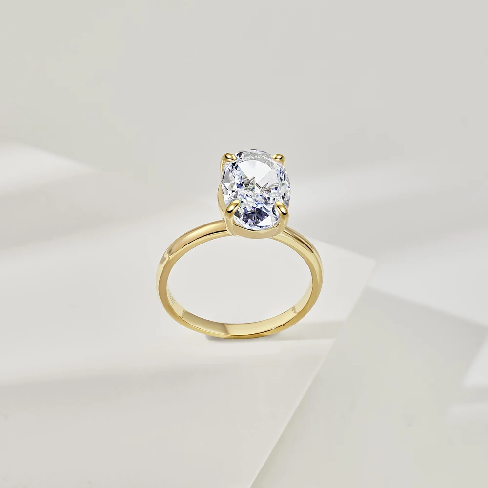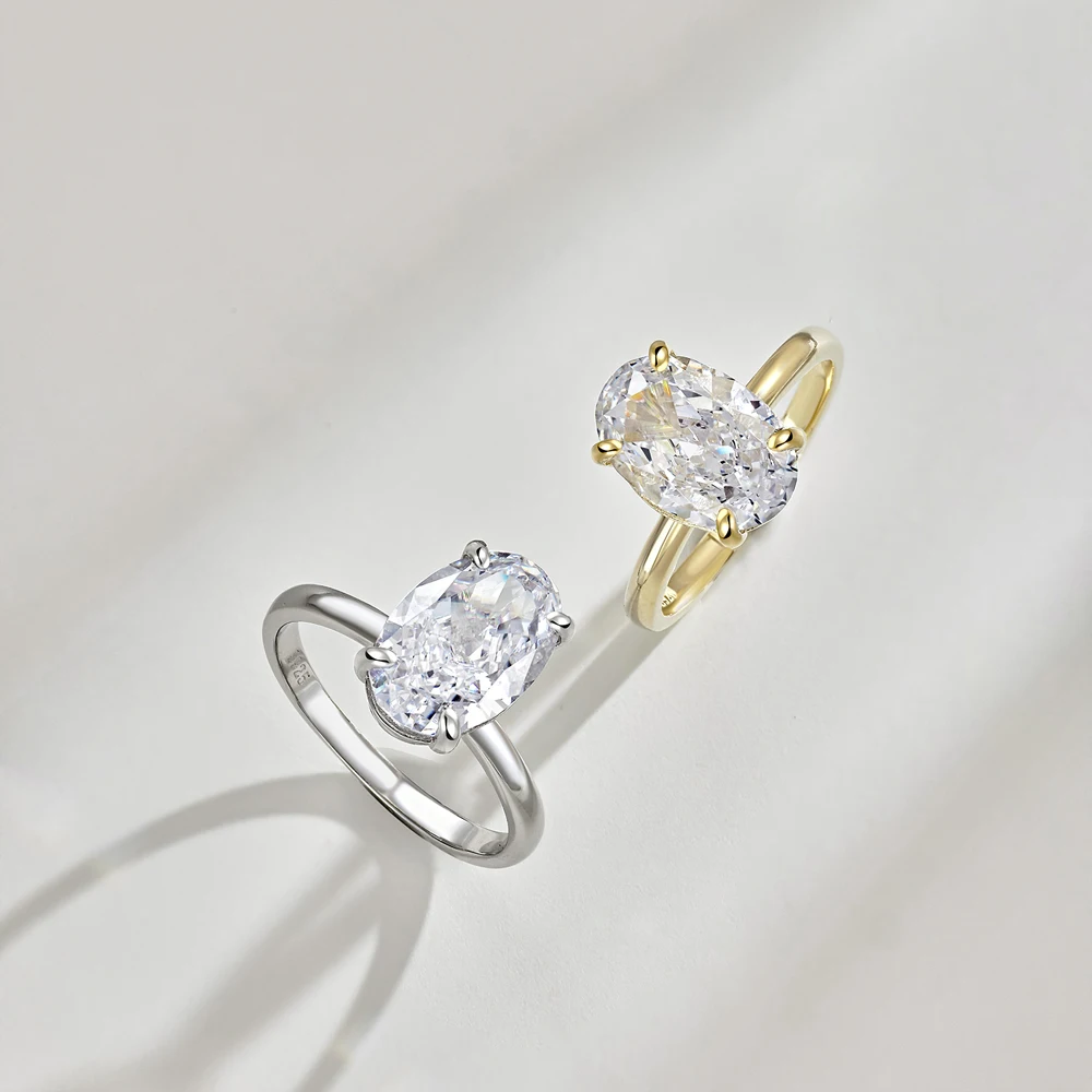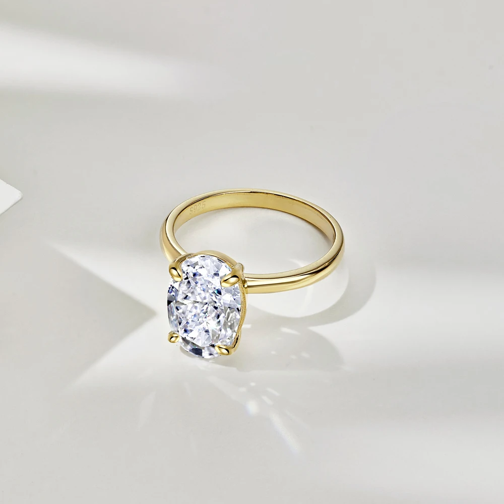 Dylam 925 Sterling Silver Rhodium 18K Gold Plated Solitaire 3.5 Carat 8A Crushed Iced Out Cut Engagement Promise Wedding Rings