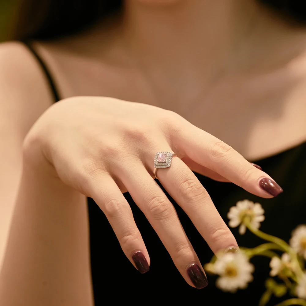 Dylam 925 Sterling Silver Rhodium Plated Eternity Band Diamond Square 8A Crushed Iced Cut Cubic Zirconia Wedding Engagement Ring