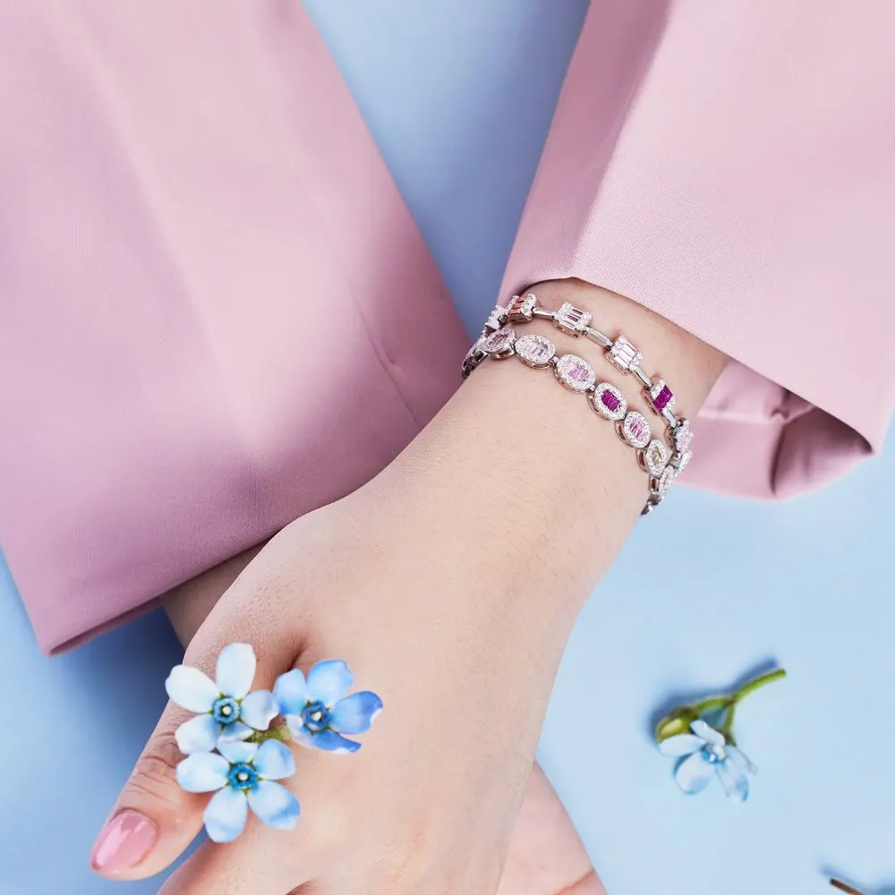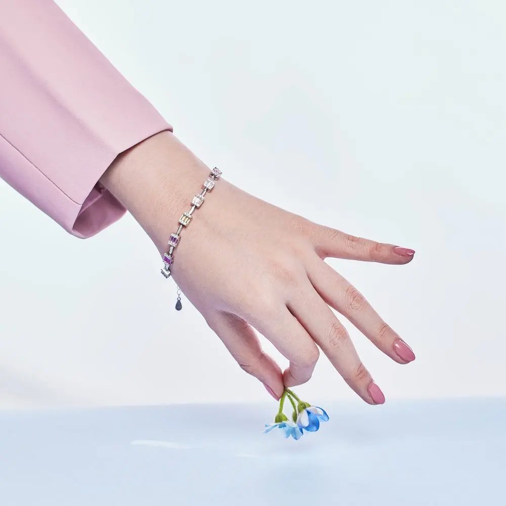 Dylam Bling Colorful Baguette Bracelets S925 Silver 5A Cubic Zirconia Dainty Women Diamond Hypoallergenic Baguette Bracelet