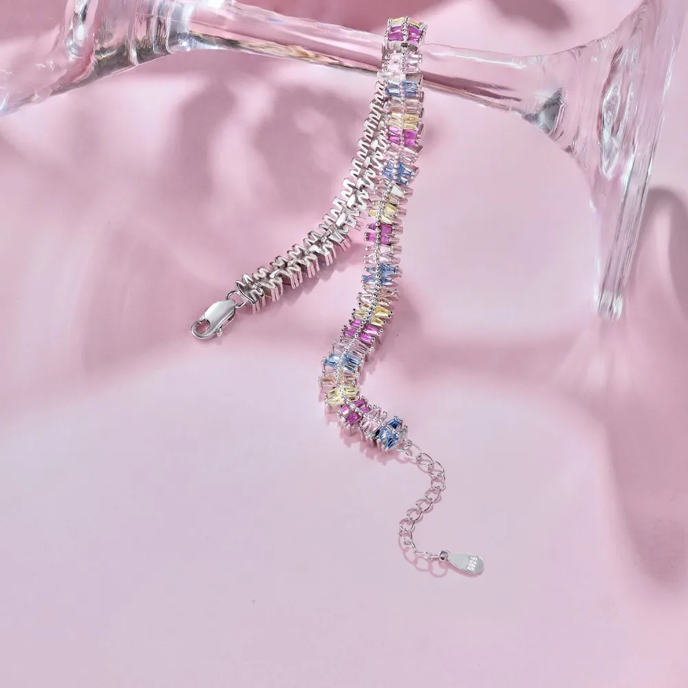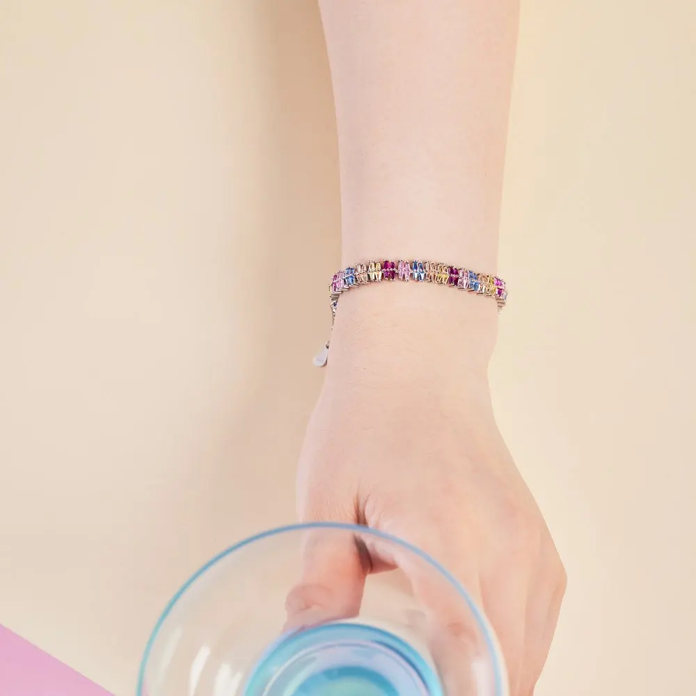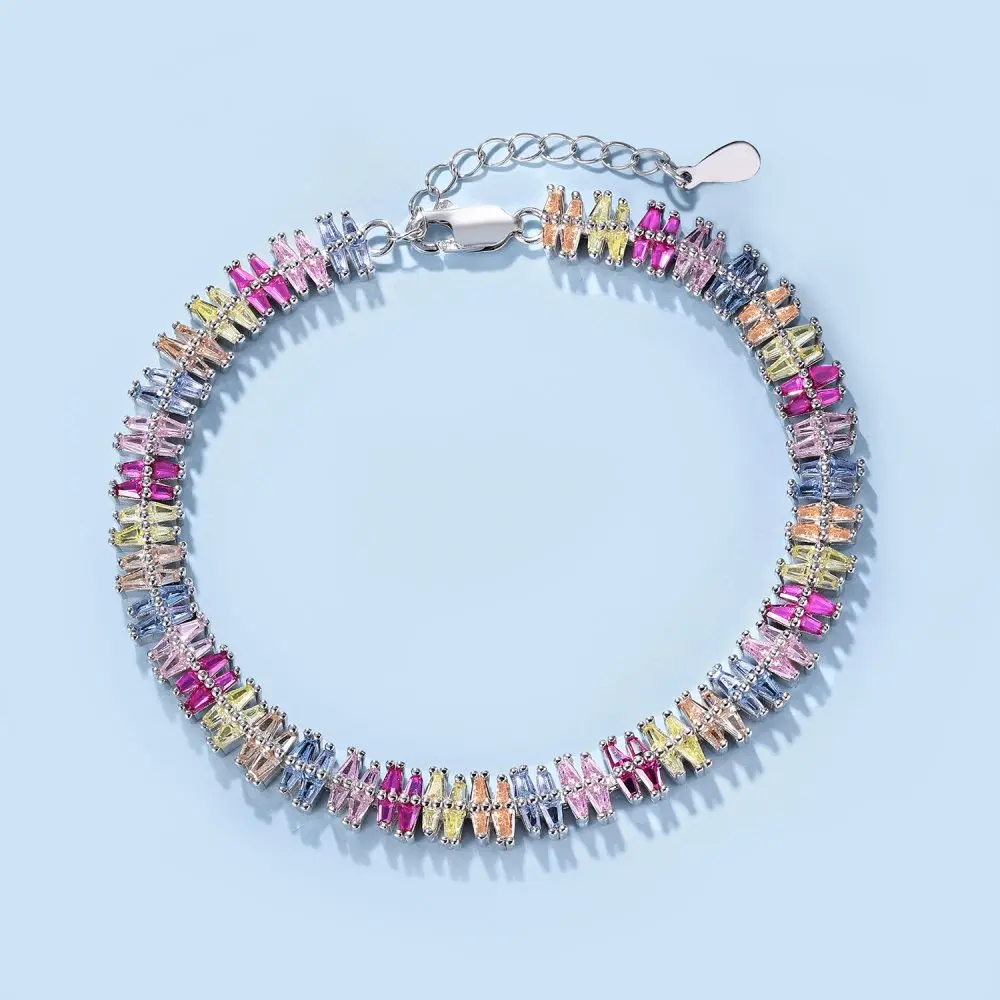 Dylam Dainty Colorful Fine Jewelry Bracelets Sterling Silver Rhodium Plated Marquise Baguette 5A Cubic Zirconia Women Bracelets