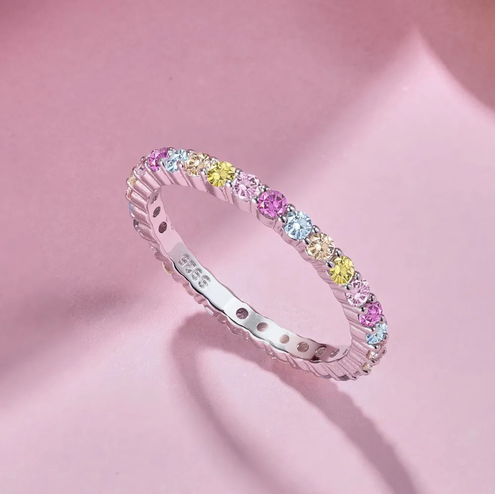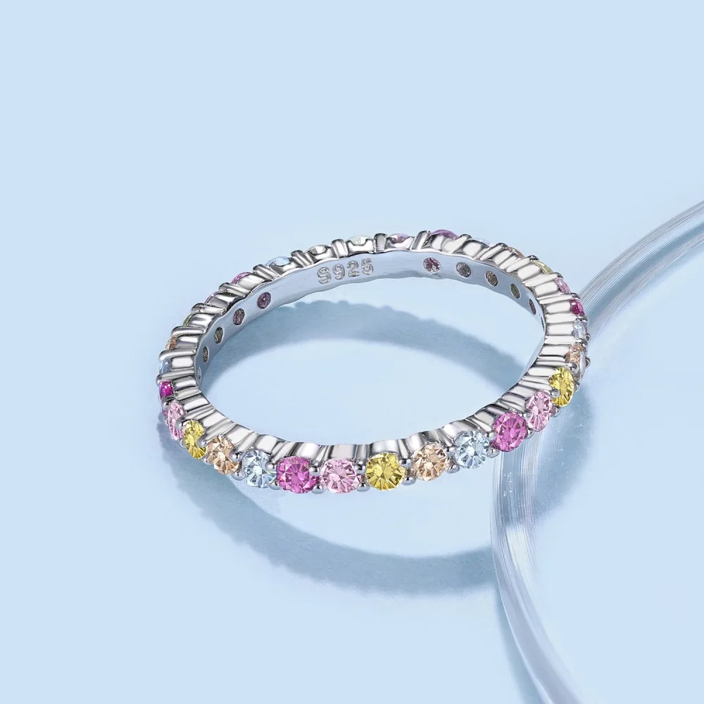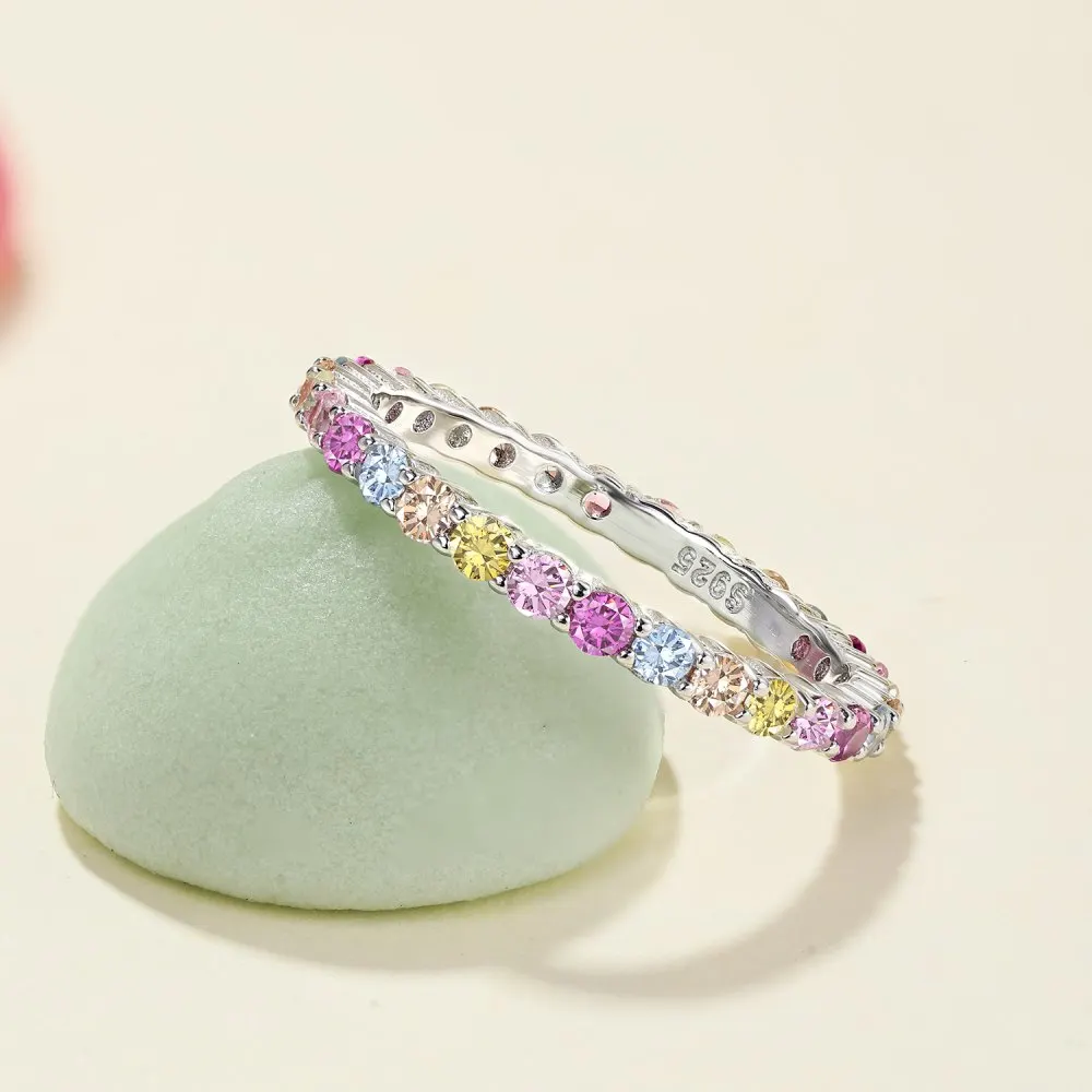 Dylam Eternity Band Rings 2mm 5A Cubic Zirconia Diamond S925 Silver Rhodium Plated Colorful Wedding Engagement Promise Rings