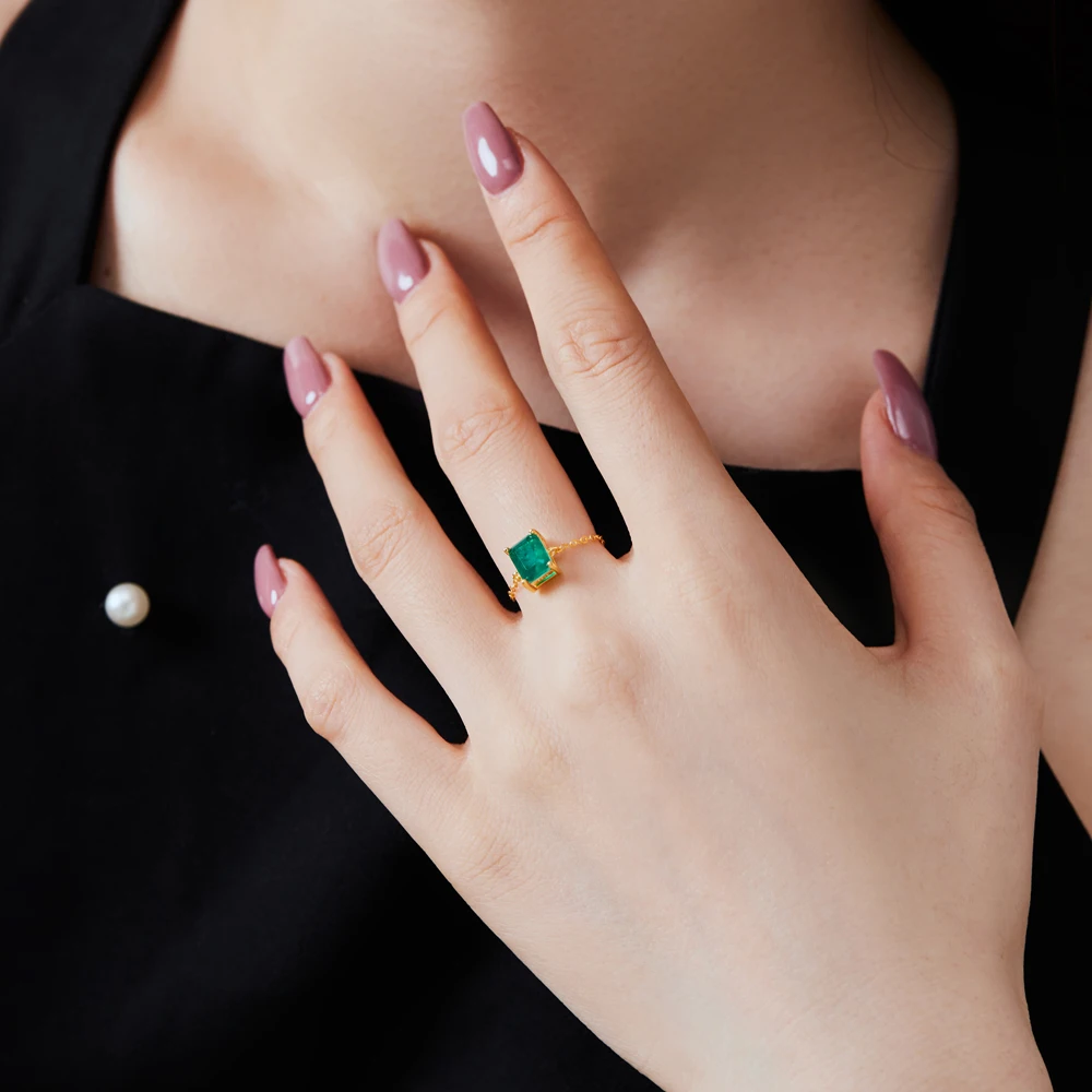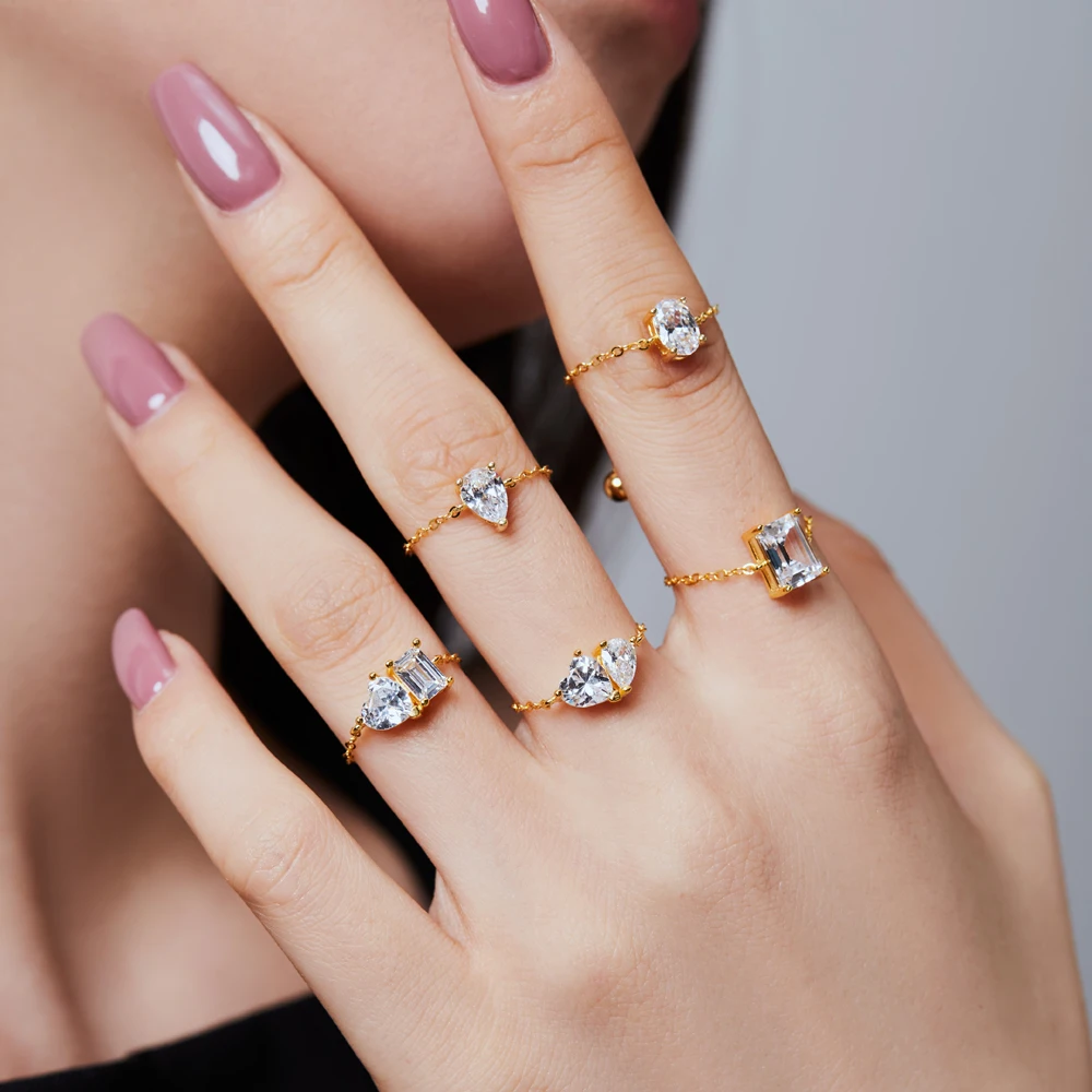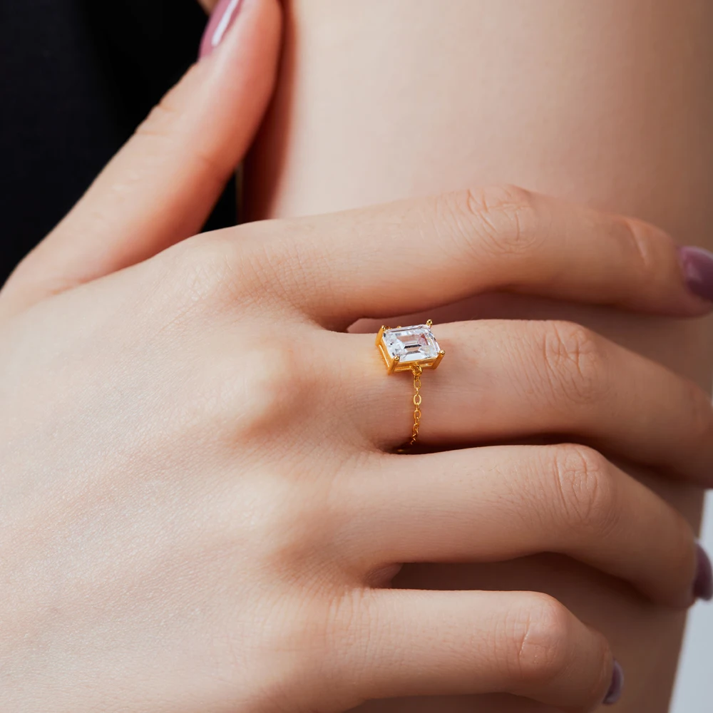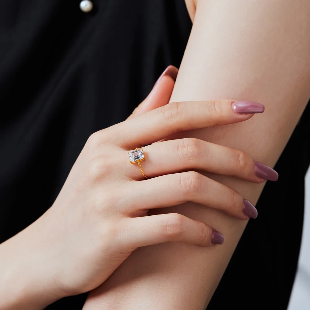 Dylam In Stock No Moq Dainty S925 Silver Rhodium 18K Gold Plated Adjustable Link Chain Rectangle 5A Zirconia Jewelry Rings