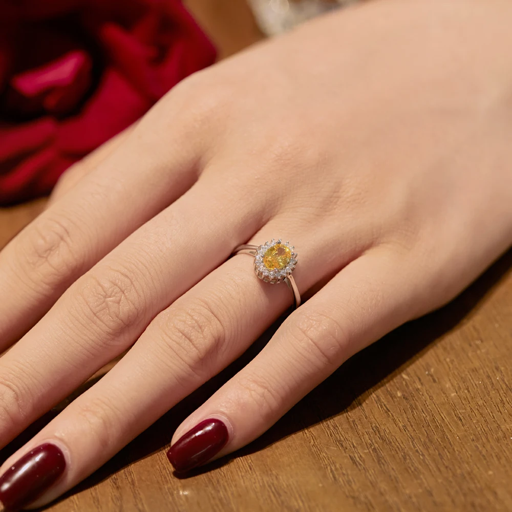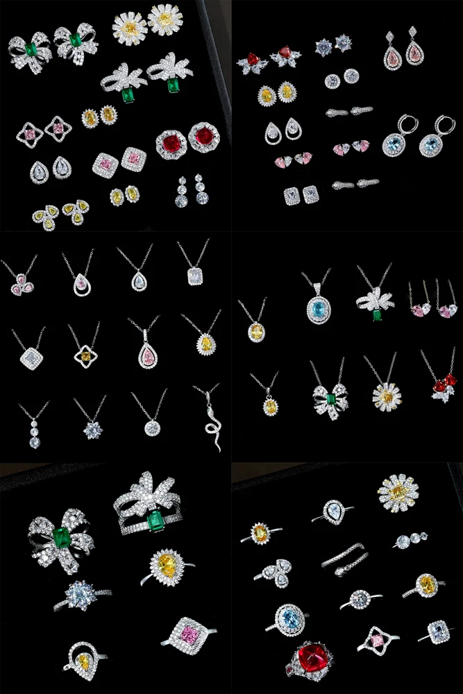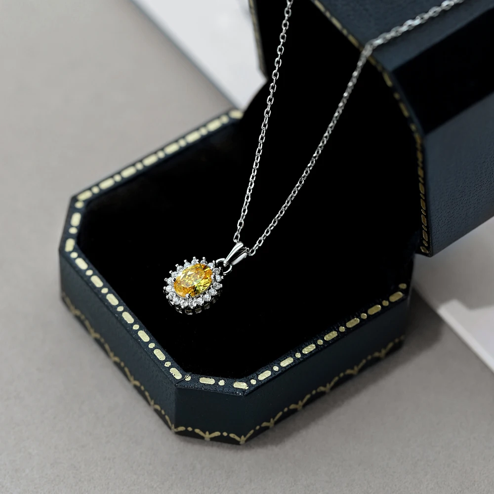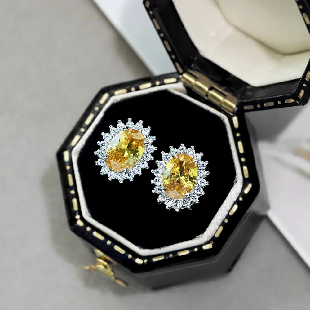 Dylam Luxurious Jewelry Set S925 Silver Rhodium Plated Clear Yellow 5A Zirconia Eternity Stud Earrings Pendant Necklace Ring