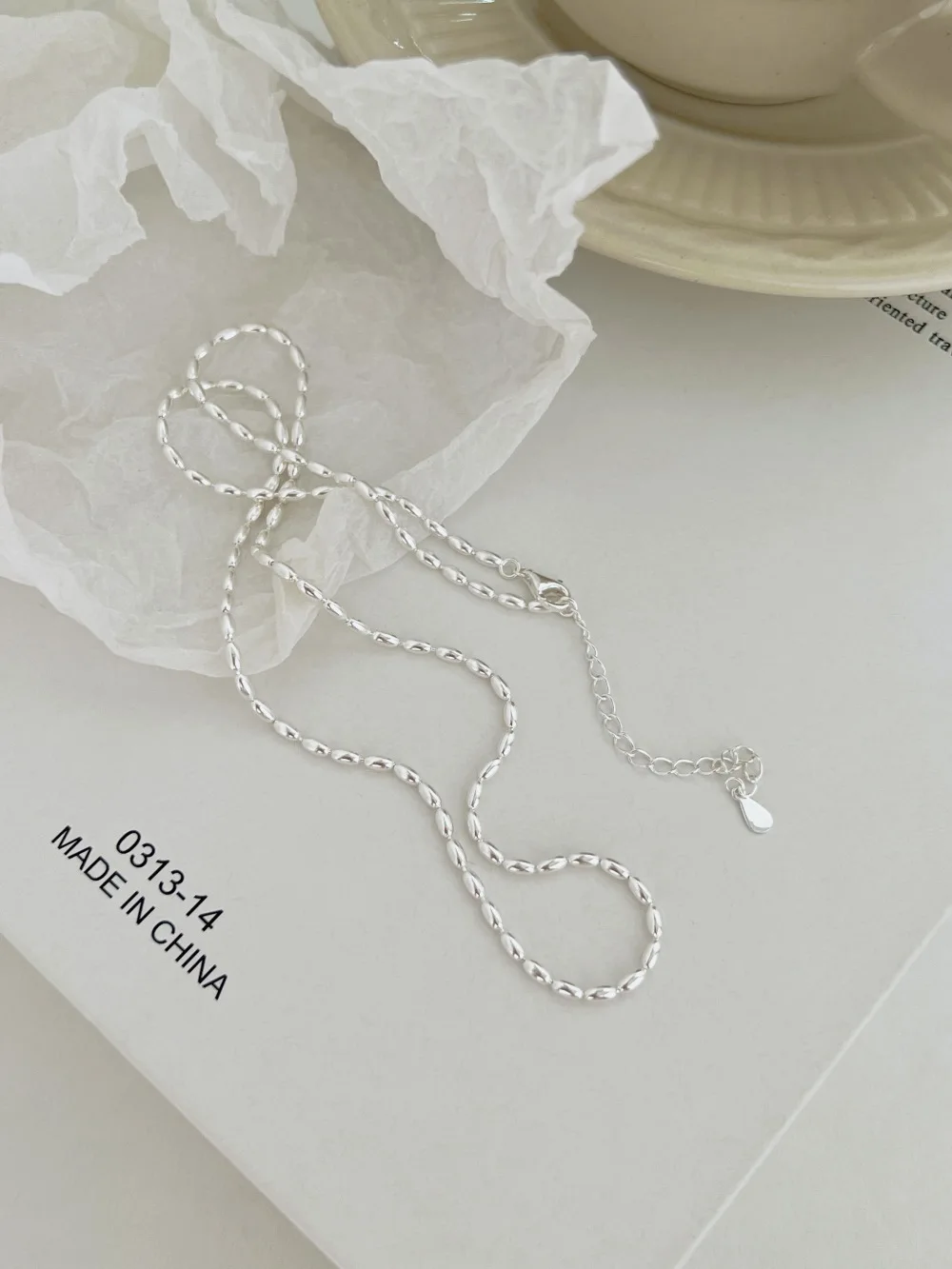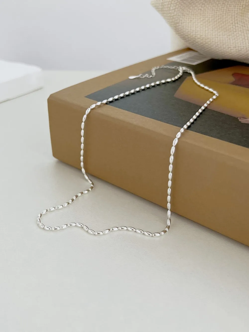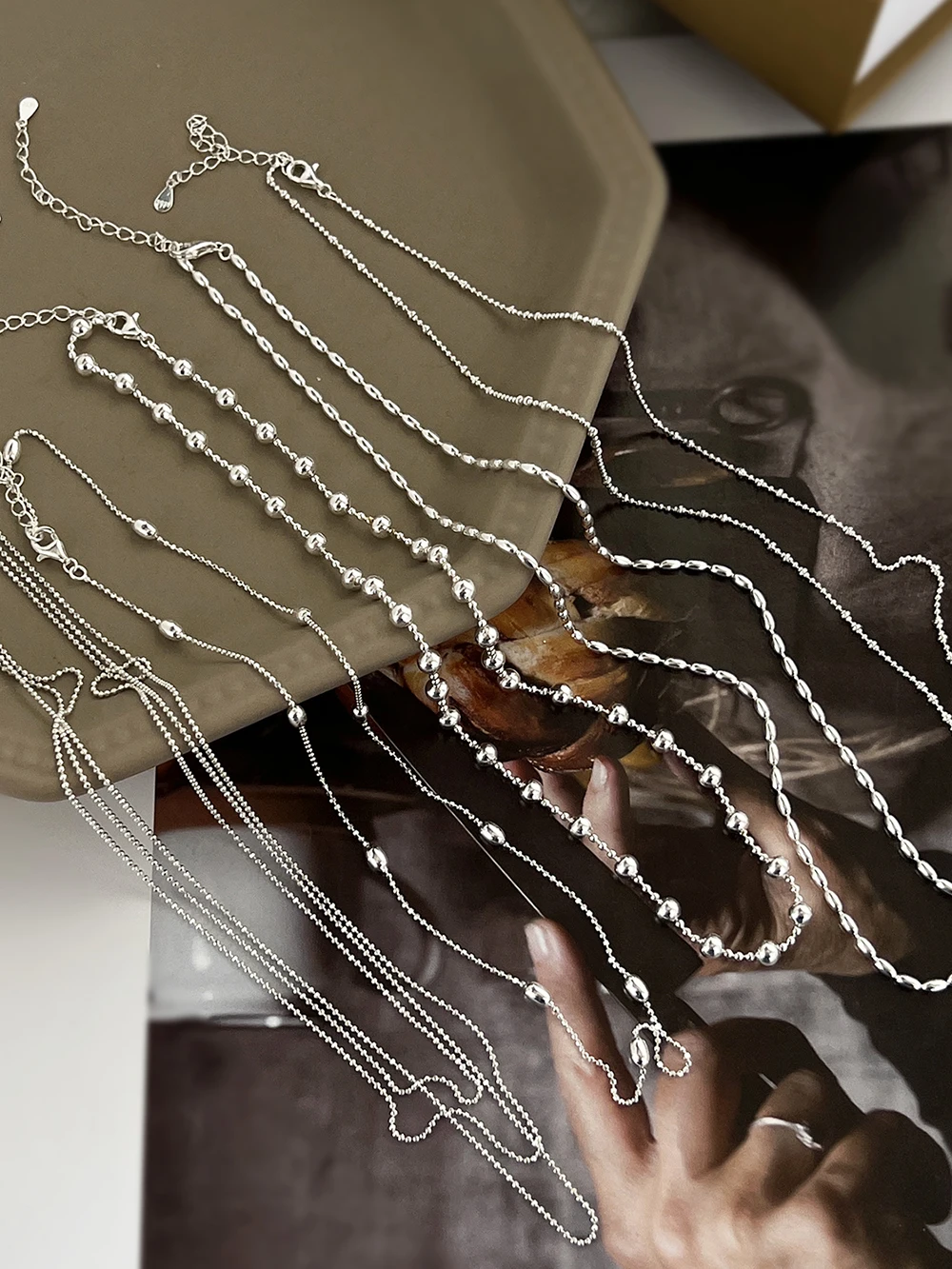Dylam Minimalist Simple Design Women Girls 925 Sterling Silver Rhodium Plated Oval Beaded Chain Jewelry Jewellery Necklace