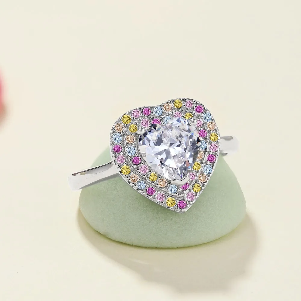 Dylam Nice Colorful Design Eternity Band Women S925 Silver Rhodium Plated 5A Cubic Zirconia Sparkle Heart Shape Ring for Women