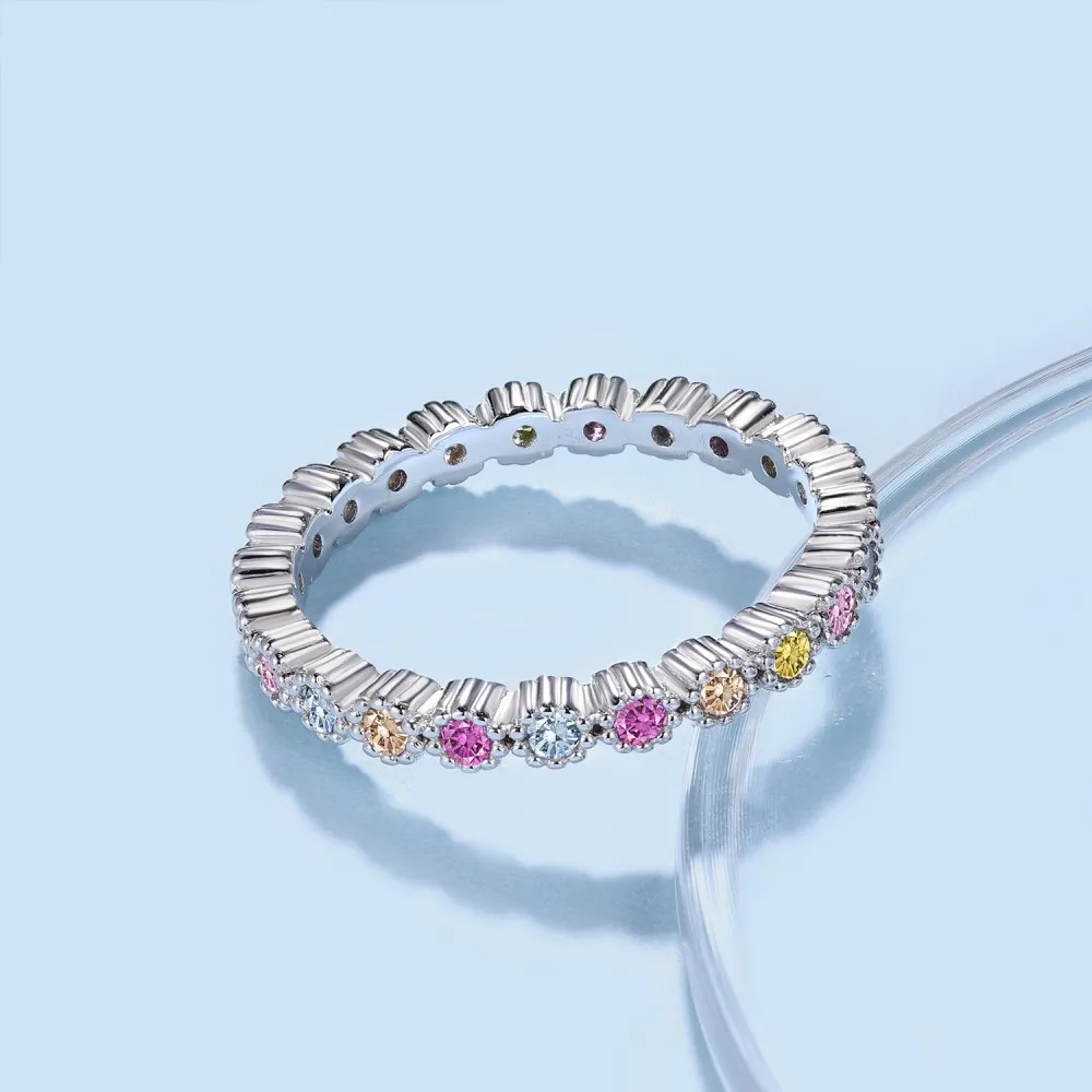 Dylam Round Cut Pave Setting 1.8mm 5A Cubic Zirconia Sparkling Colorful 925 Sterling Silver Eternity Band Wedding Bridal Rings