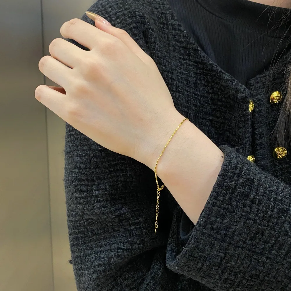 Dylam Simplicity Design 925 Sterling Silver Rhodium 18K Gold Plated Simple Bracelet for Women Daily Wear Dress Up Accessories