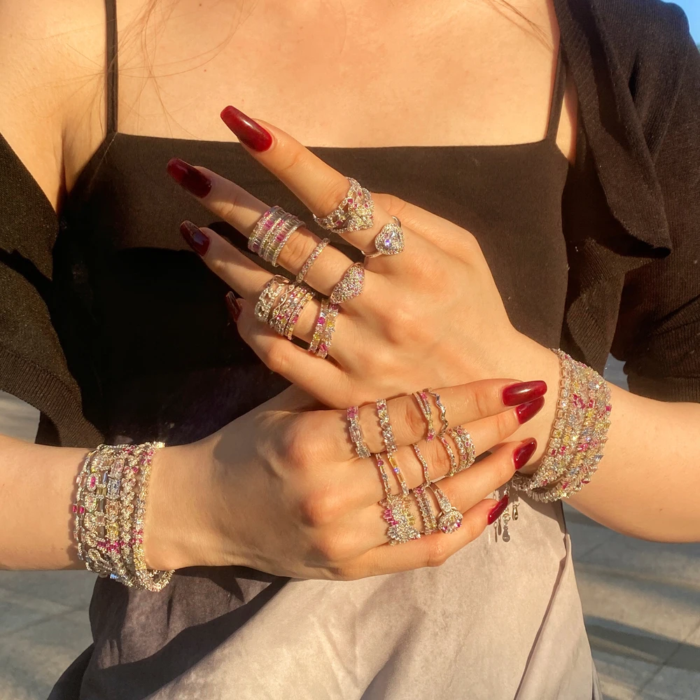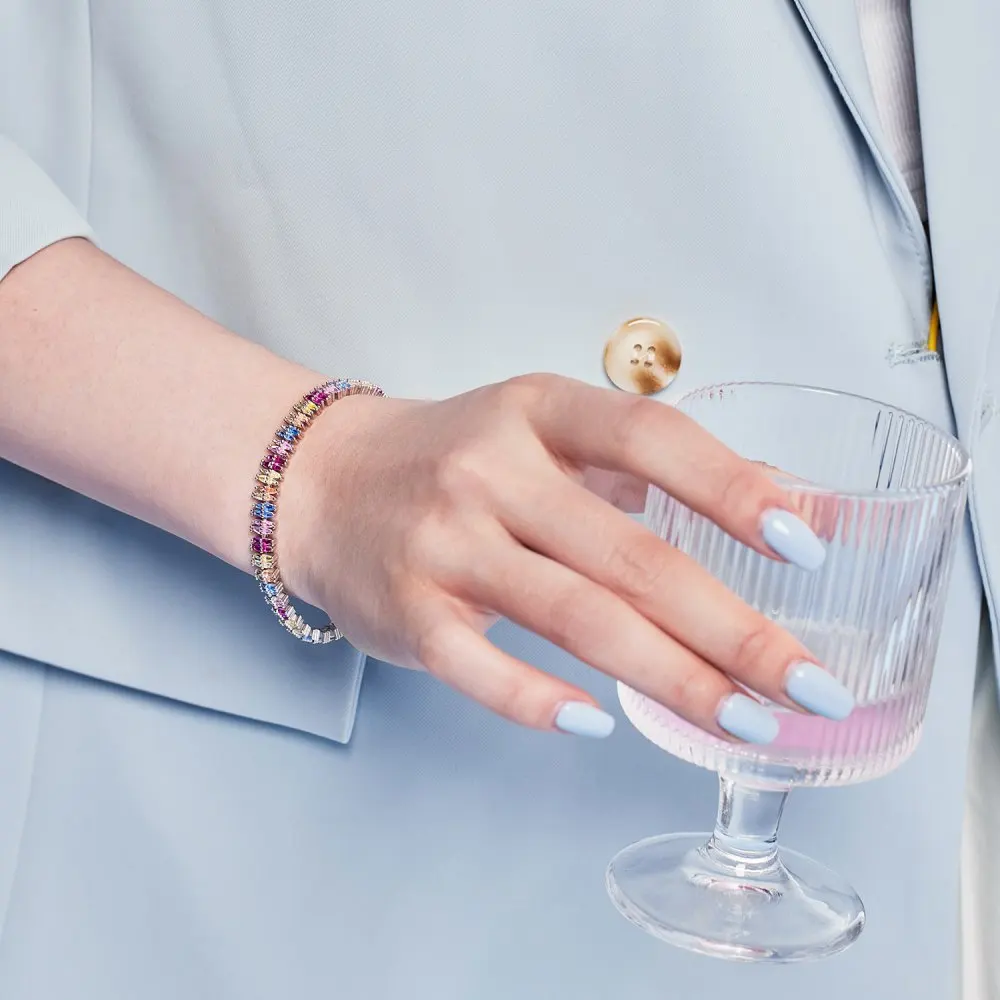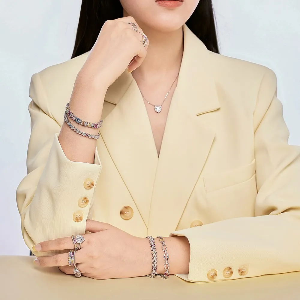 Dylam Stylish Colorful Fine Jewelry Bracelets S925 Silver Rhodium Plated Multiple Color 5A Cubic Zirconia Baguette Bracelet