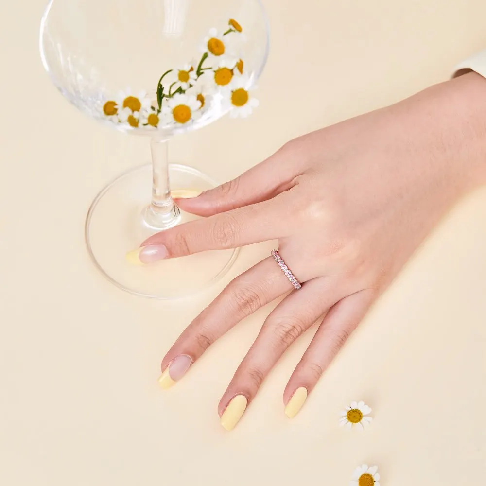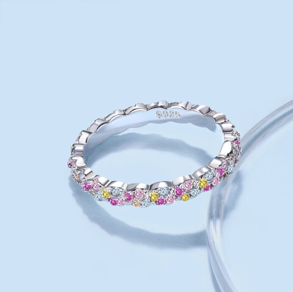 Dylam Stylish Exclusive Design S925 Silver Rhodium Plated Eternity Band Colorful 5A Zirconia Intersect Cross Pave Setting Rings
