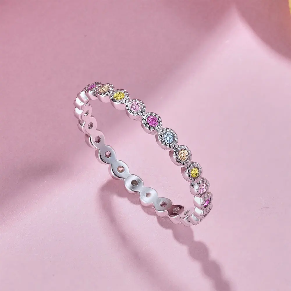 Dylam Tine Jewellery Rings Women Solid Sterling Silver Rhodium Plated Round Cut 1.5mm 5A Zirconia Stone Eternity Band Rings