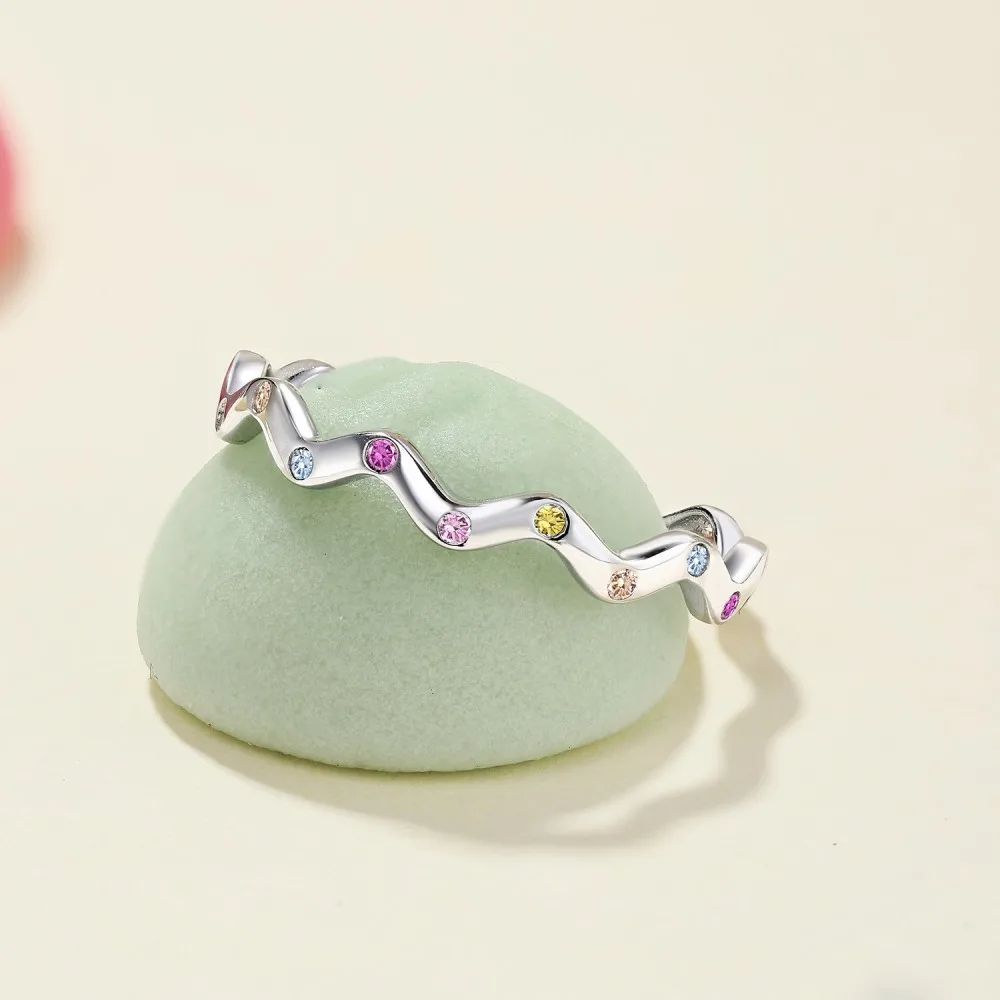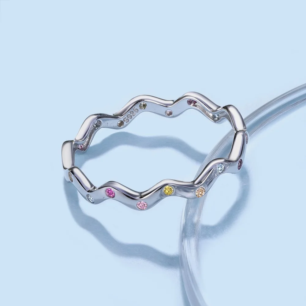 Dylam Tiny Fine Jewelry Women Solid Sterling Silver Rhodium Plated Non Tarnish Daily 5A Cubic Zirconia Wave Shape Women Rings