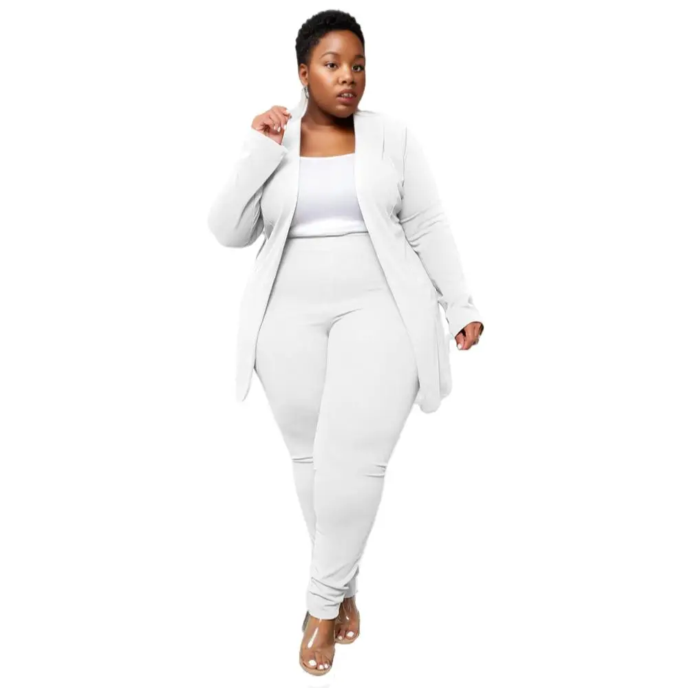 E0110ME11 Popular Plus Size Solid Color Long Sleeve Workout Office Style 2 Piece Blazer Suits Sets Women Sehe Fashion