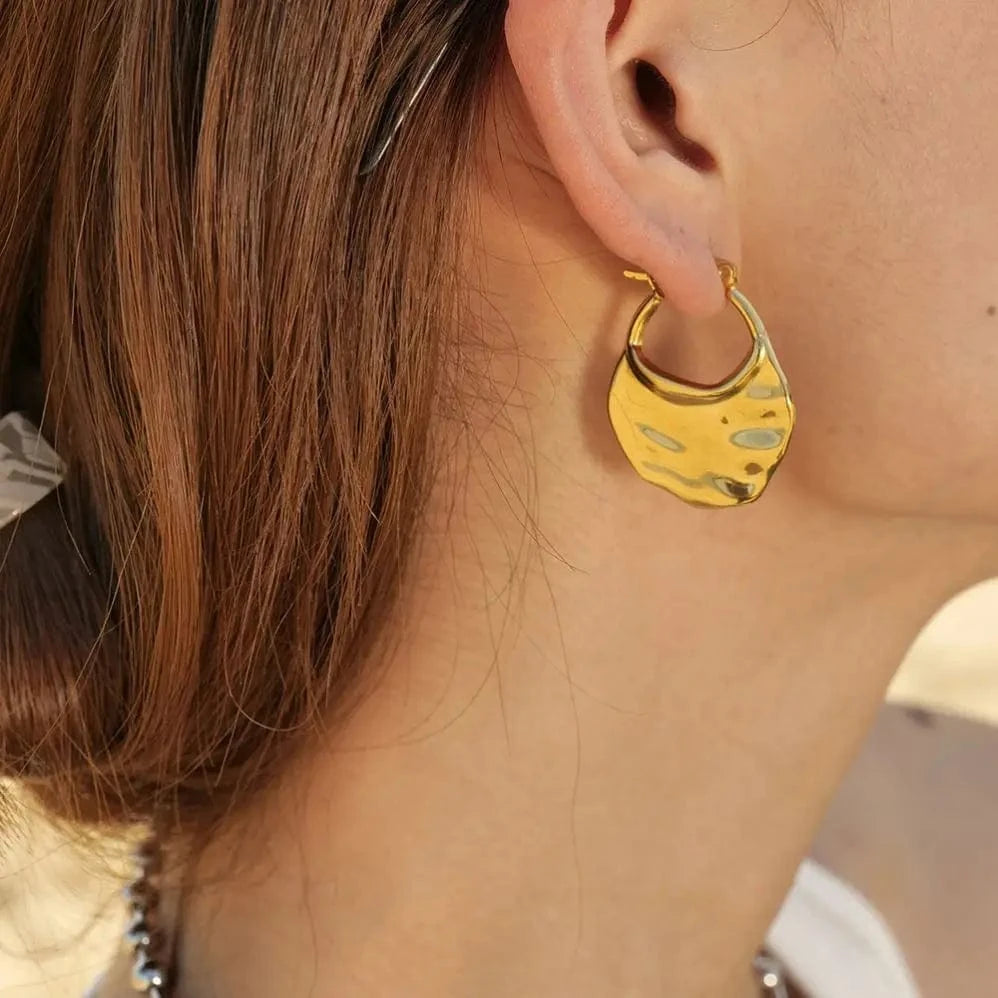 E2068 Exaggerated Chunky Hoop Earring 18k Gold Plated Stainless Steel French Fanshaped Drop Earring For Women