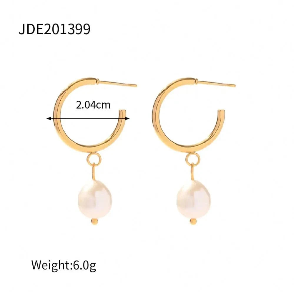 E2180 18K Gold Planted Pearl CC Texture Hoop Earring Nontarnish Stainless Steel Pearl Hoop Earring for Women