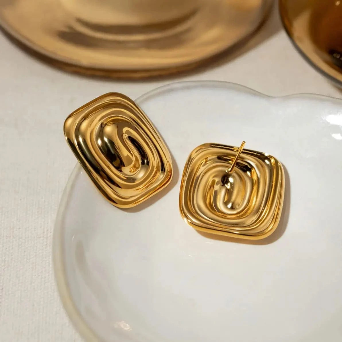 E2907 Jewelry High Polish 18K Gold Plated Stainless Steel Rectangle Square Spiral Hammer Stud Earring