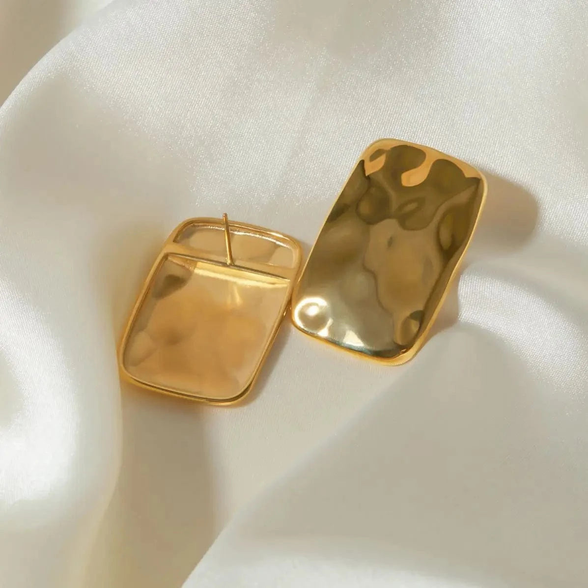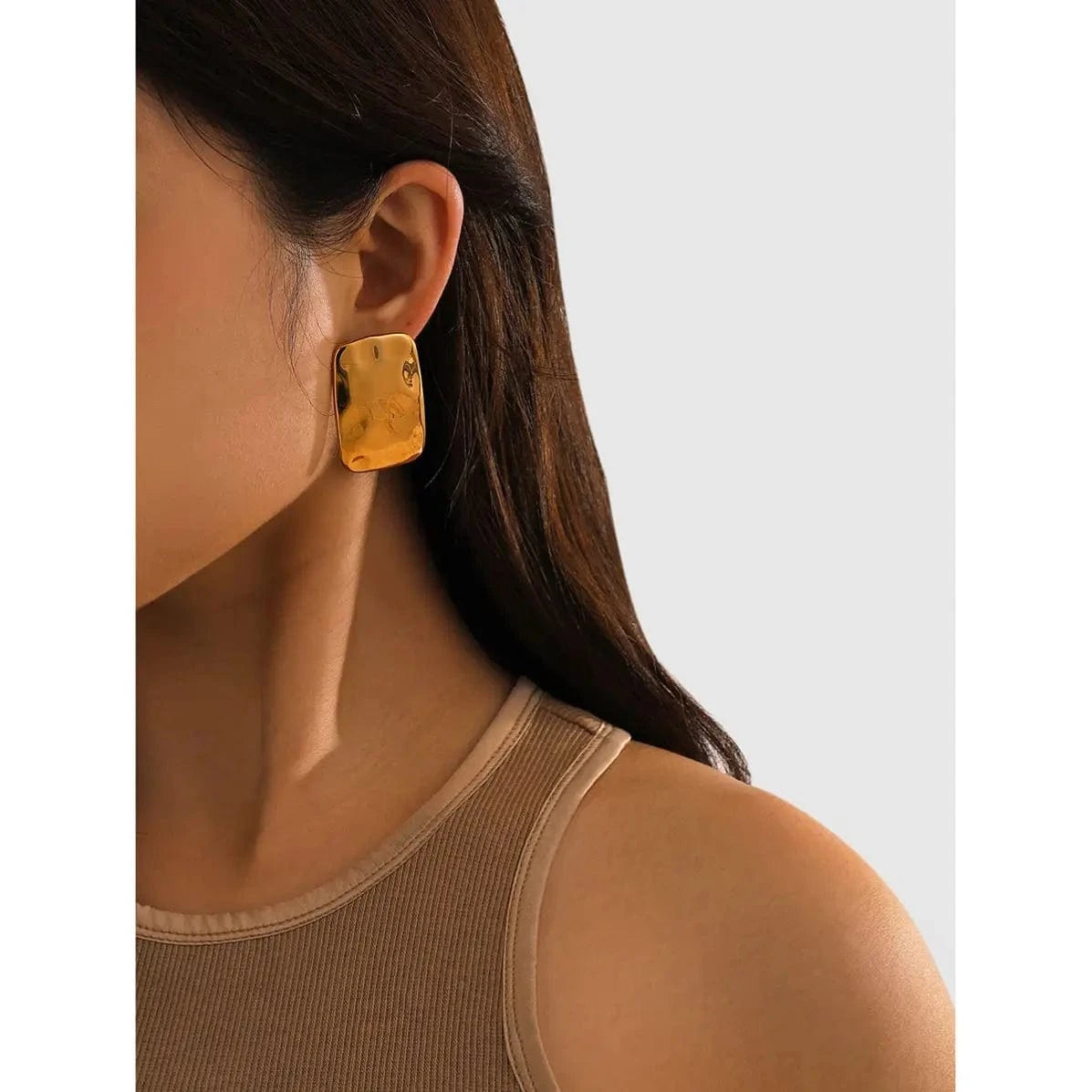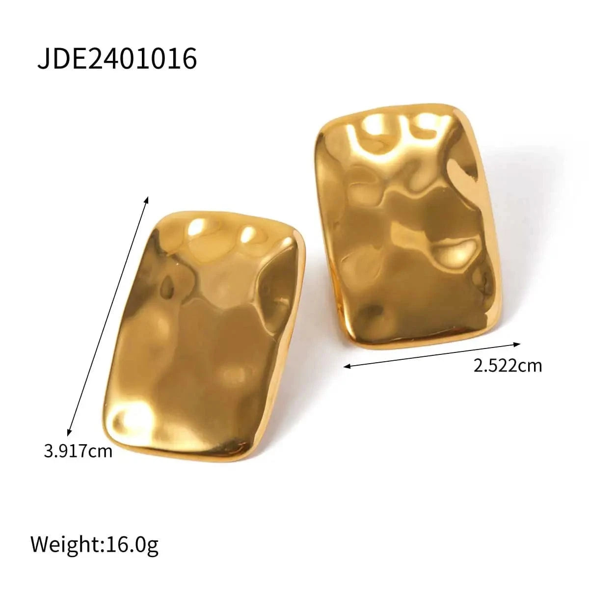 E2909 Jewelry High Polish 18K Gold Plated Stainless Steel Big Chunky Texture Square Hammer Stud Earring