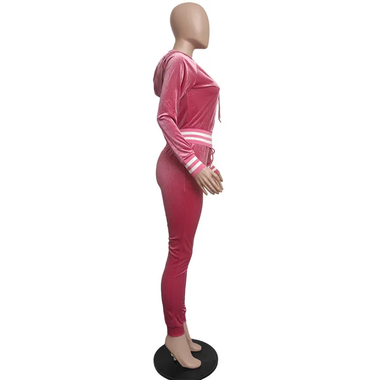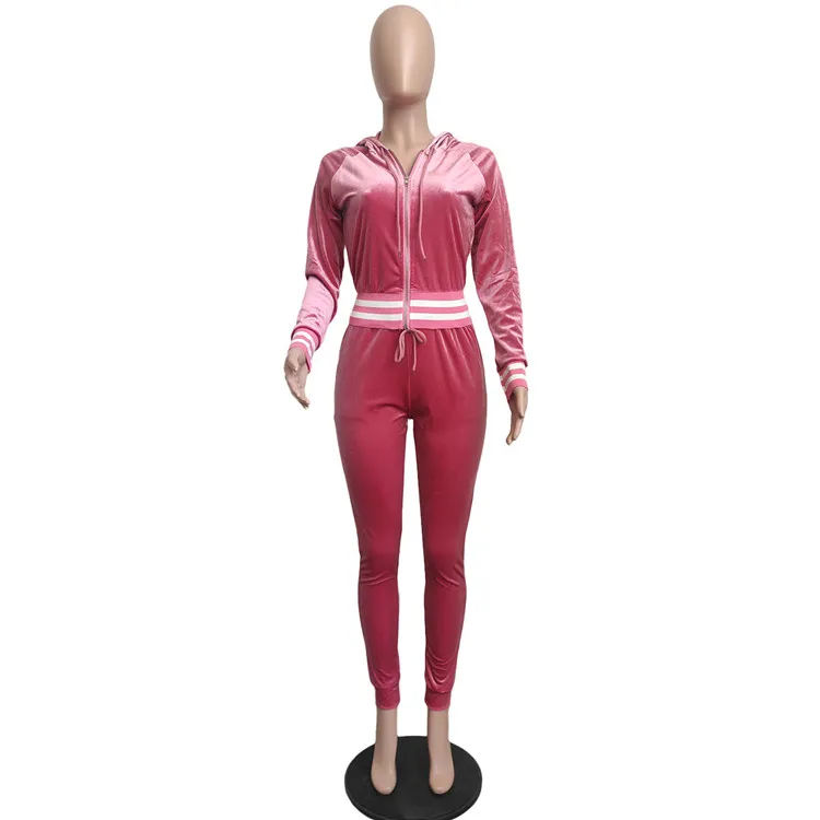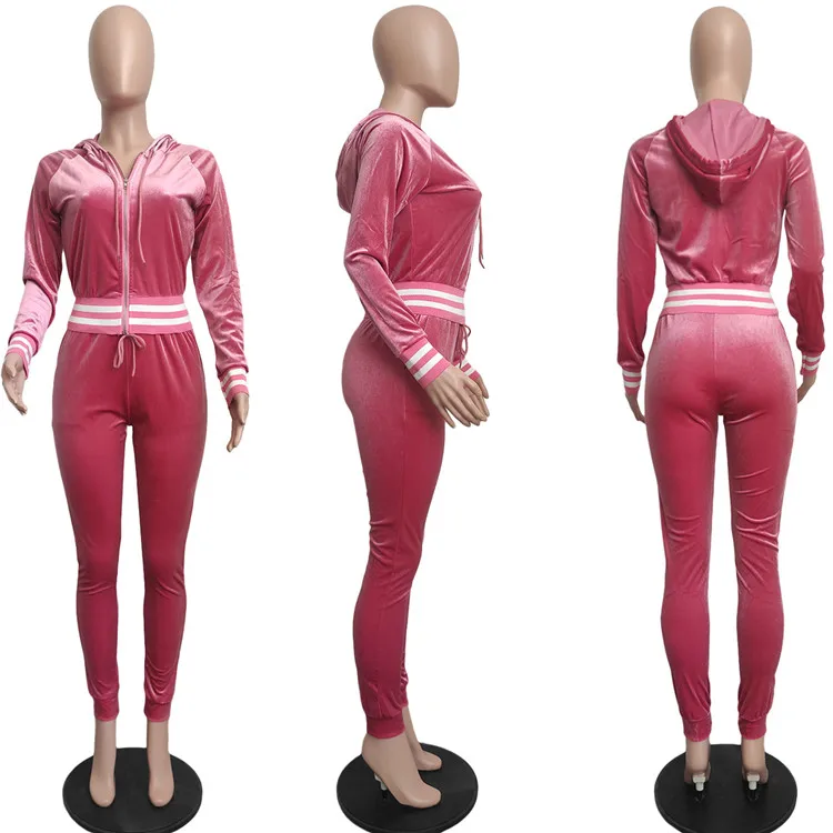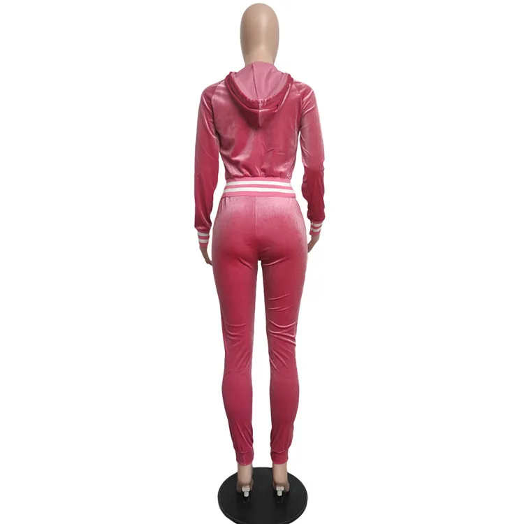 EB-20092410 2023 New Ladies Velvet Outfits Zip Up Hoodie Track Pants Jogger Fall Winter Women Sweatsuit 2 Piece Set