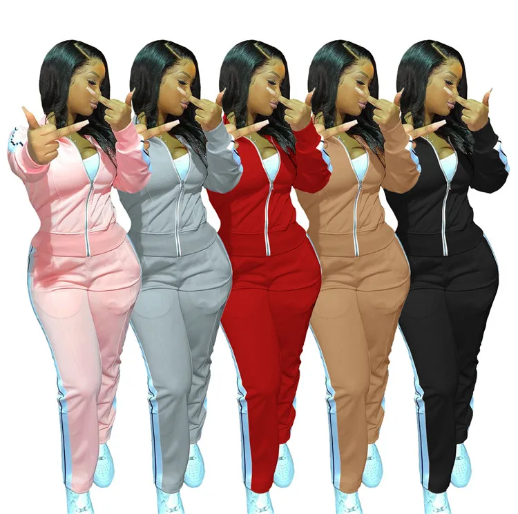 New Hot Patchwork Jacket And Pants Hiking Clothes Matching Fall Winter Women Two Piece Set