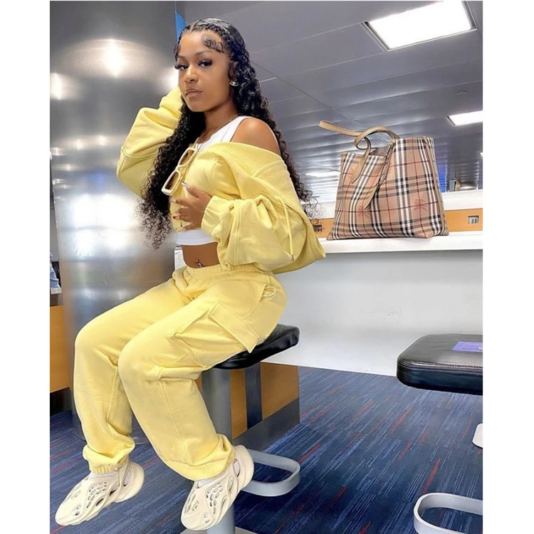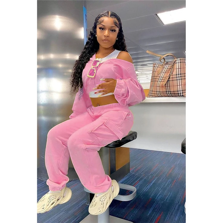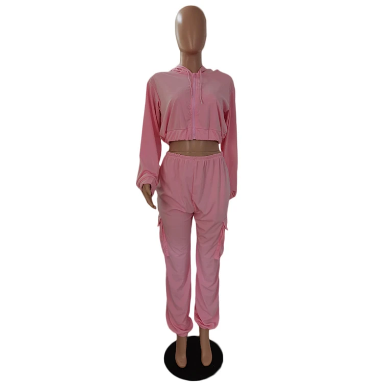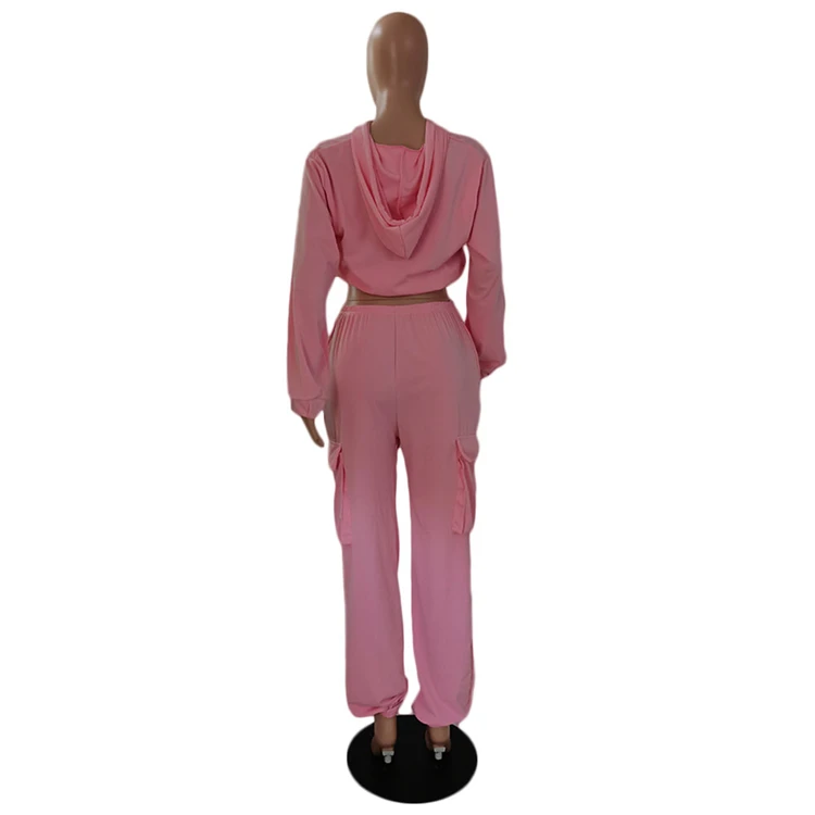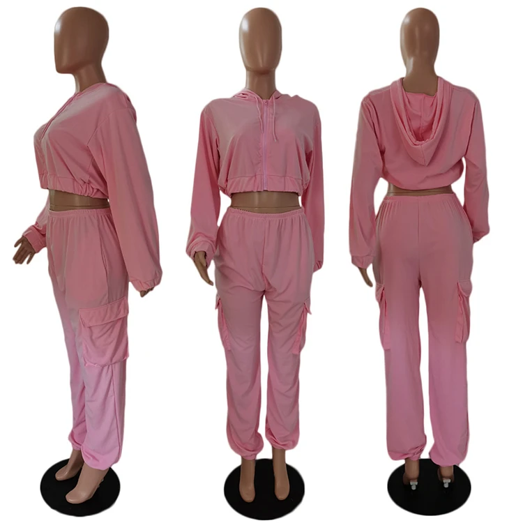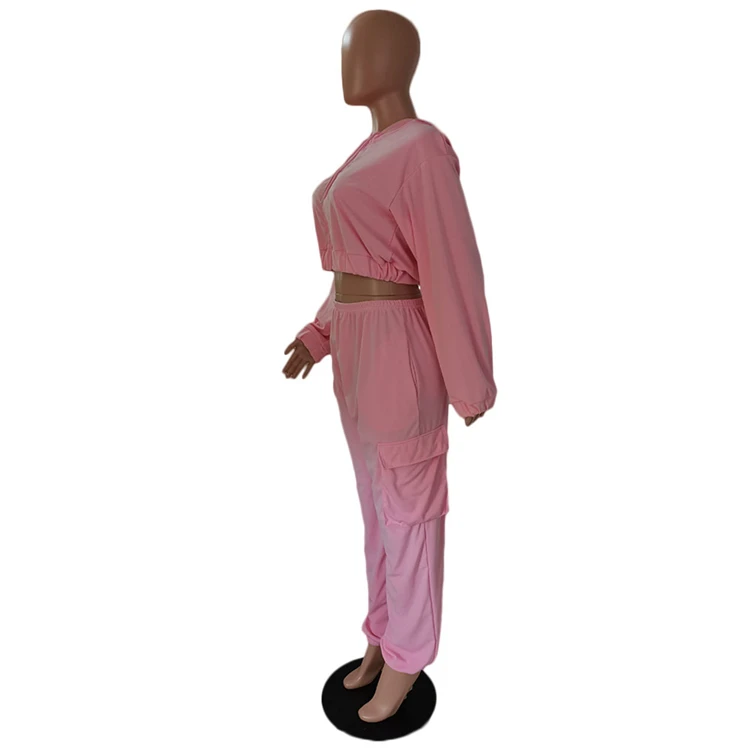 EB-2023 new092214 Popular Casual Ladies Outfits Zip Up Hoodies Cargo Pants Fall 2 Piece Set For Women Clothes
