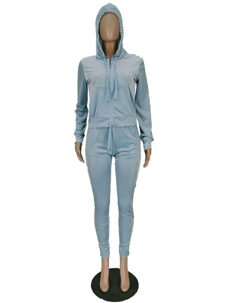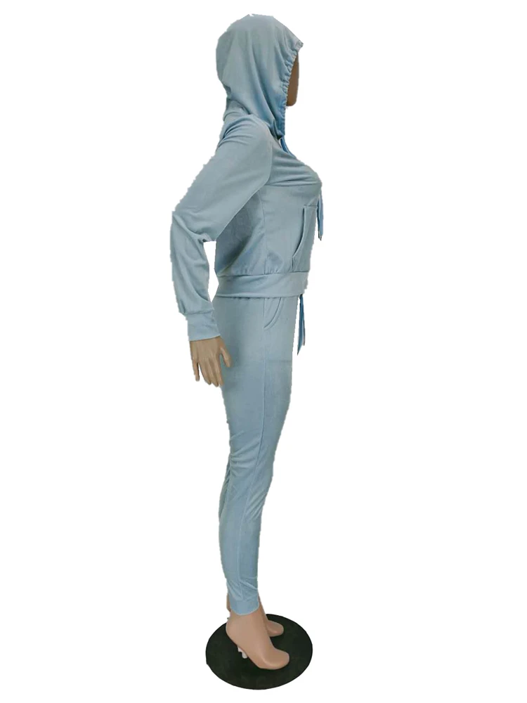 EB-2023 new092218 Wholesale Ladies Solid Long Sleeve Hoodie Sweatshirt And Pants Velvet Cozy Outfit Fall Women Two Piece Set