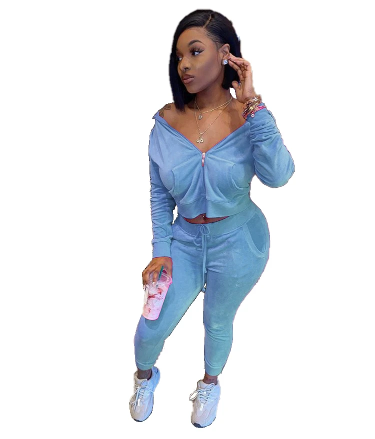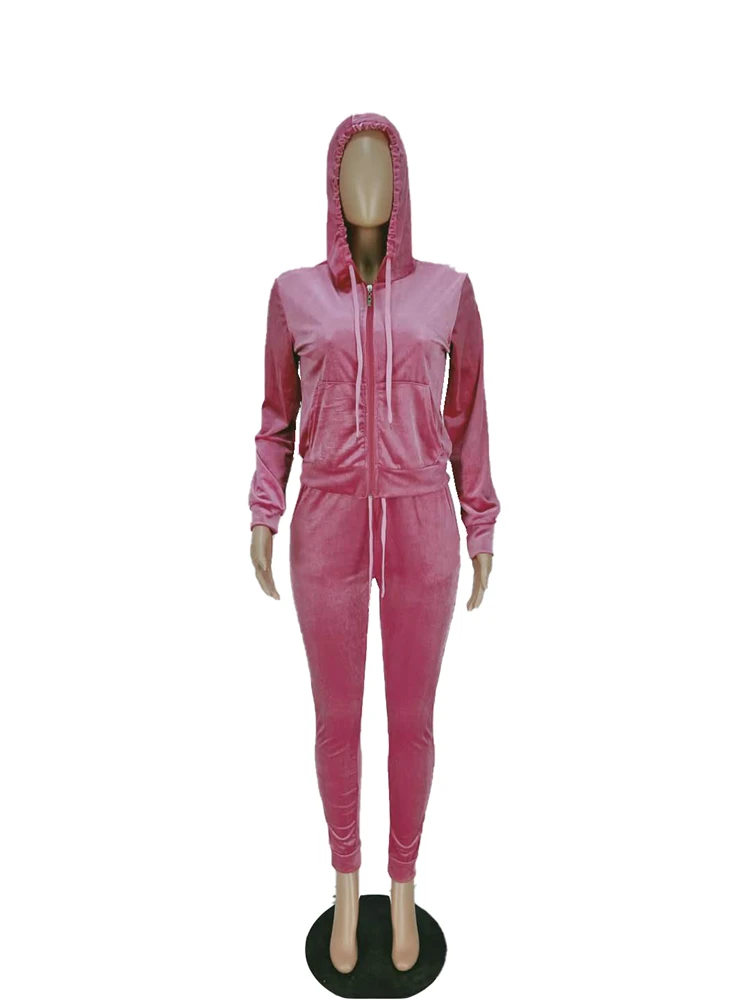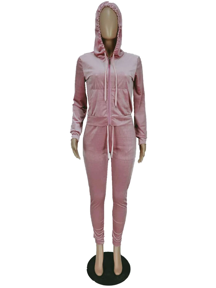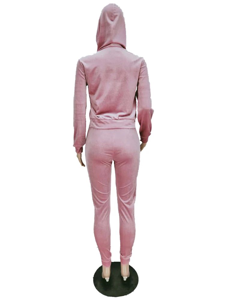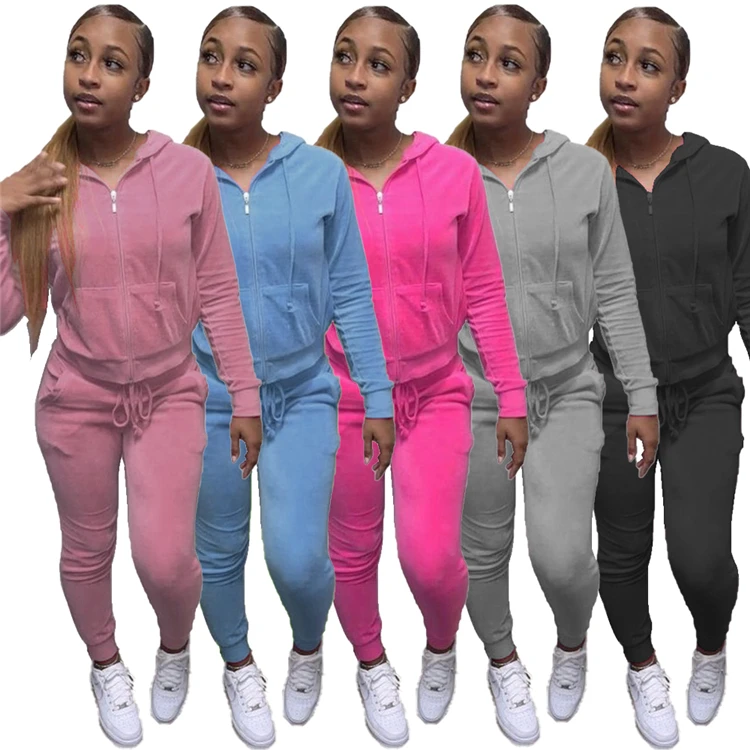 Wholesale Ladies Solid Long Sleeve Hoodie Jacket And Pants Velvet Cozy Outfit Fall Women Two Piece Set