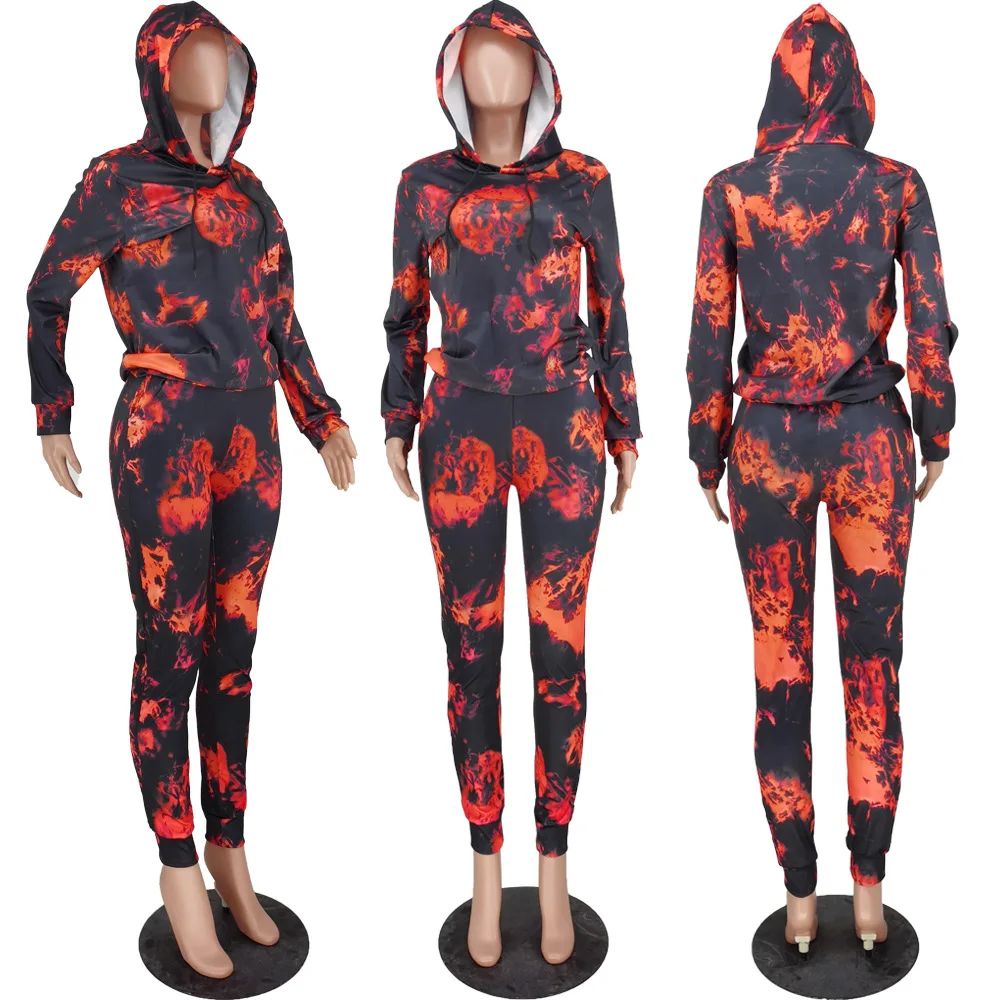 EB-2023 new092422 Women's Sexy Tie Dye Gym And Yoga Sweatpants Hoodie Fall Set Stretch Slim Fall Women 2 Piece Sets