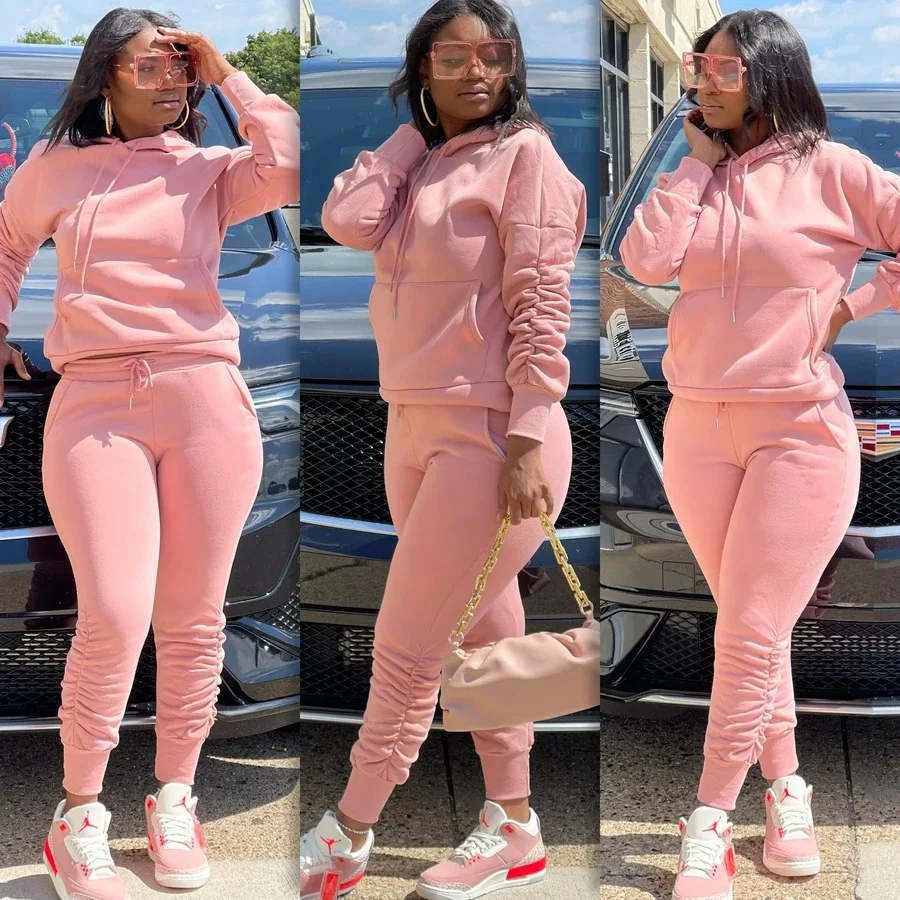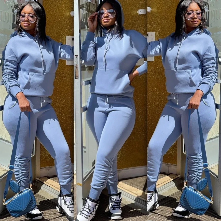 EB-2023 new092905Hoodie Casual Women's Sets High Quality Fleece Lining Women's 2 Piece Sets Yoga Fall And Winter Slim Casual Women Set