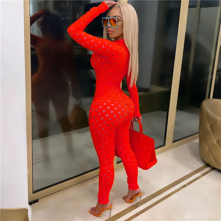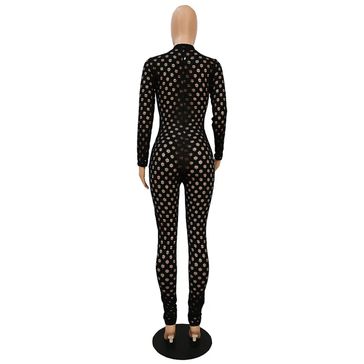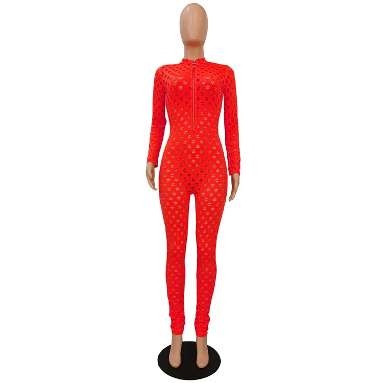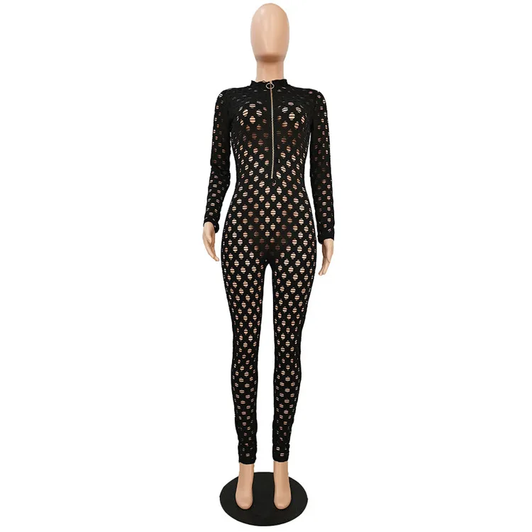 EB-2023 new100806 Casual Ladies Bodysuit Rompers Solid Color Mesh Adjustable Zipper Sexy Skinny One Piece Fall Women Jumpsuit