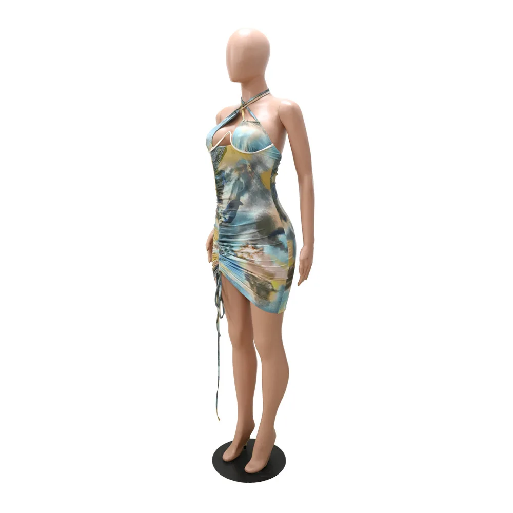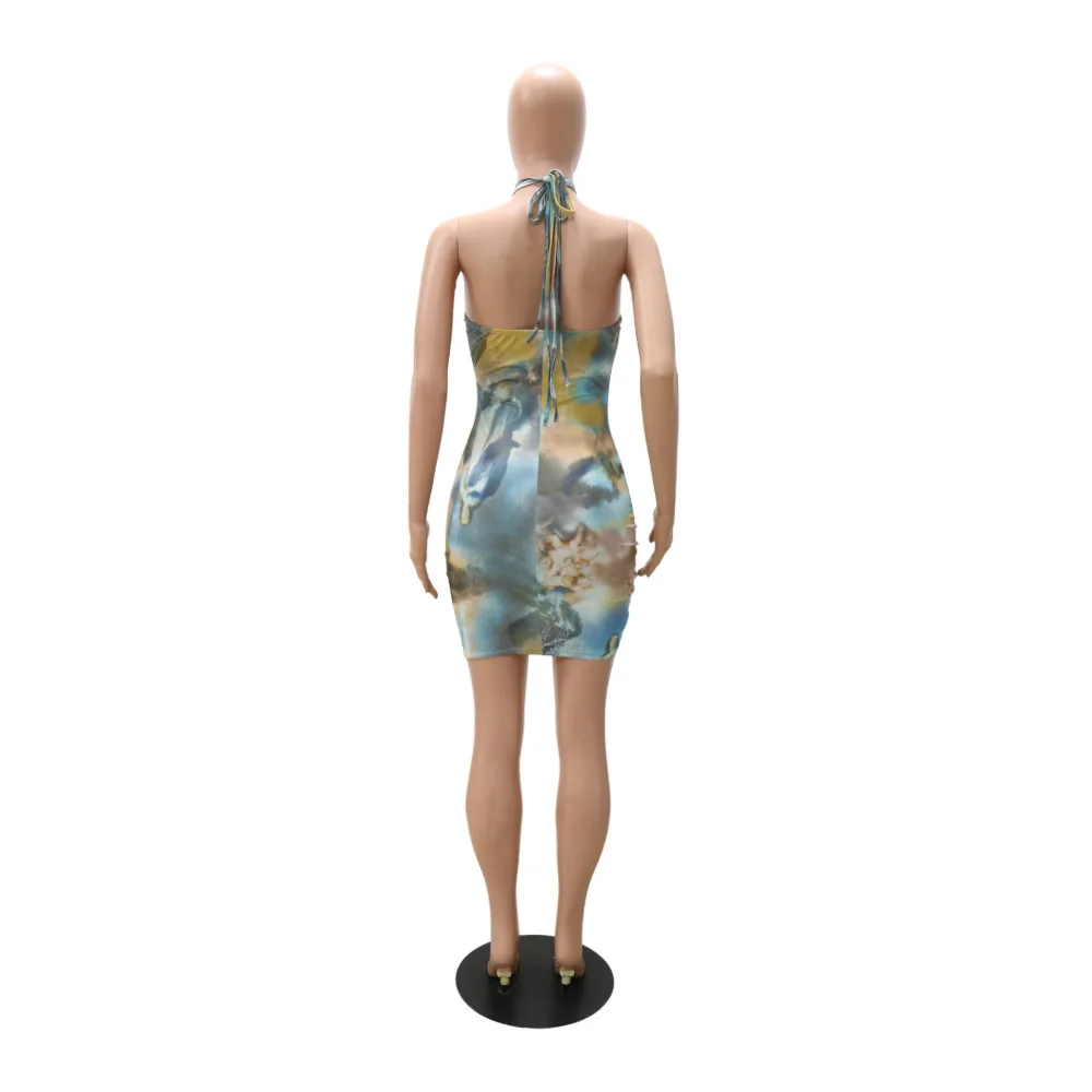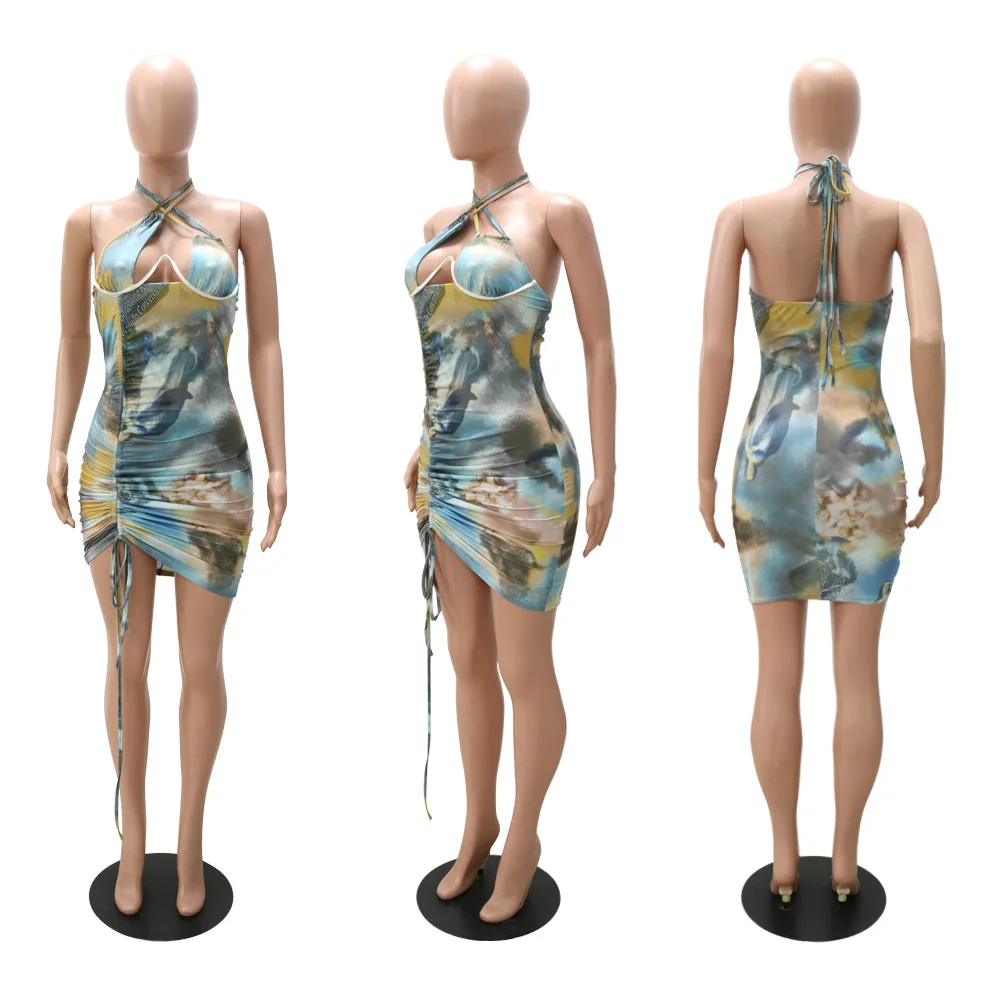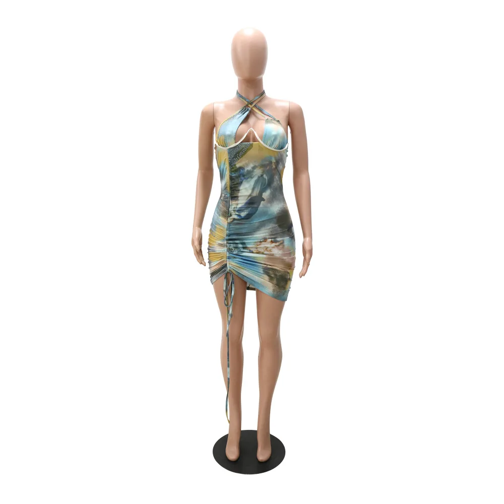 EB-2023051361 2023 fashion sexy sleeveless halter printed drawstring backless women mini dress