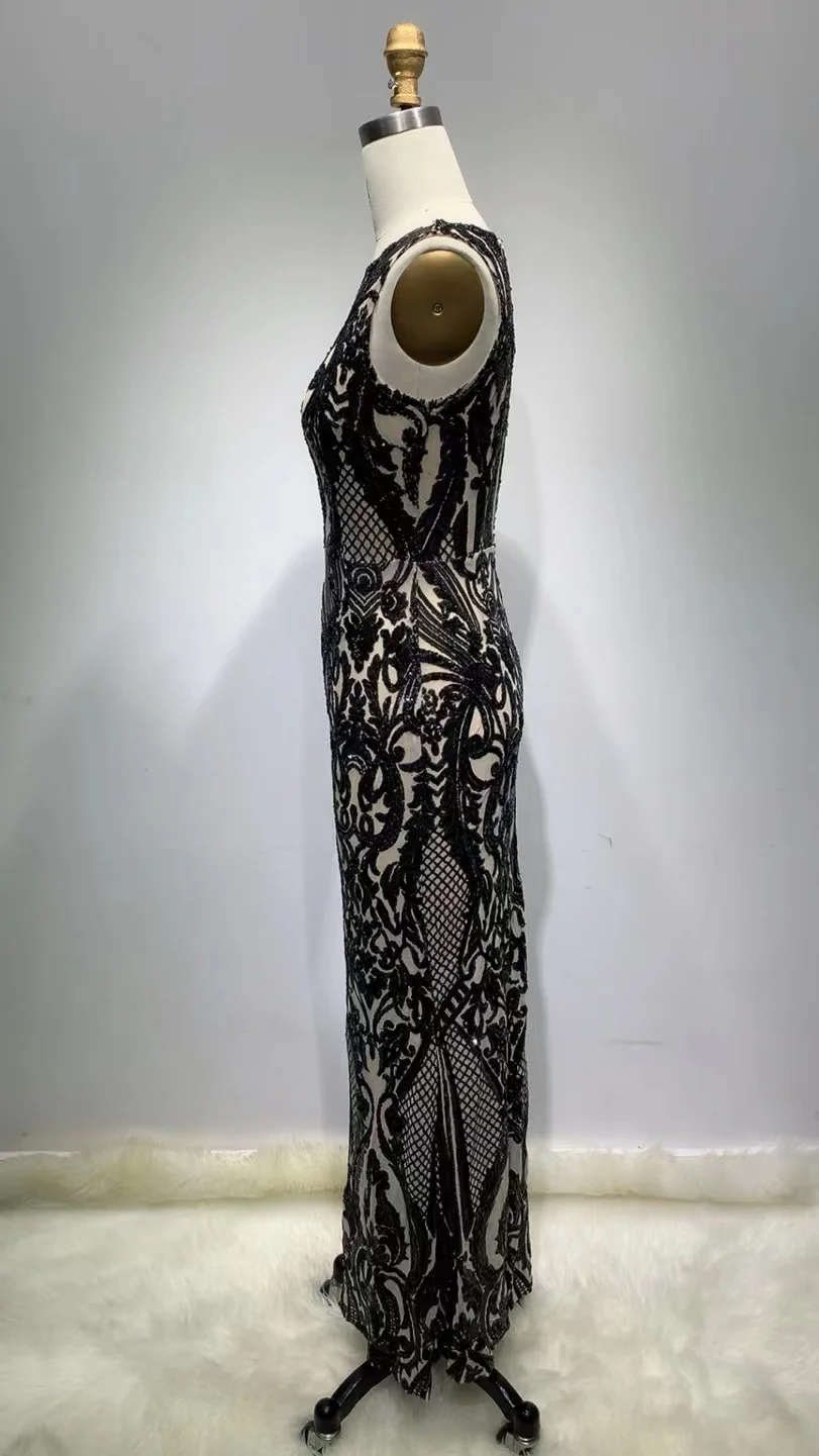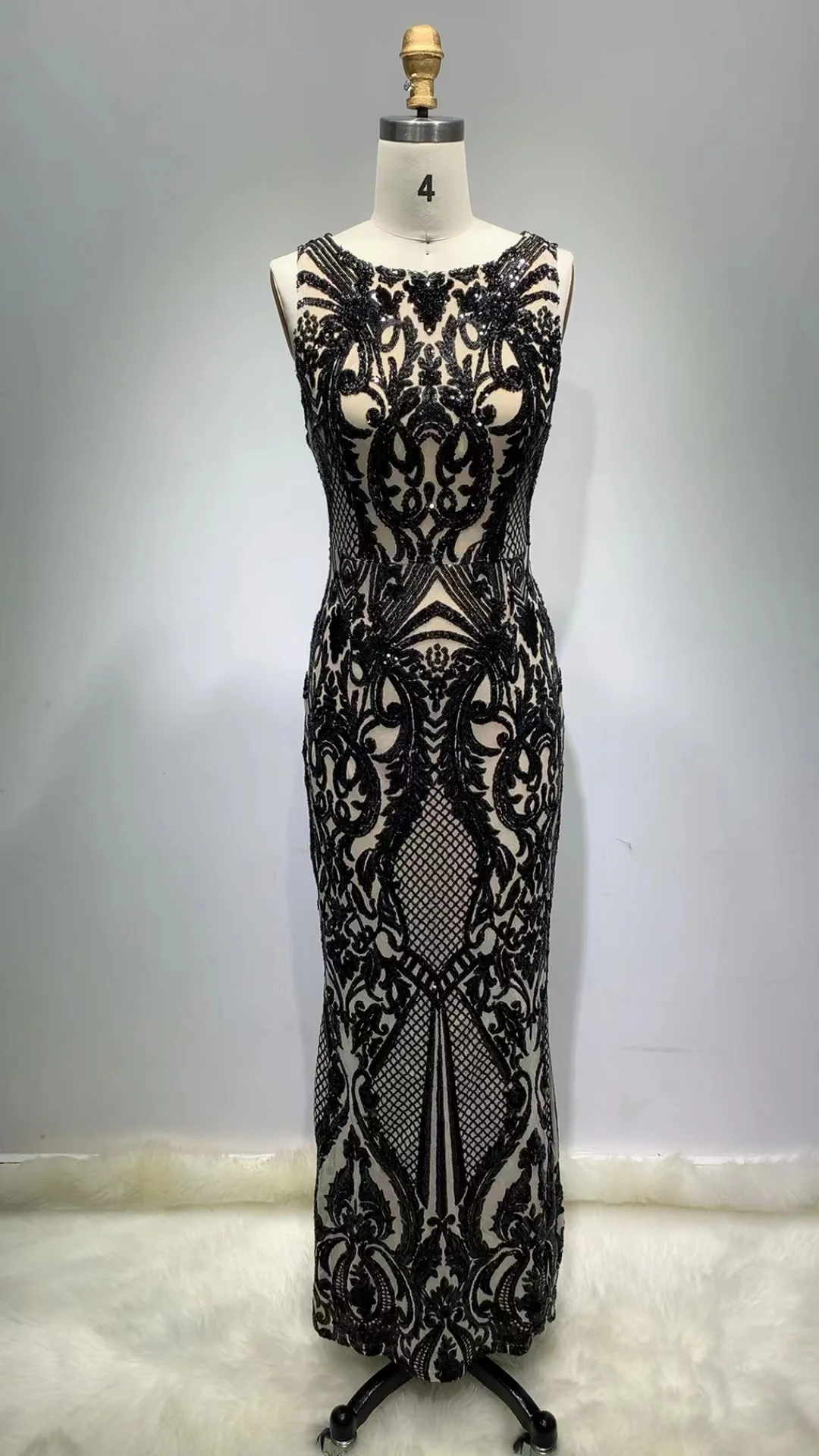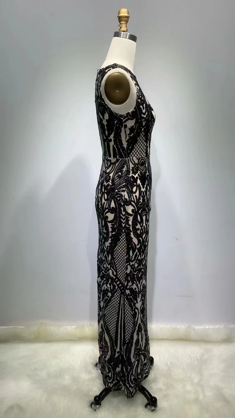 ED2260 Kimshein Vestidos De Largos Elegantes Clothing Women Off Shoulder Sleeveless Sequin Bodycon Dress Evening Dinner