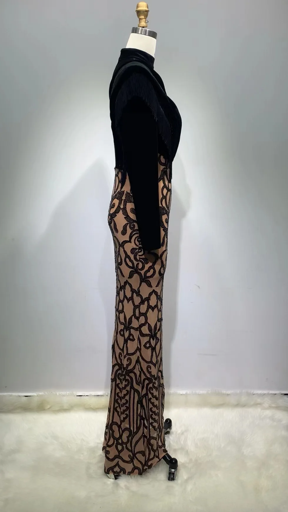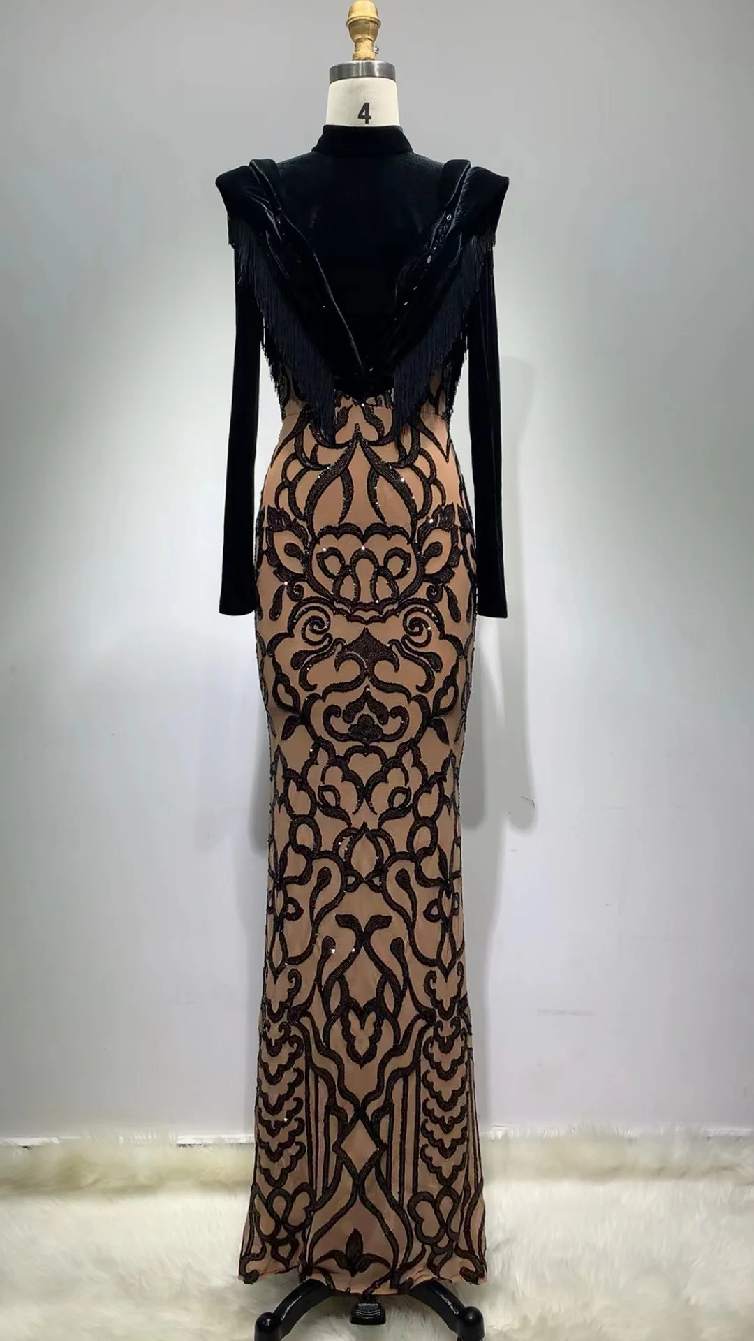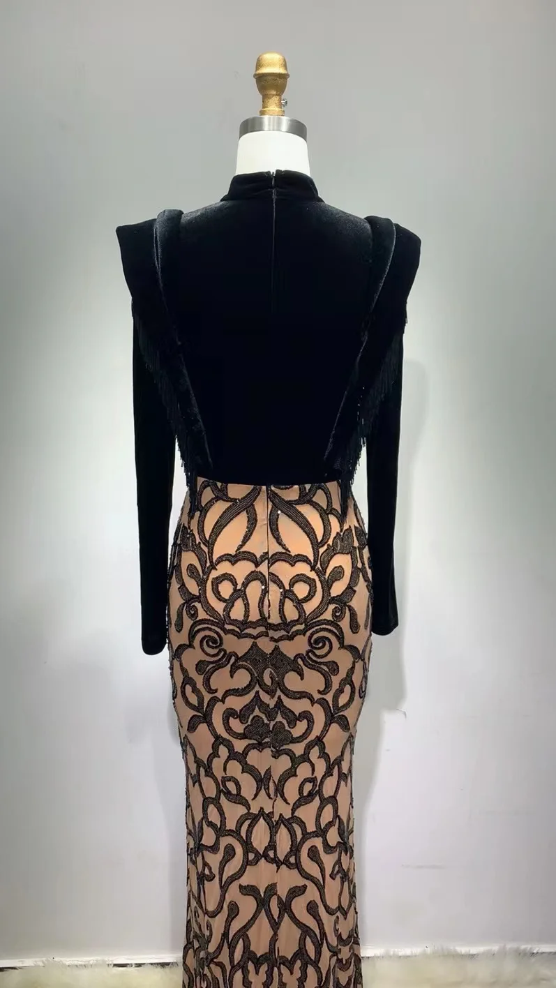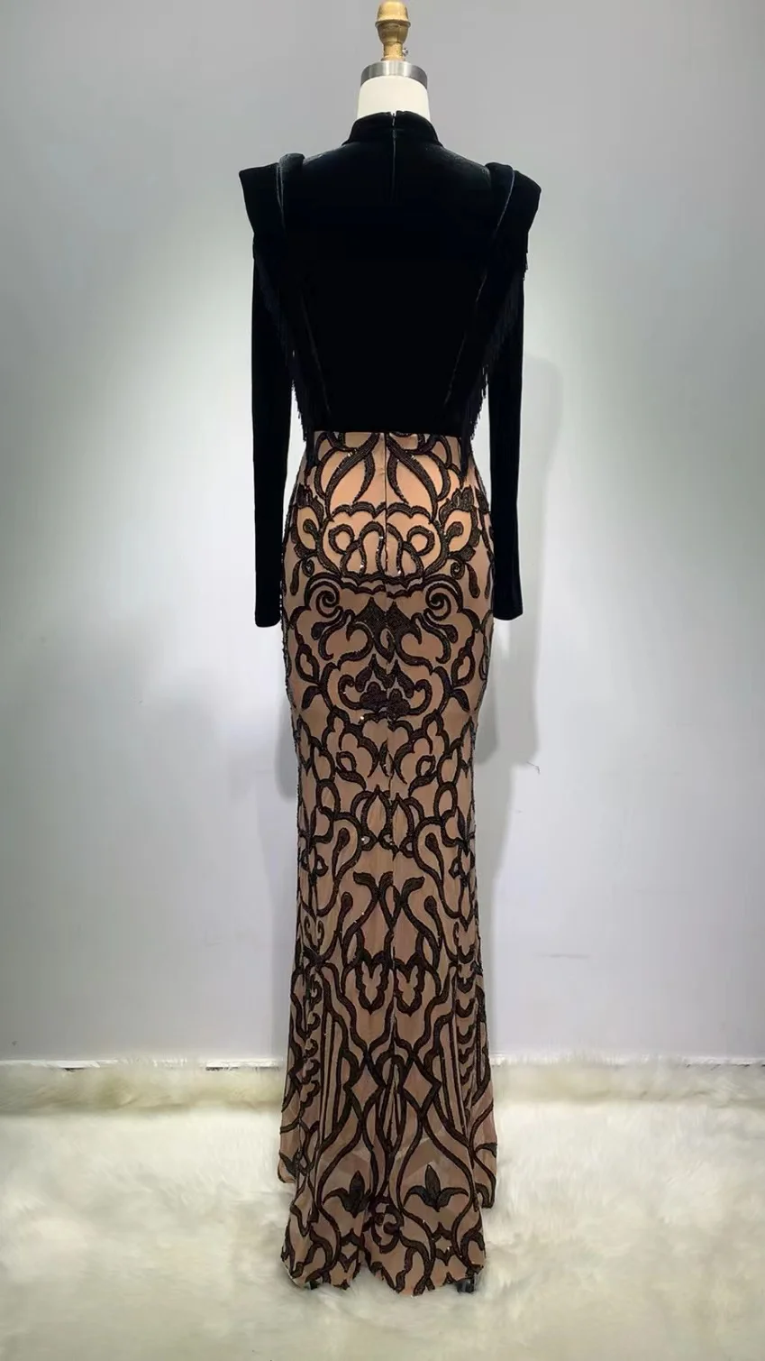ED2278 Long Sleeve Sequin Ball Gown Luxury Bodycon Velvet Long Dress Evening Dresses Women Lady Elegant
