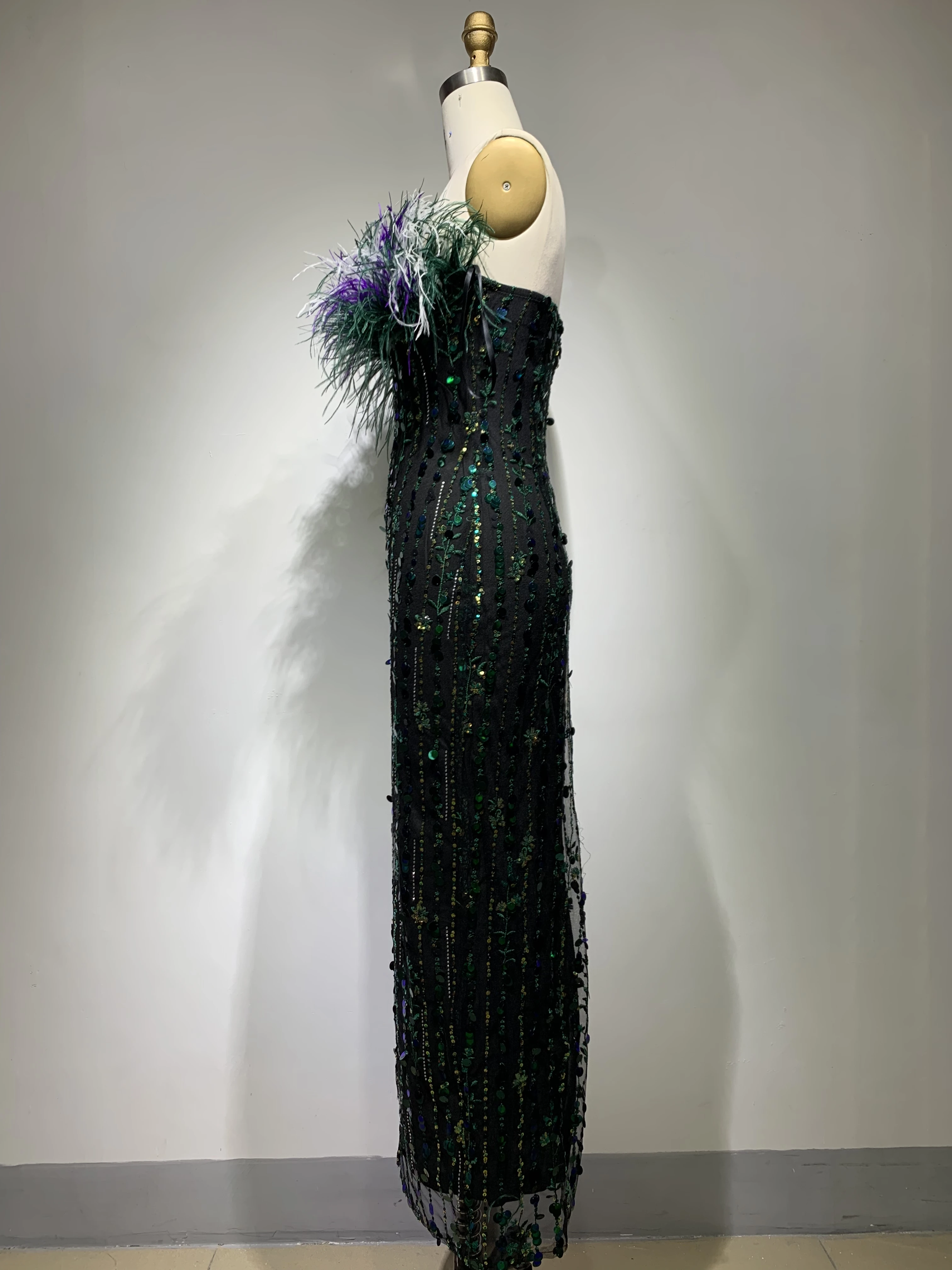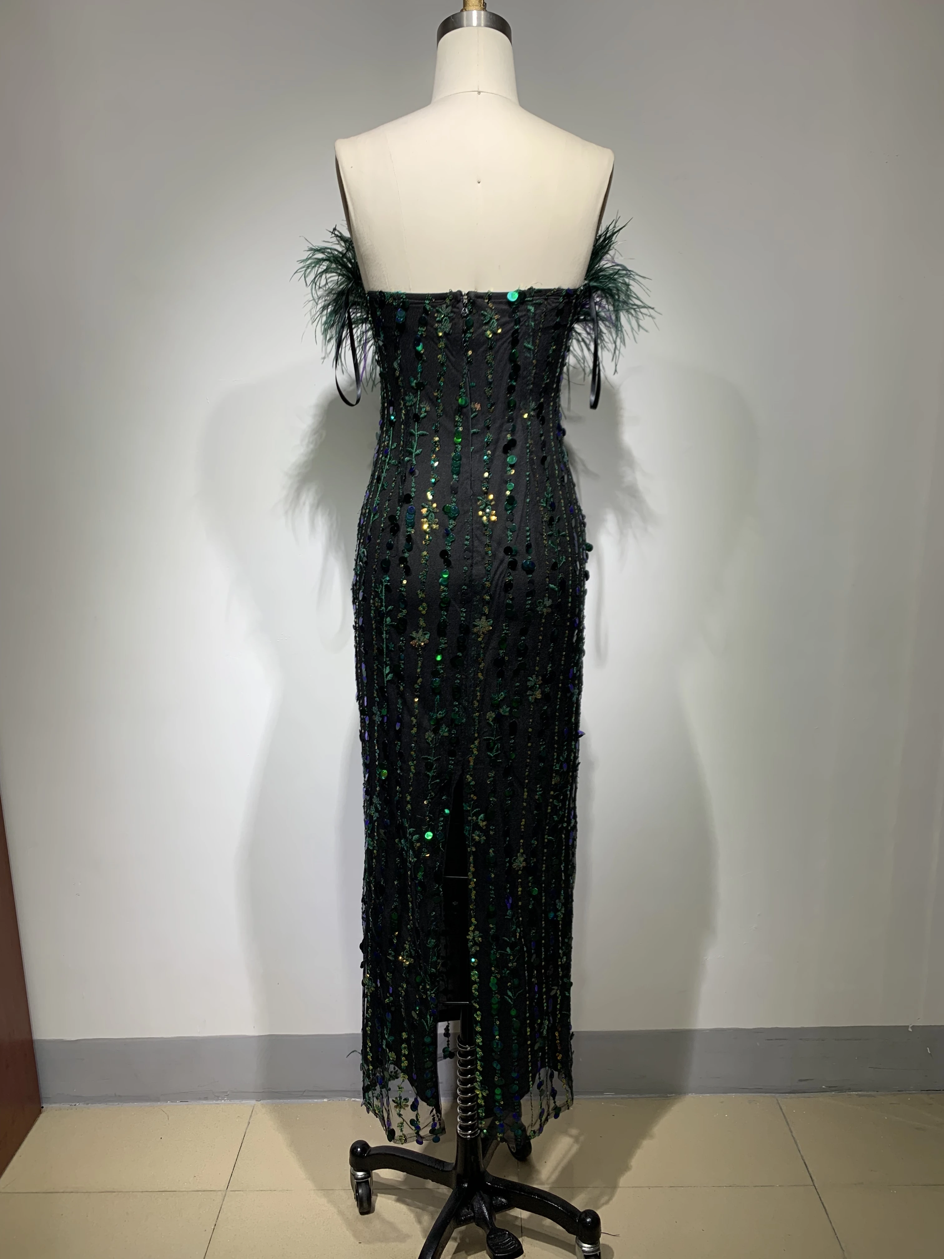 ED2390 Long Feather Dress Elegant Off Shoulder Women Party Evening Dress Bodycon Women Summer Maxi Dresses