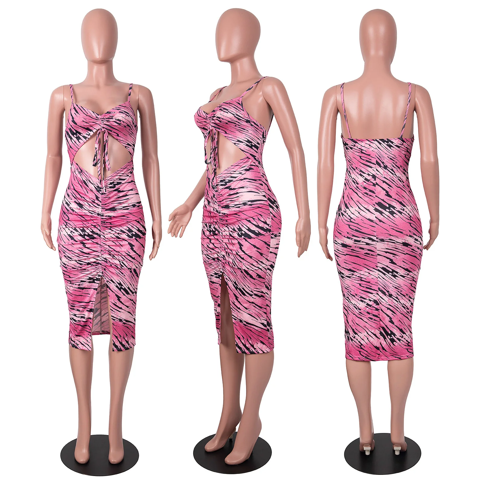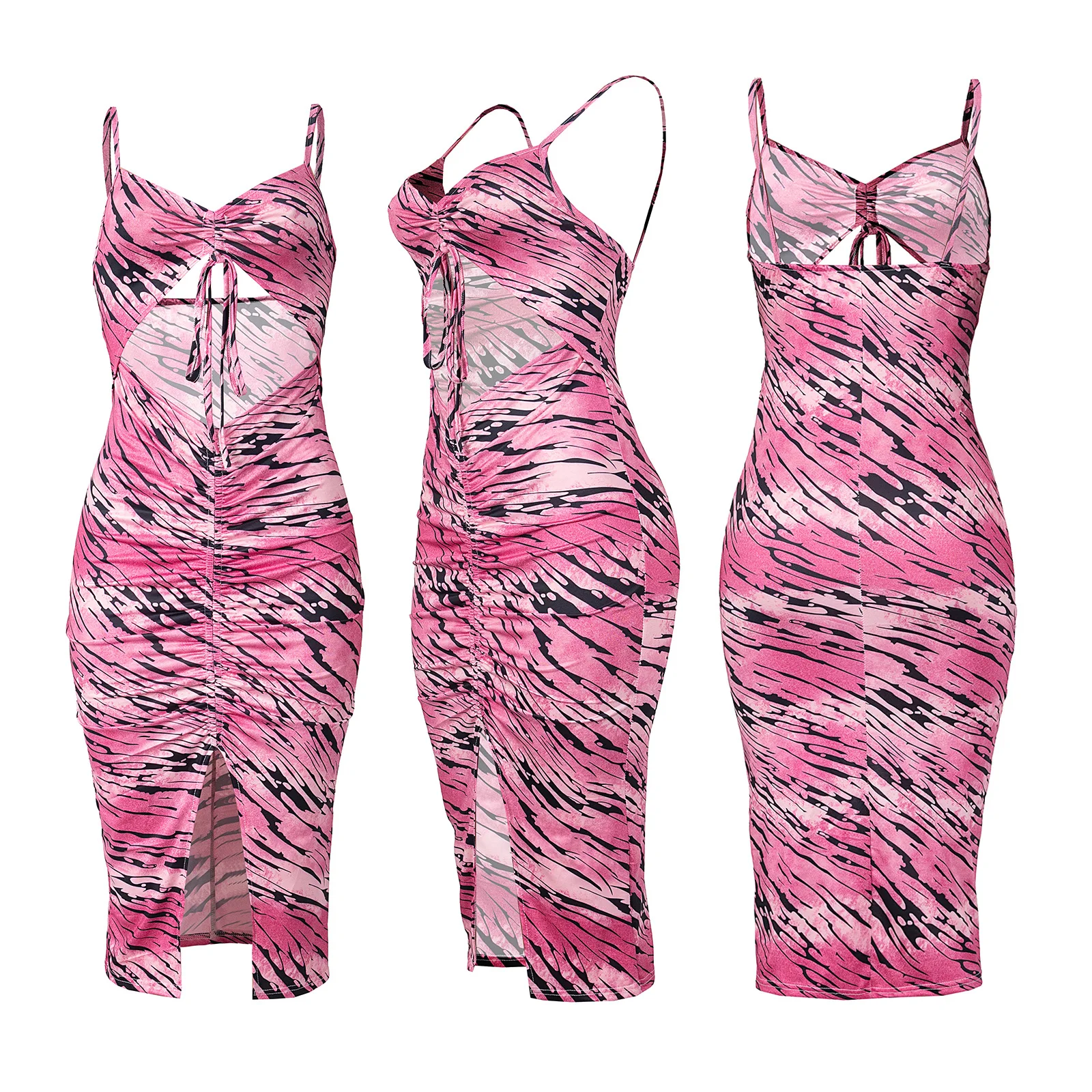 Elegant Backless Slit Women Dresses Sexy Club String Cut Out Ladies Bodycon Open Cup Summer Sun Dress