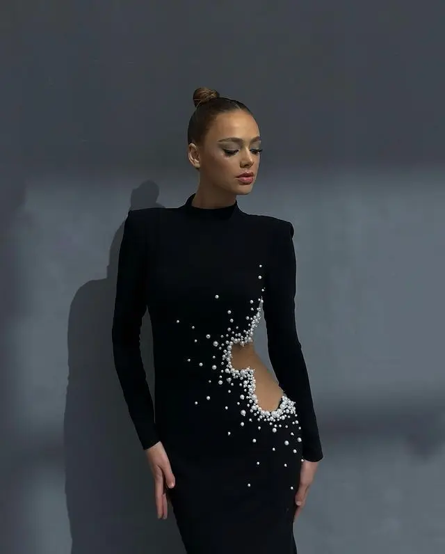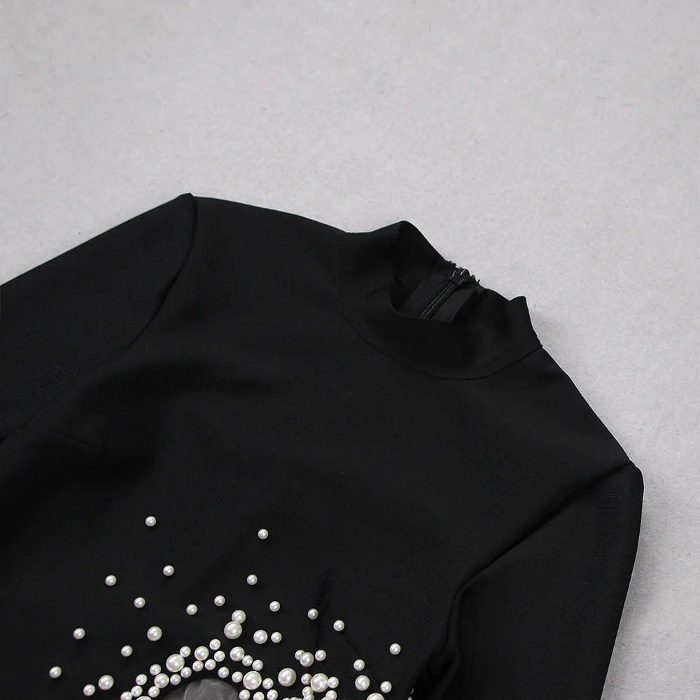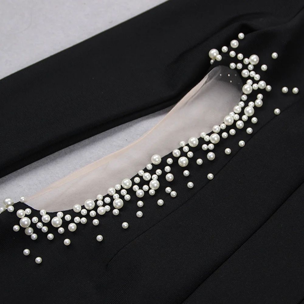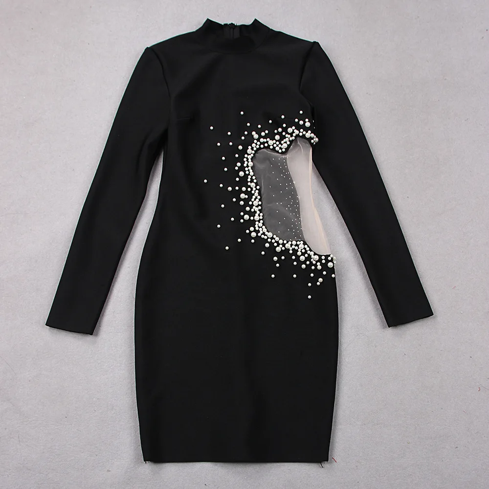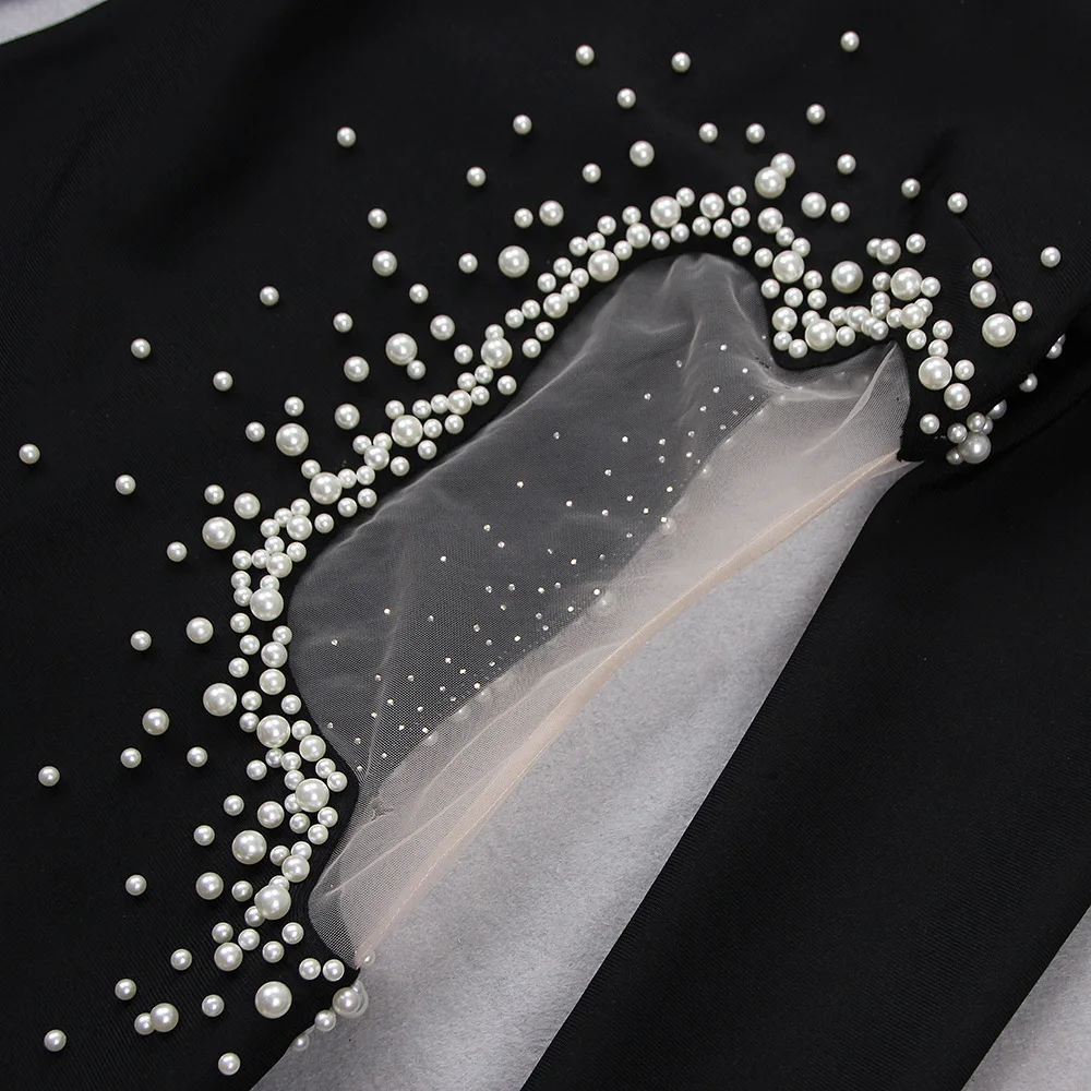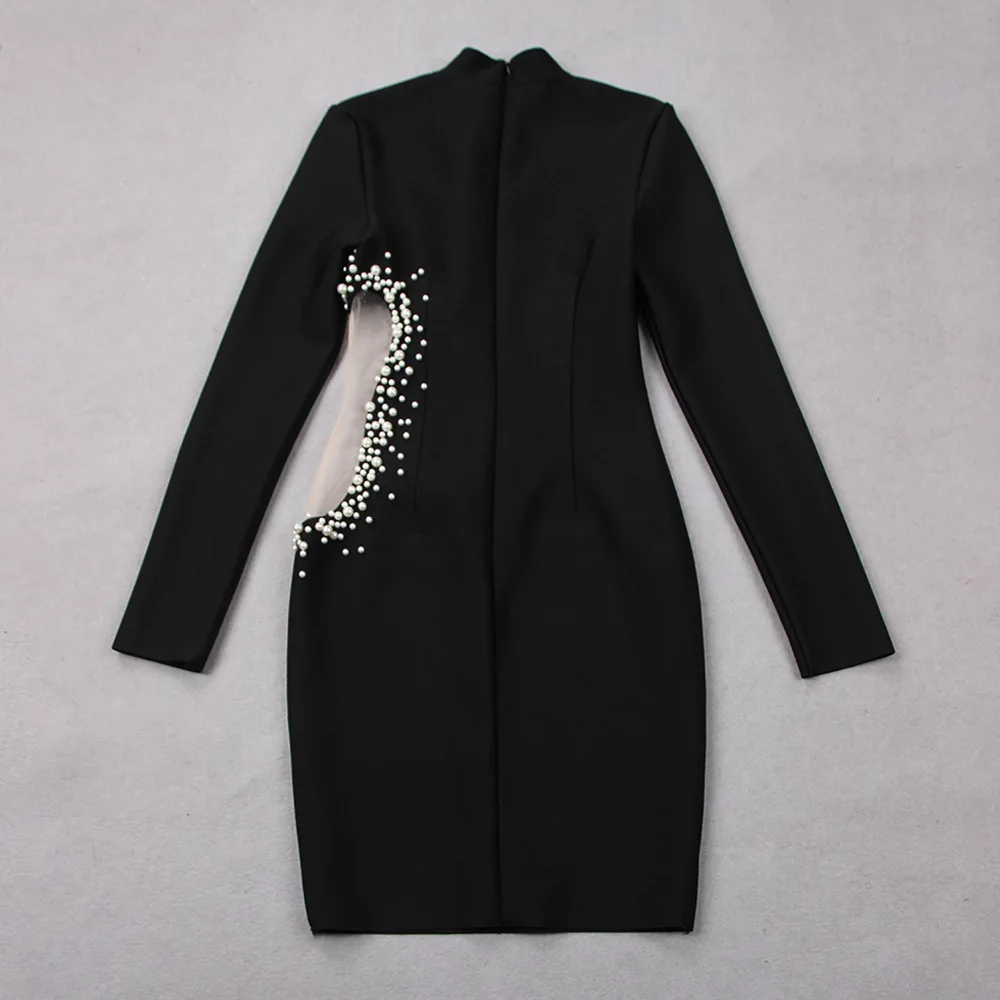 Elegant Bandage Dress Round Neck Long Sleeve Pearl Evening Dresses High Quality Fashion Party Casual Bodycon Vestidos for Woman