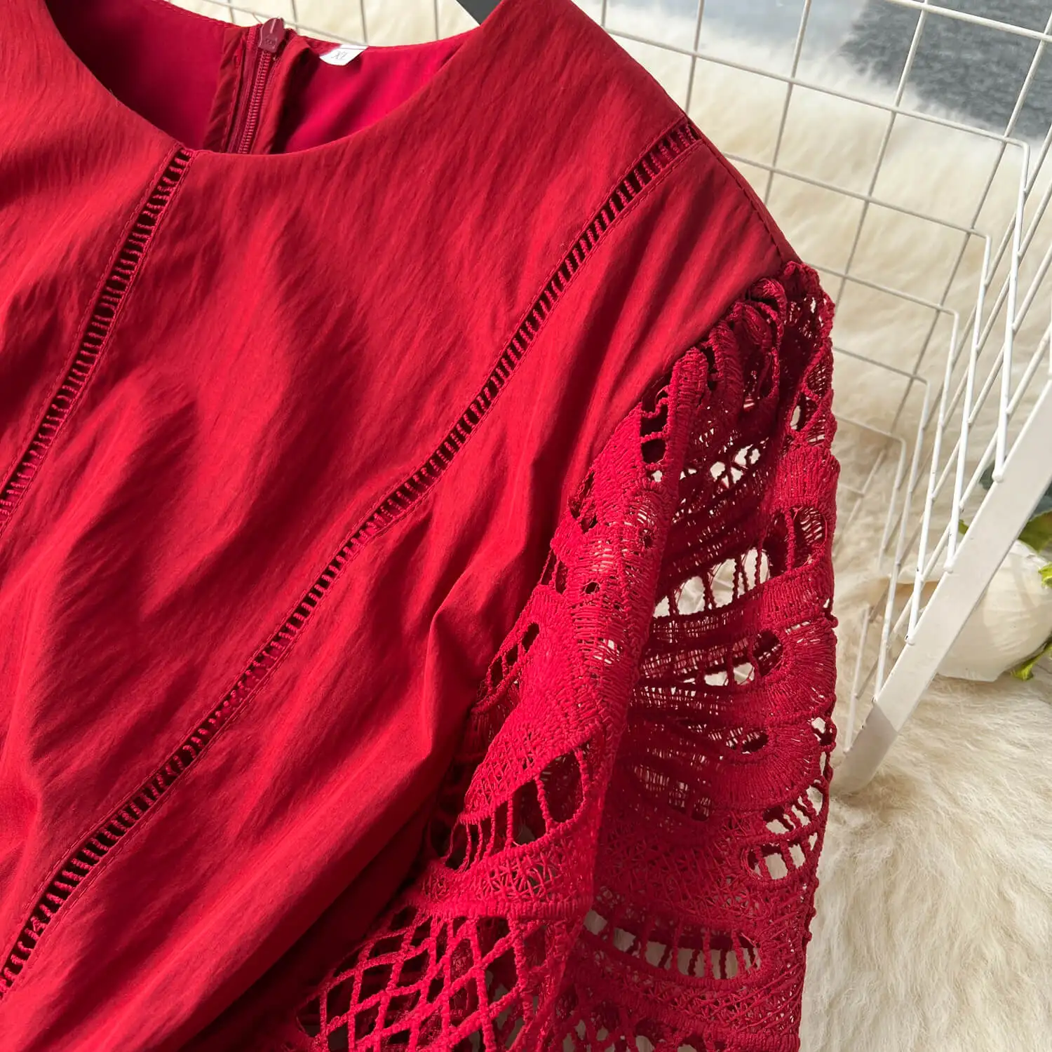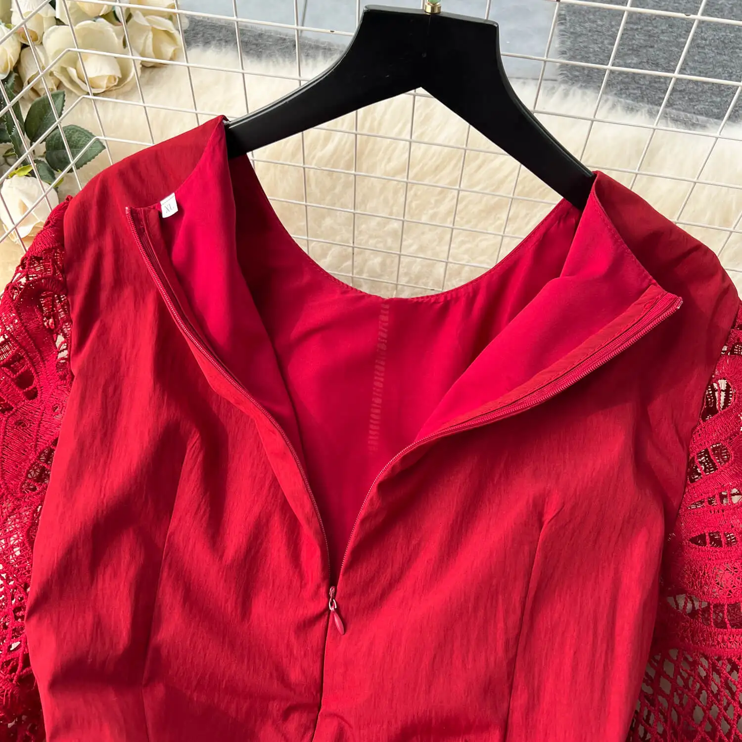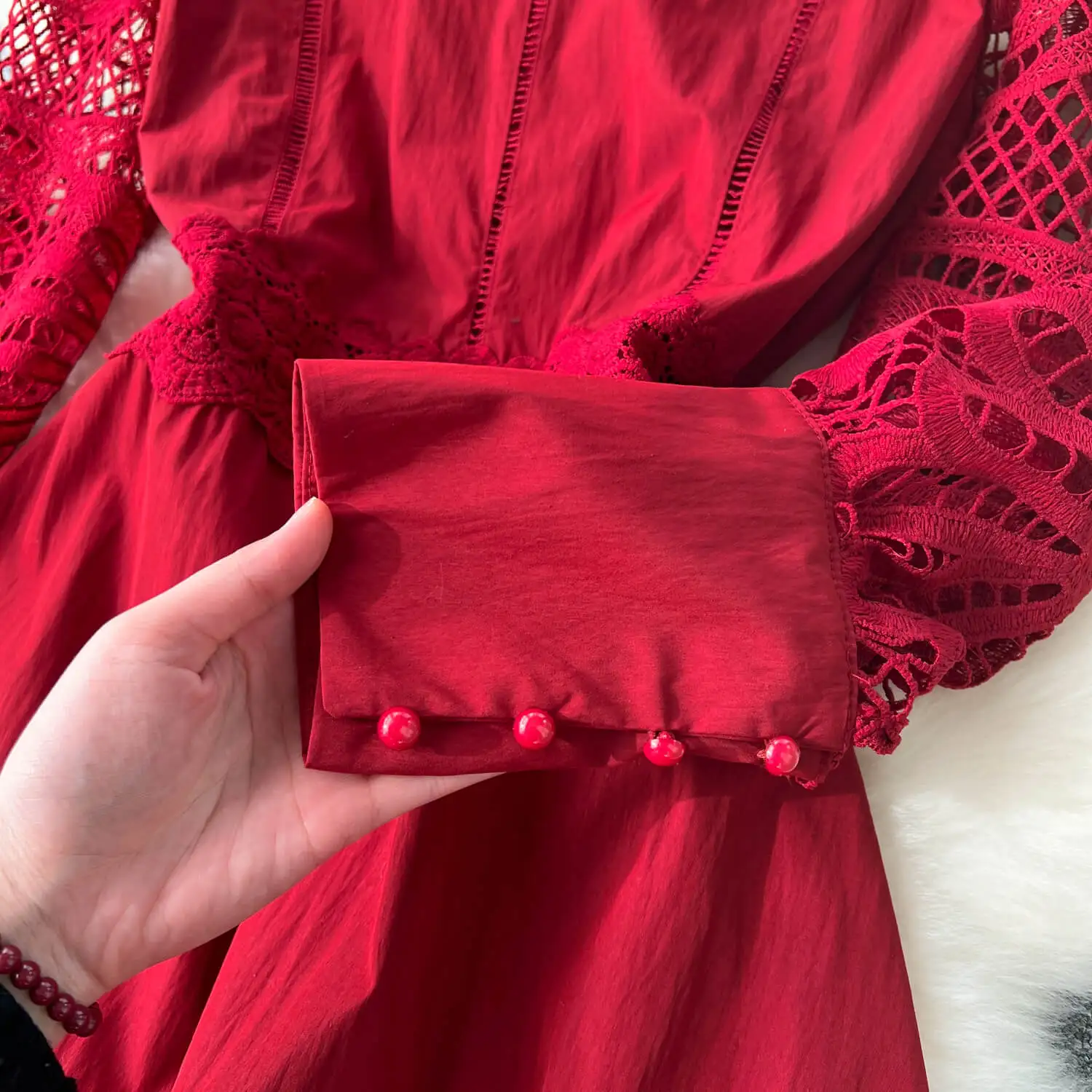 Elegant Casual Fashion Dress Women's Square Neck Fluffy Sleeve Lace Embroidery Dress Autumn New