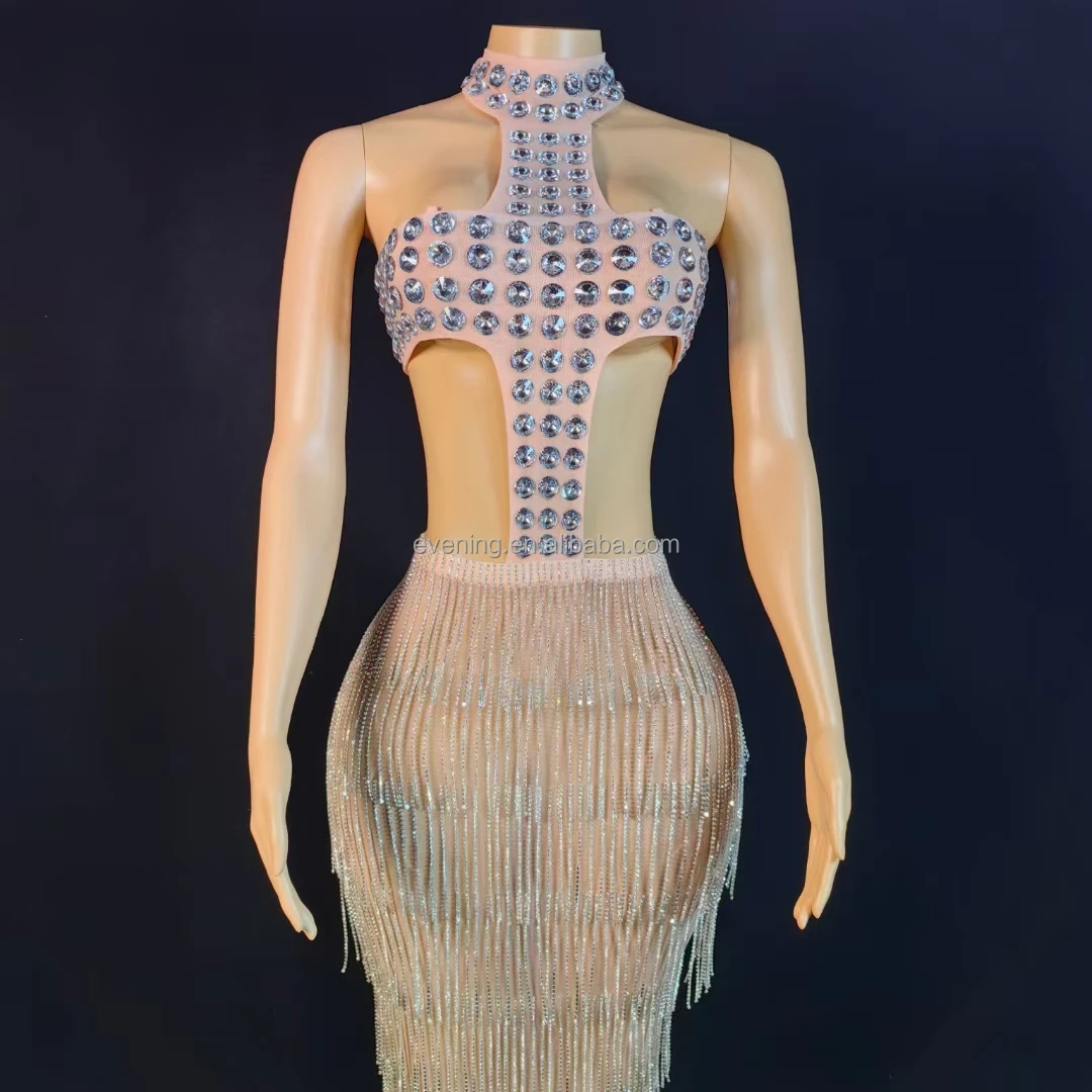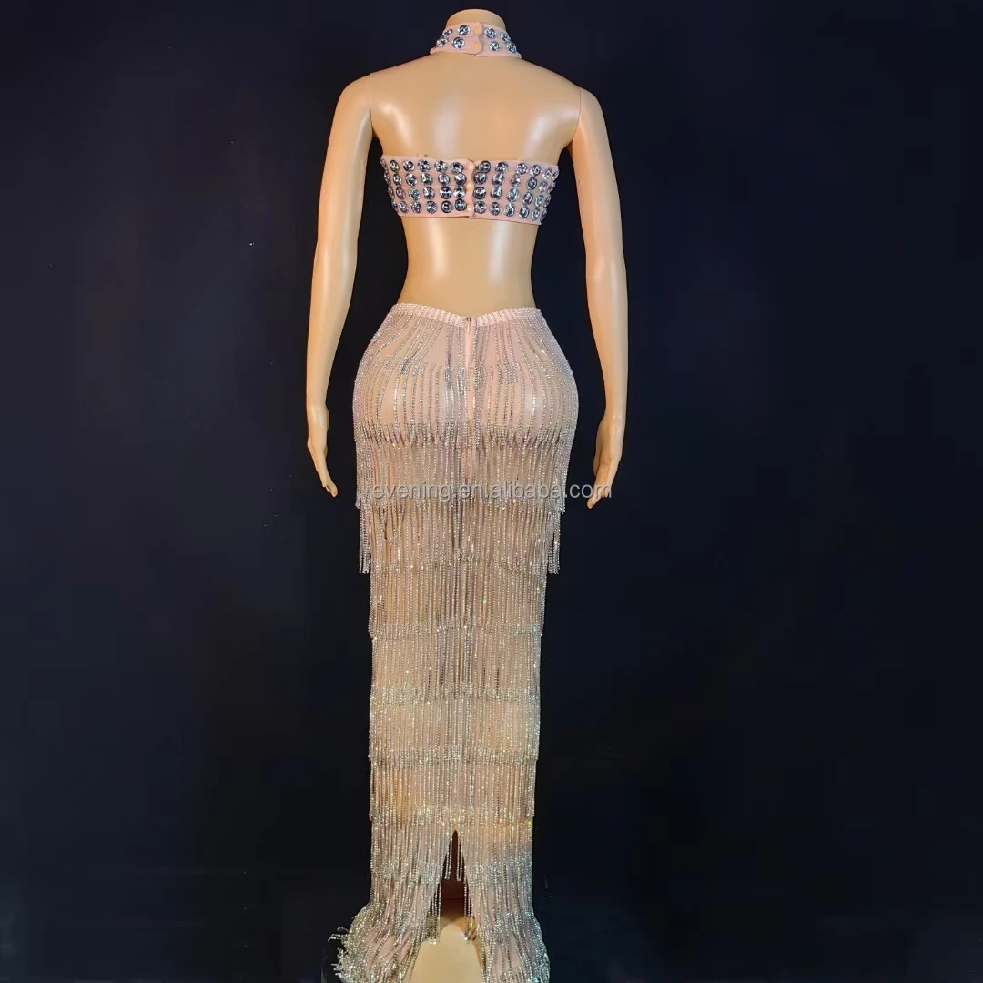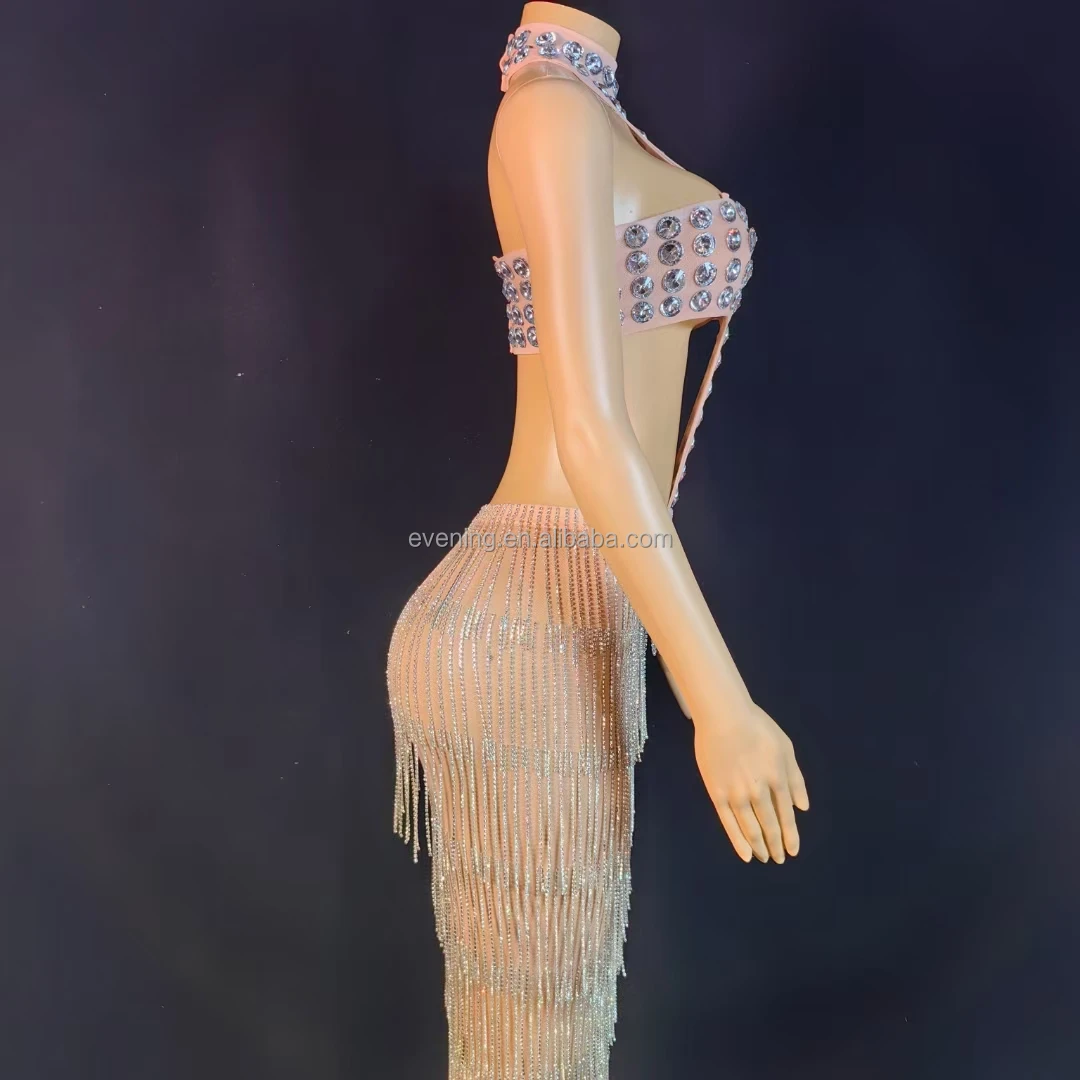 Elegant Crystal Tassel Formal Wedding Cocktail Long Dress Backless Cut Out Night Prom Dress Women Sexy Party Evening Dresses