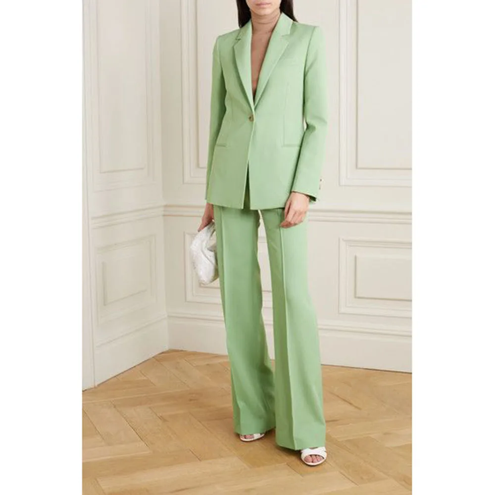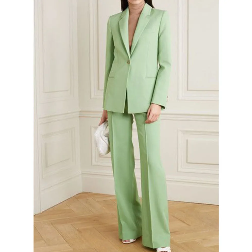 Elegant Green Women's Winter Clothing Notch Lapel 2 Pieces Jacket Pants Lady's Blazers Sets Banquet Office Female Clothing